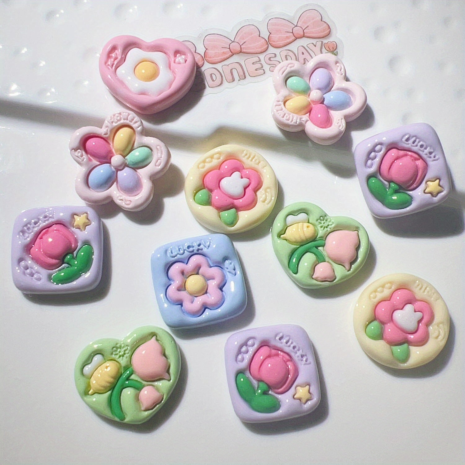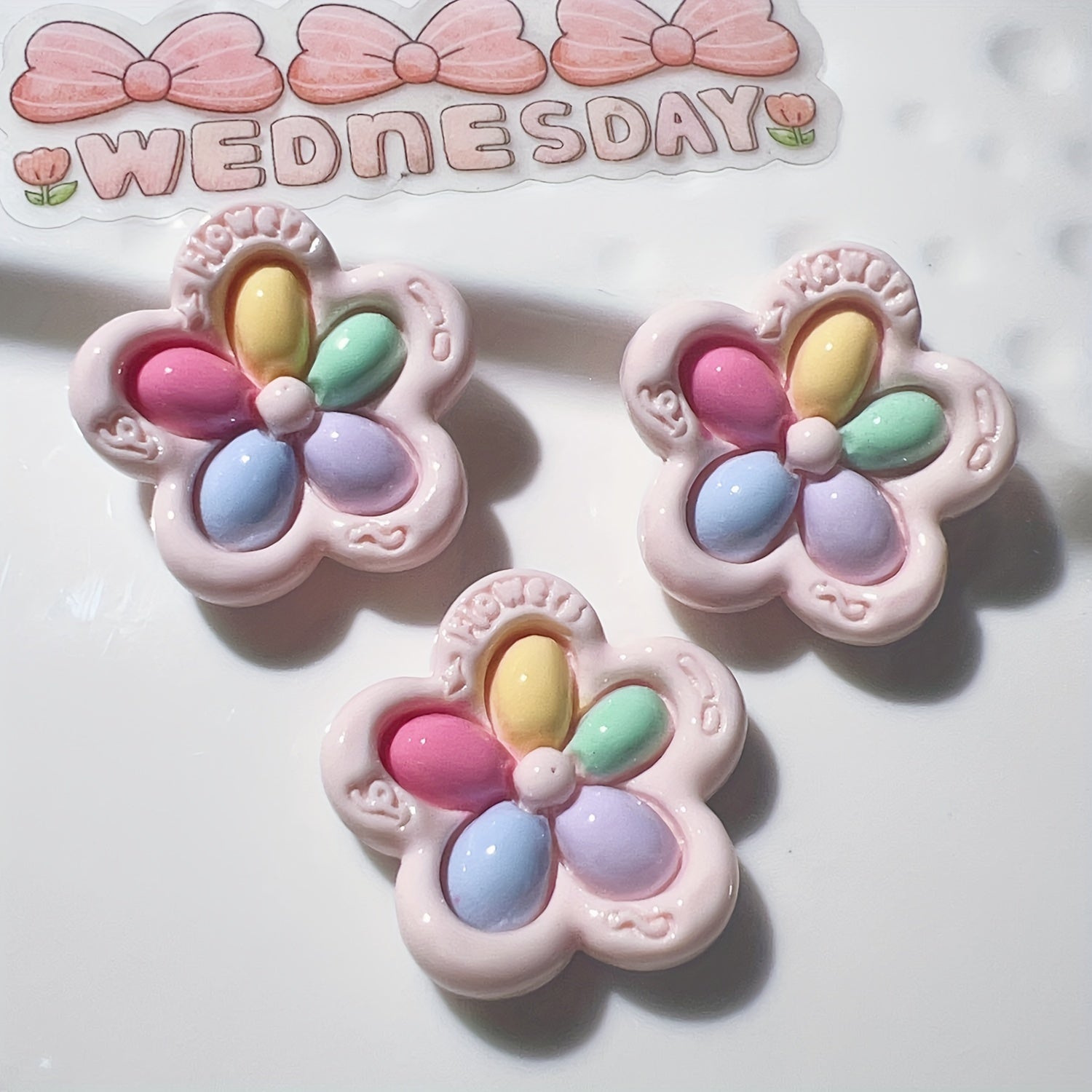 • Includes 20 colorful flower-shaped resin charms