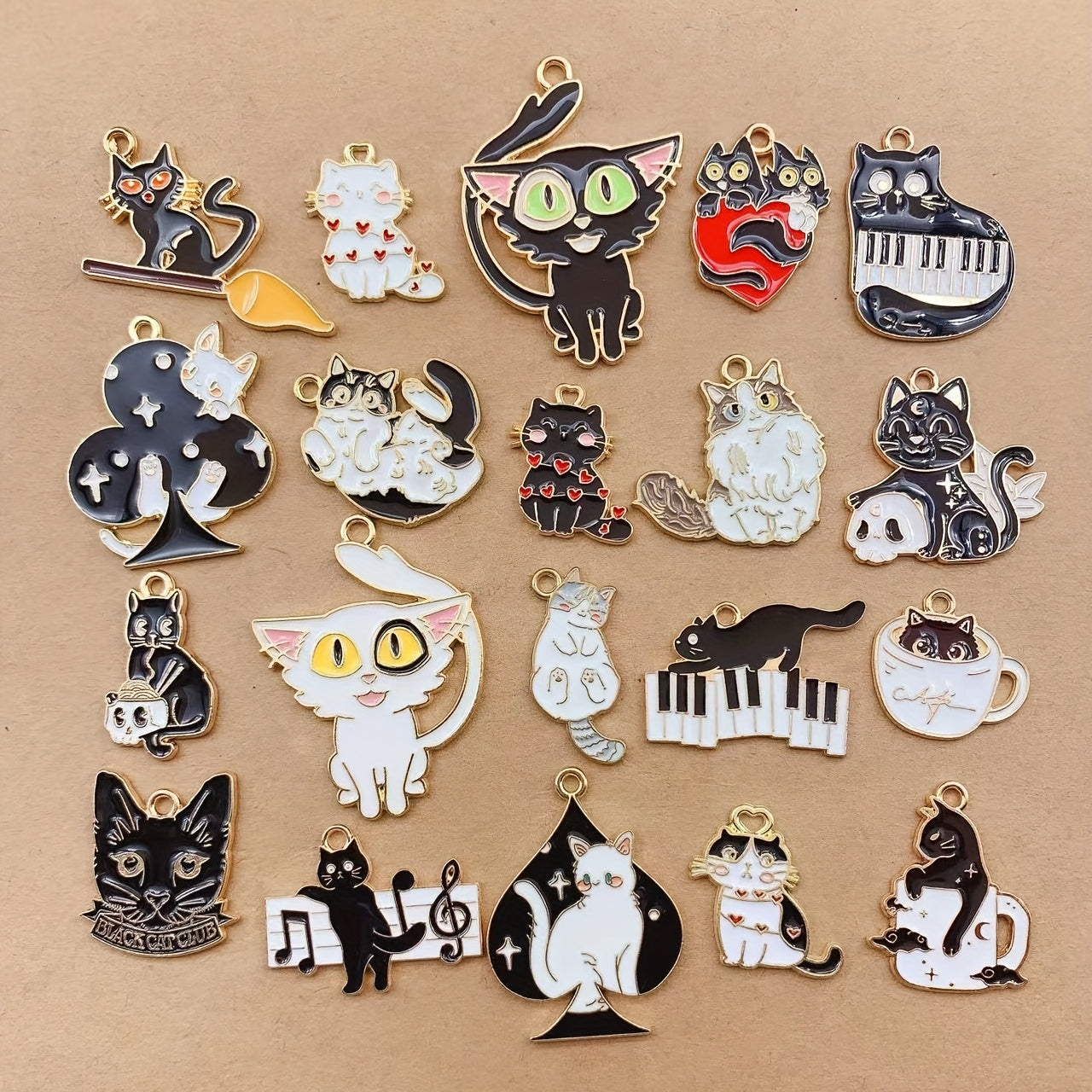 20pcs Enamel Cat Alloy Pendants for Jewelry Making