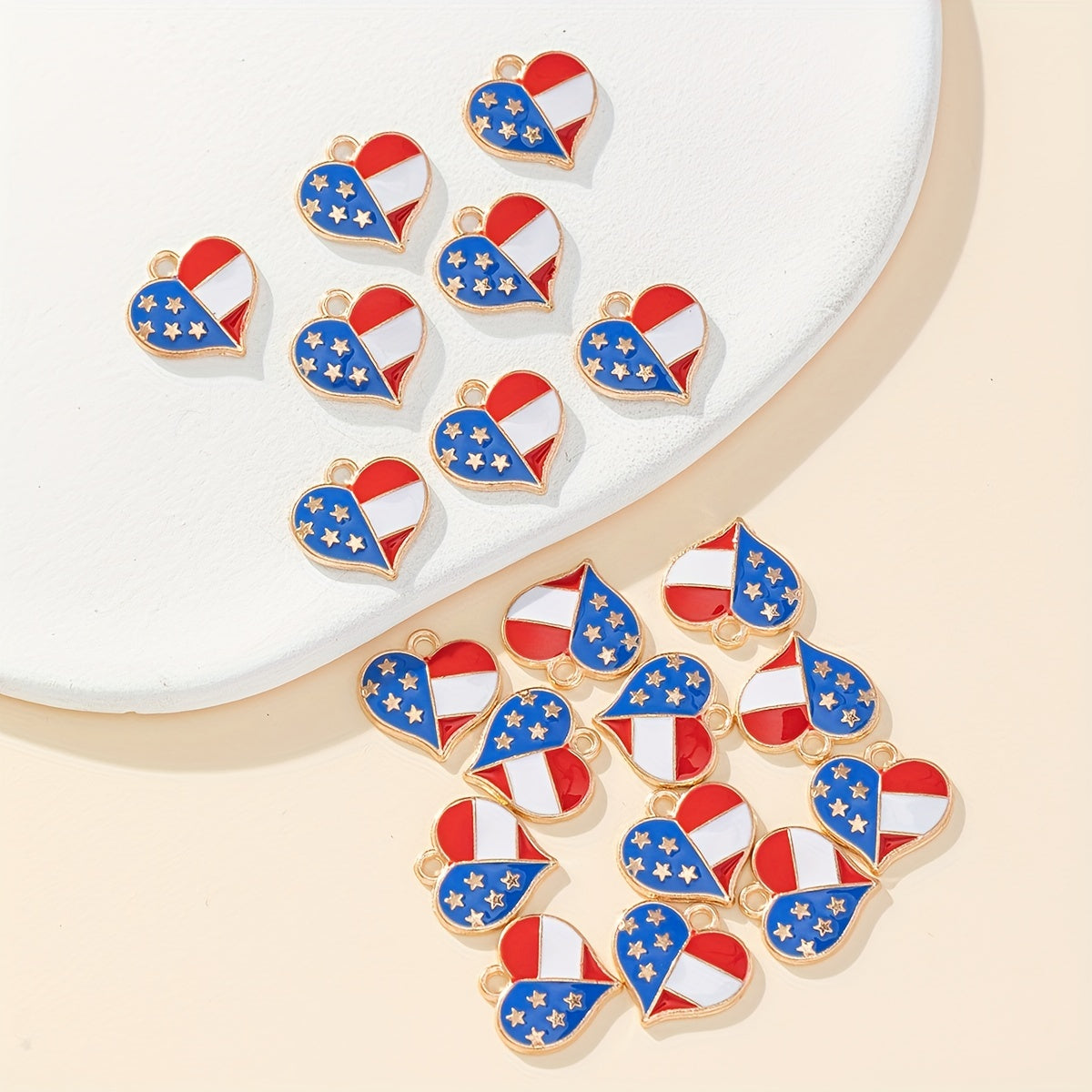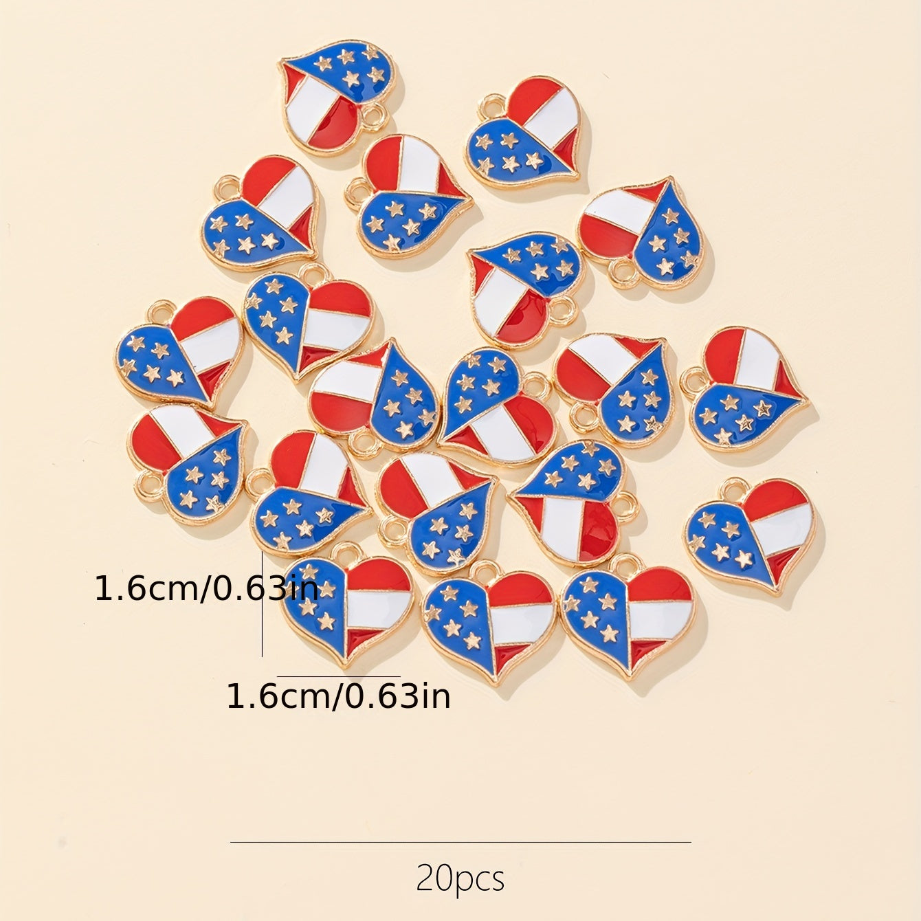 Enhance your jewelry-making projects with these 20pcs zinc alloy flag element heart pendants. Perfect for creating patriotic or independence-themed jewelry pieces.