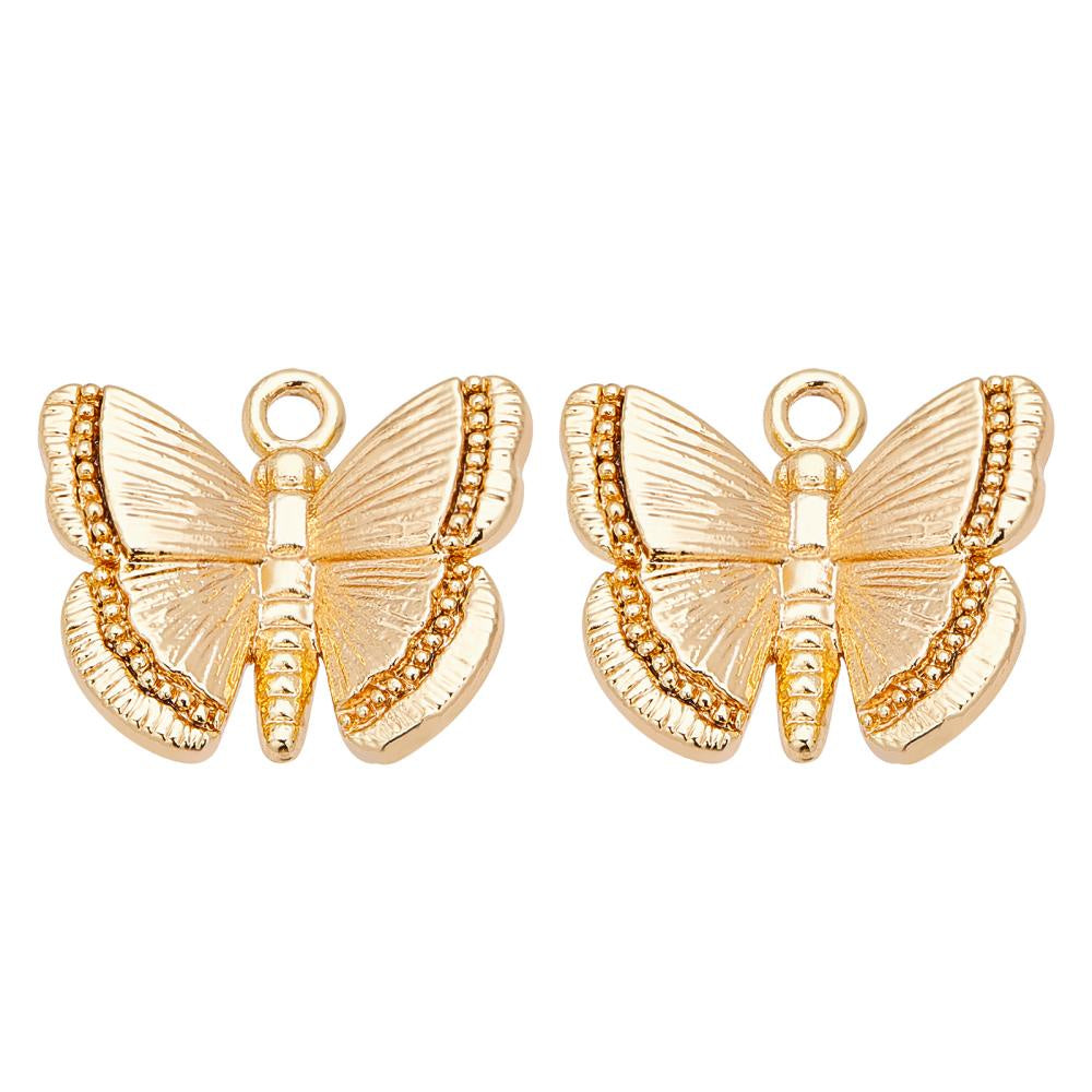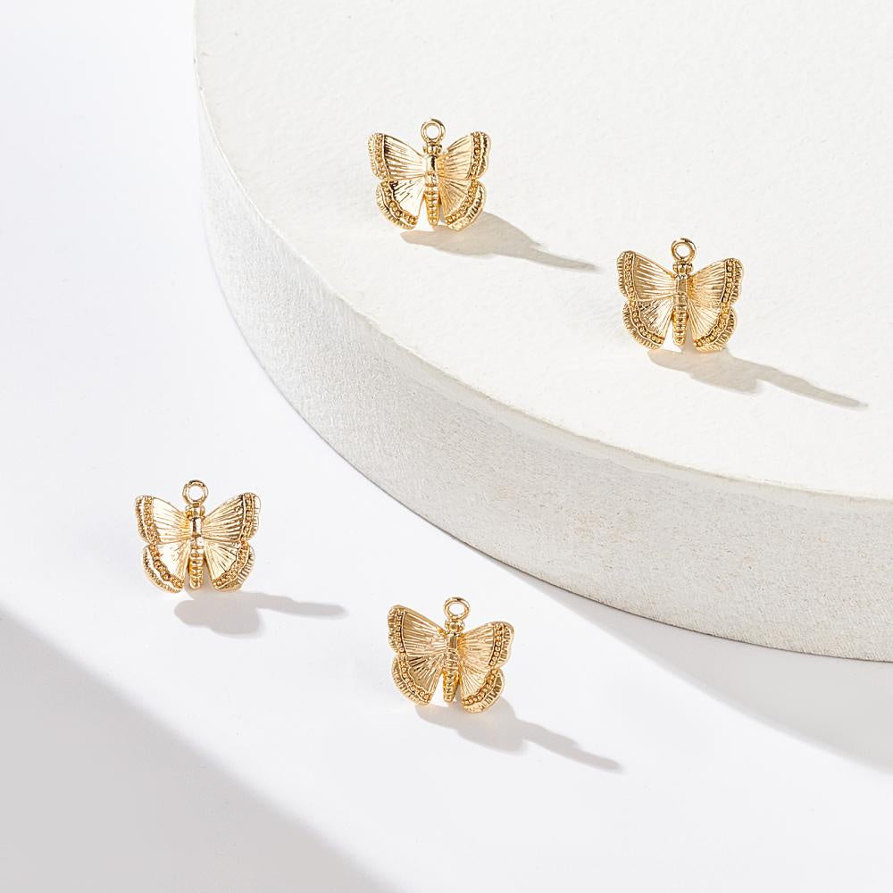 Elevate your jewelry creations with this set of 20 golden butterfly brass pendants. Perfect for earrings, bracelets, necklaces, and other accessories.