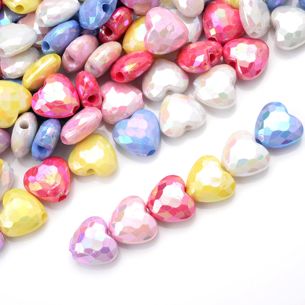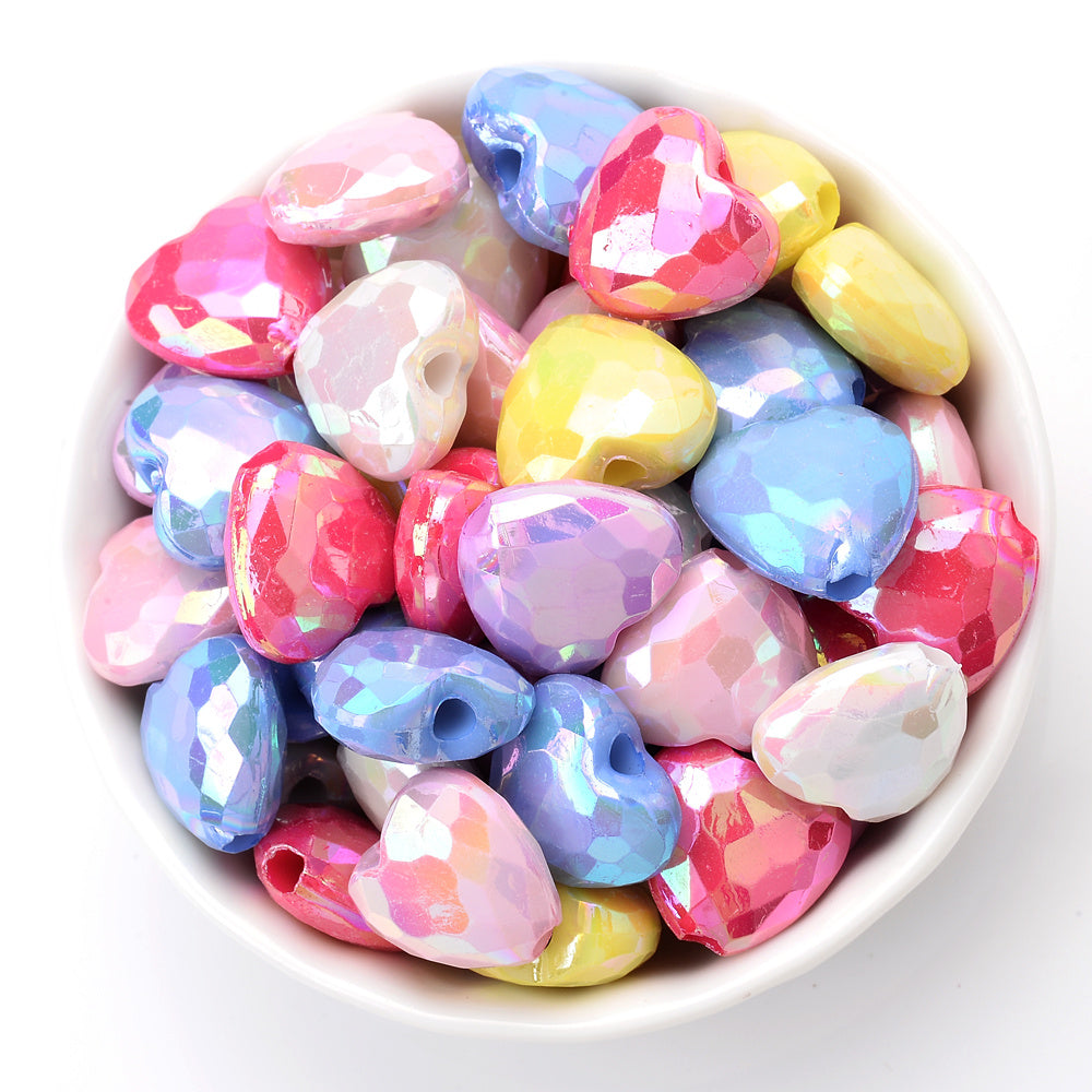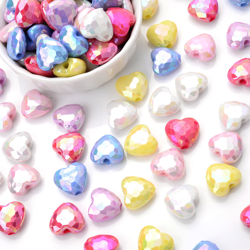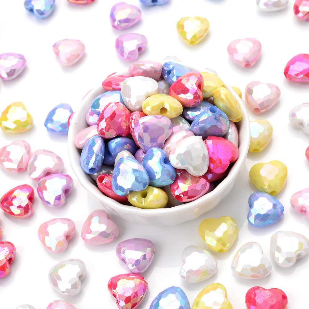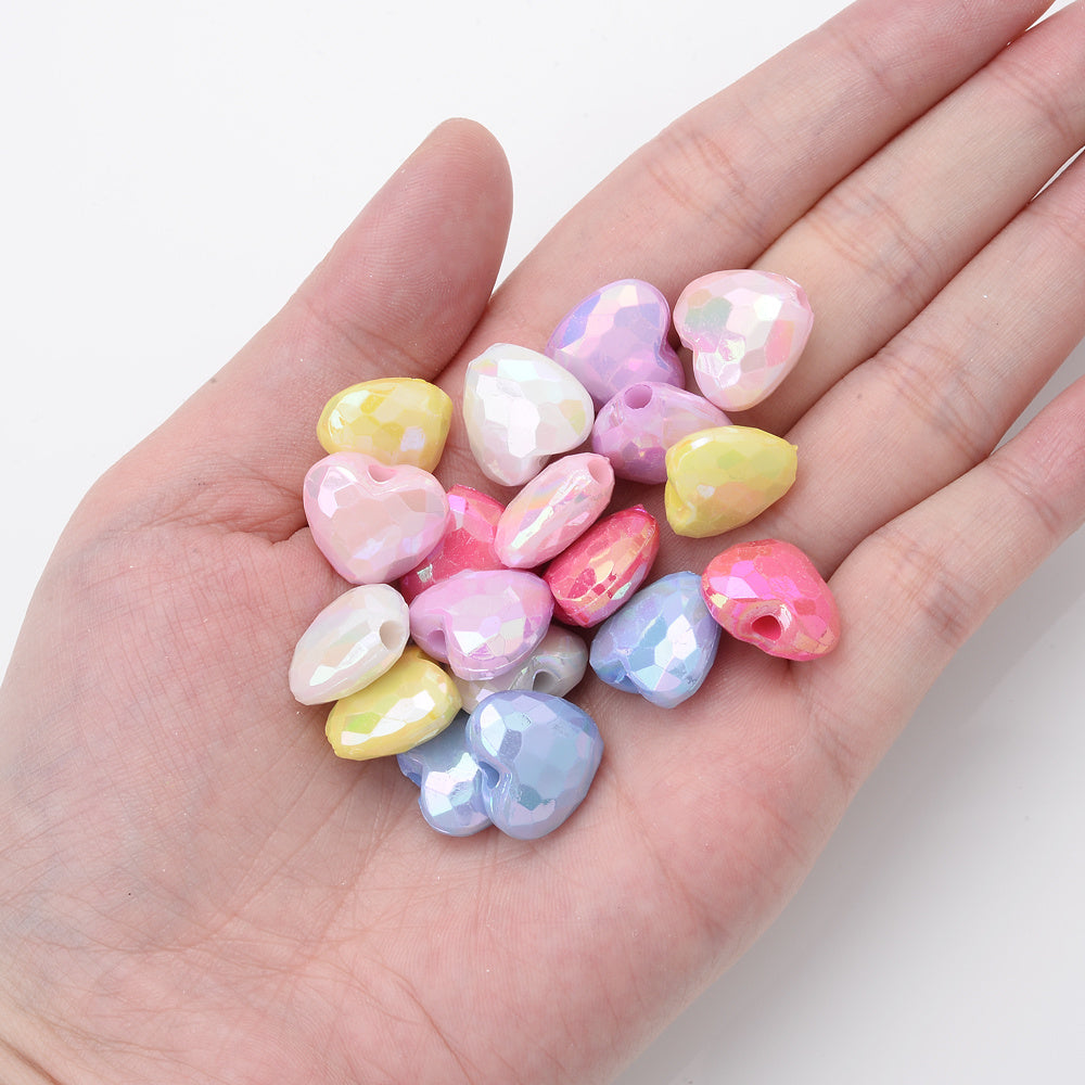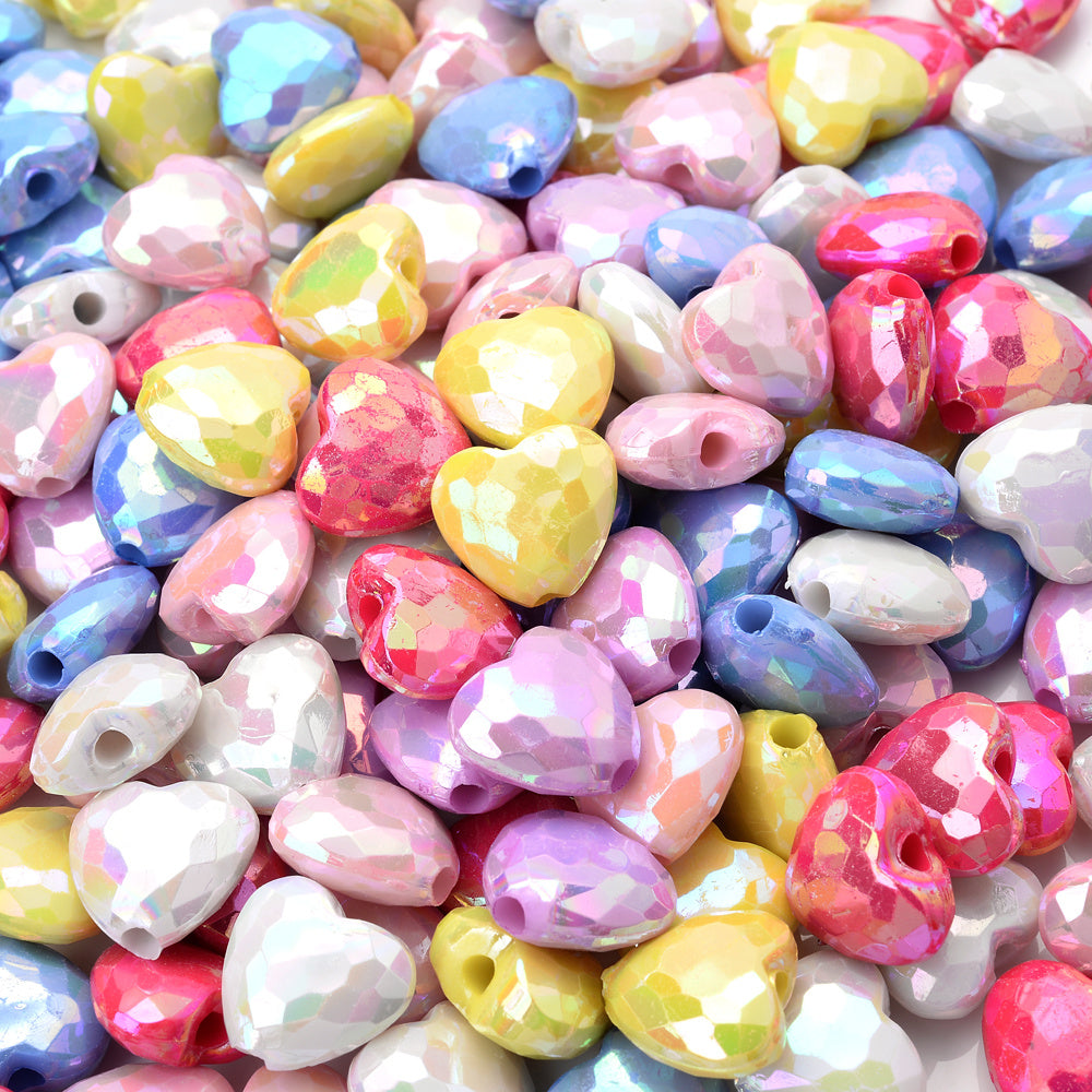Add a touch of charm to your jewelry creations with this lot of 20 acrylic heart beads. These beads are perfect for making bracelets, charms, necklaces, and earrings.