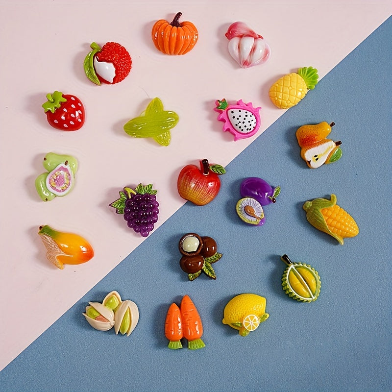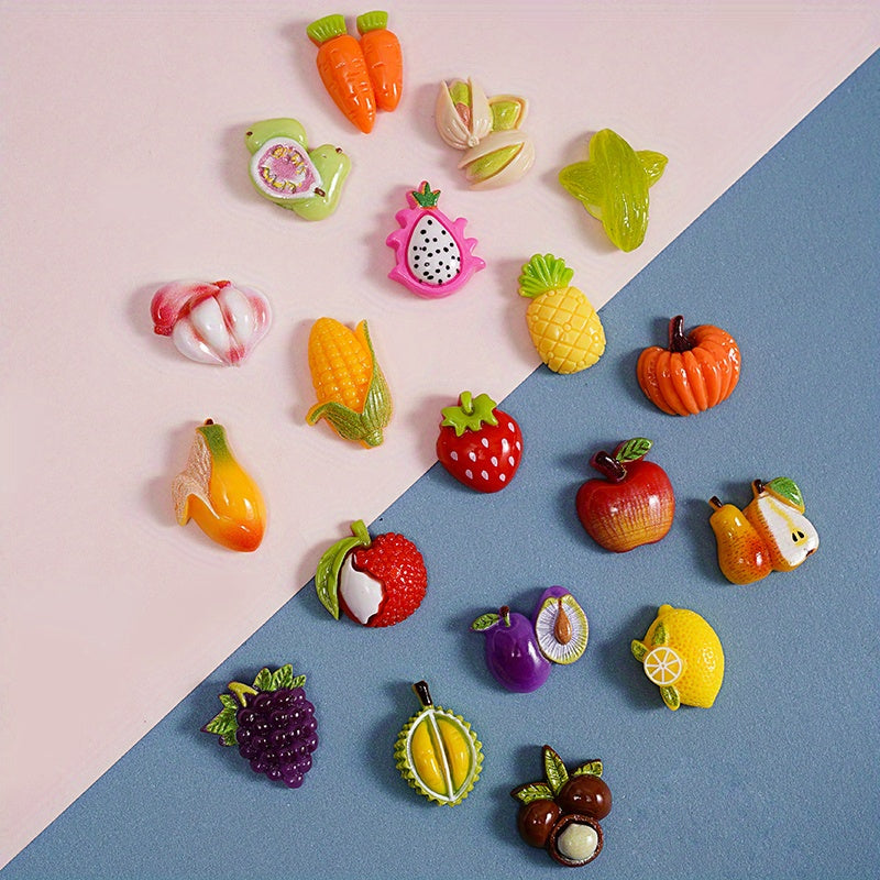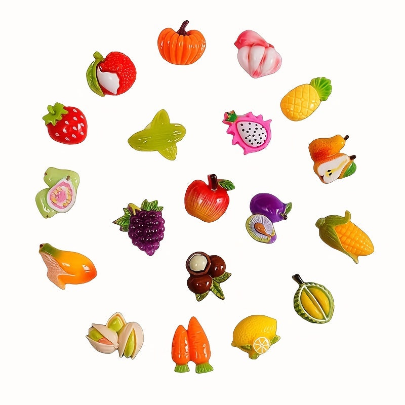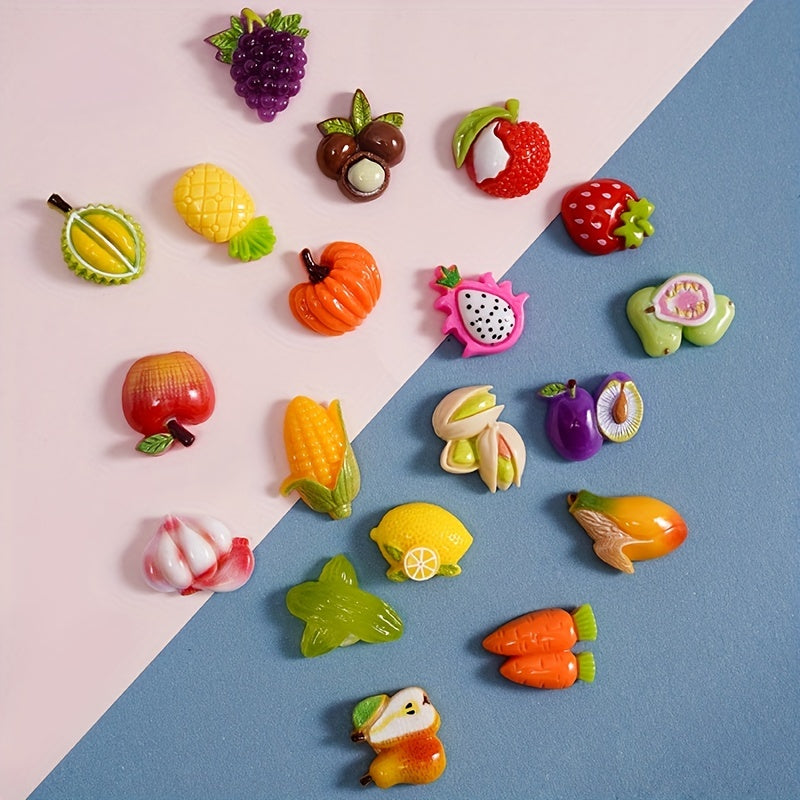 This set includes 20 mixed cartoon fruit beads pendants for DIY jewelry making, ideal for creating necklaces, bracelets, keychains, and other art and craft projects.