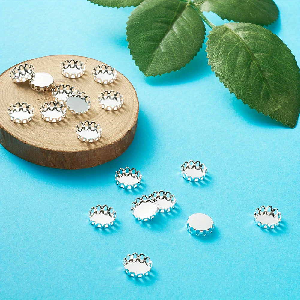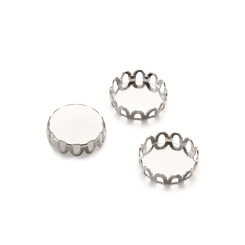 20Pcs Silver Flat Round Lace Tray Charms For Jewelry Making
