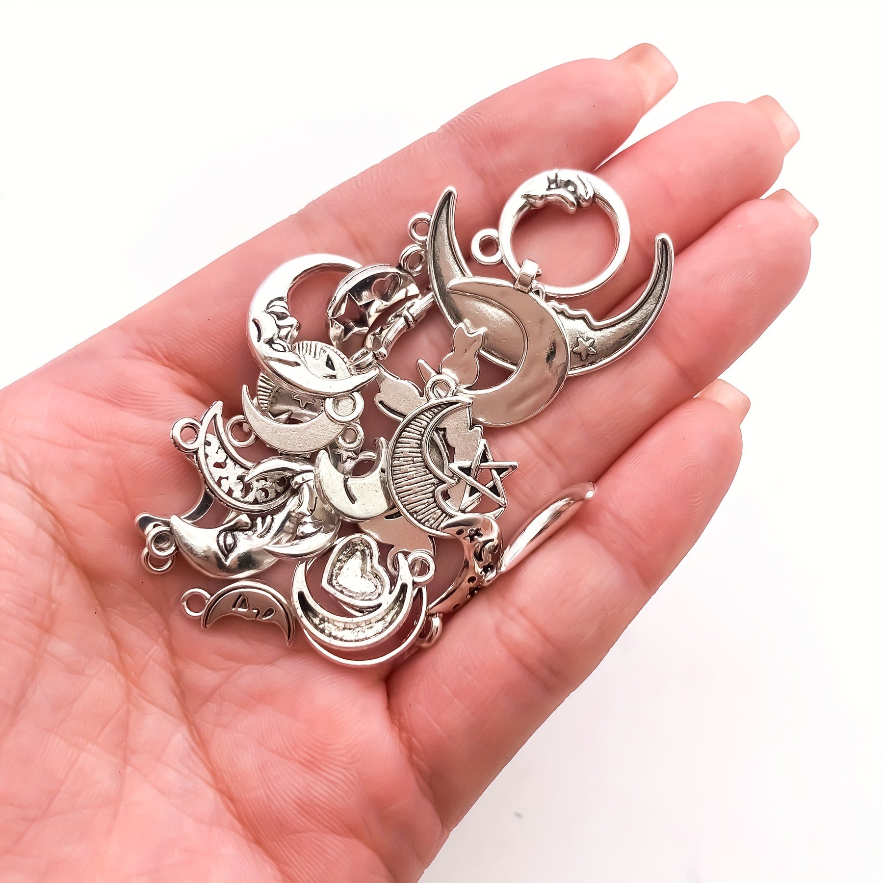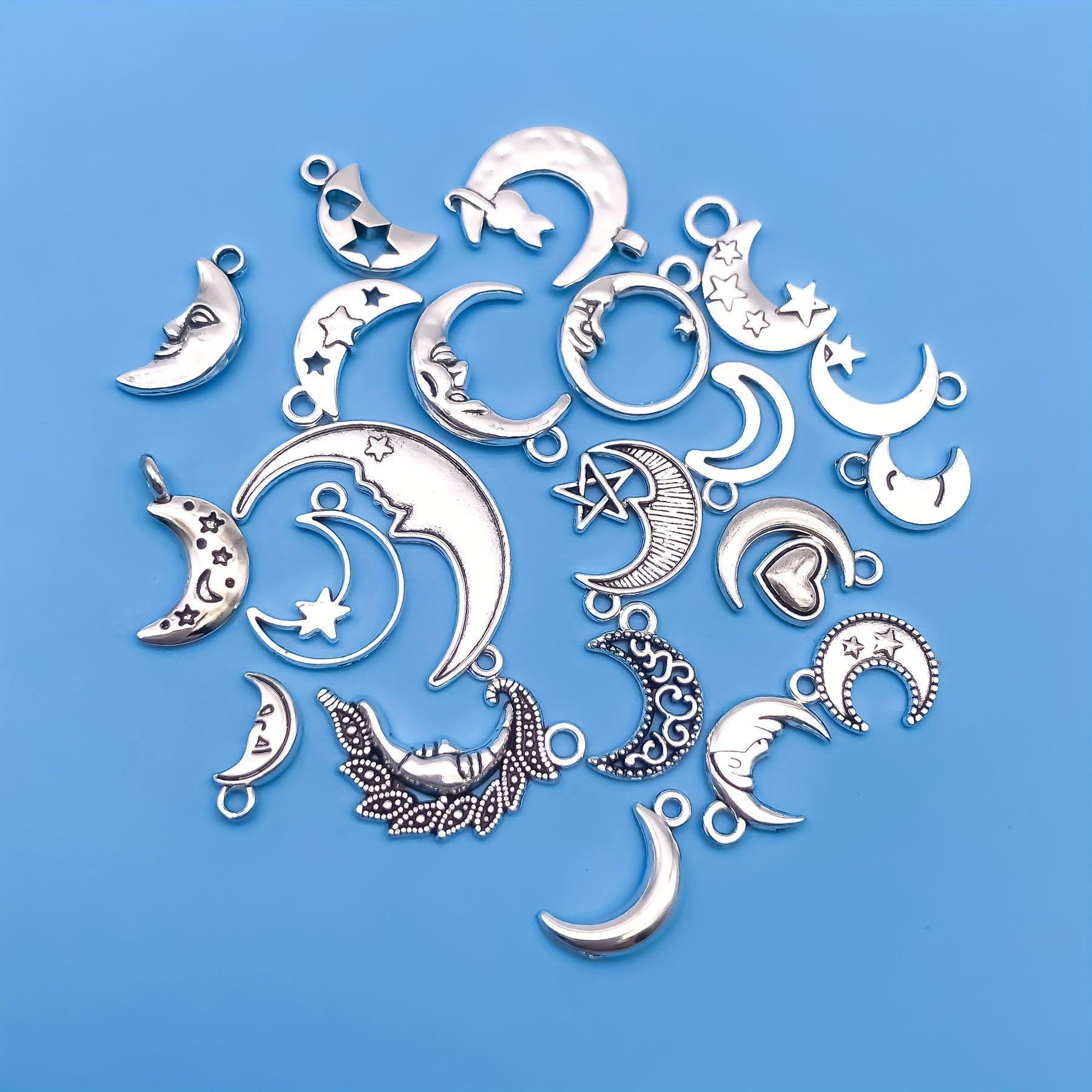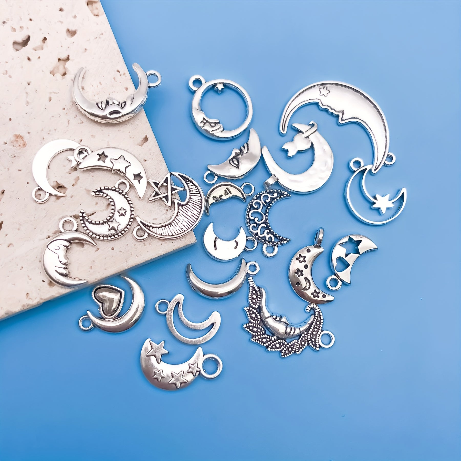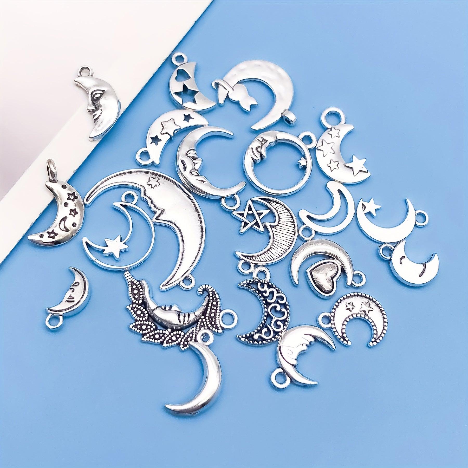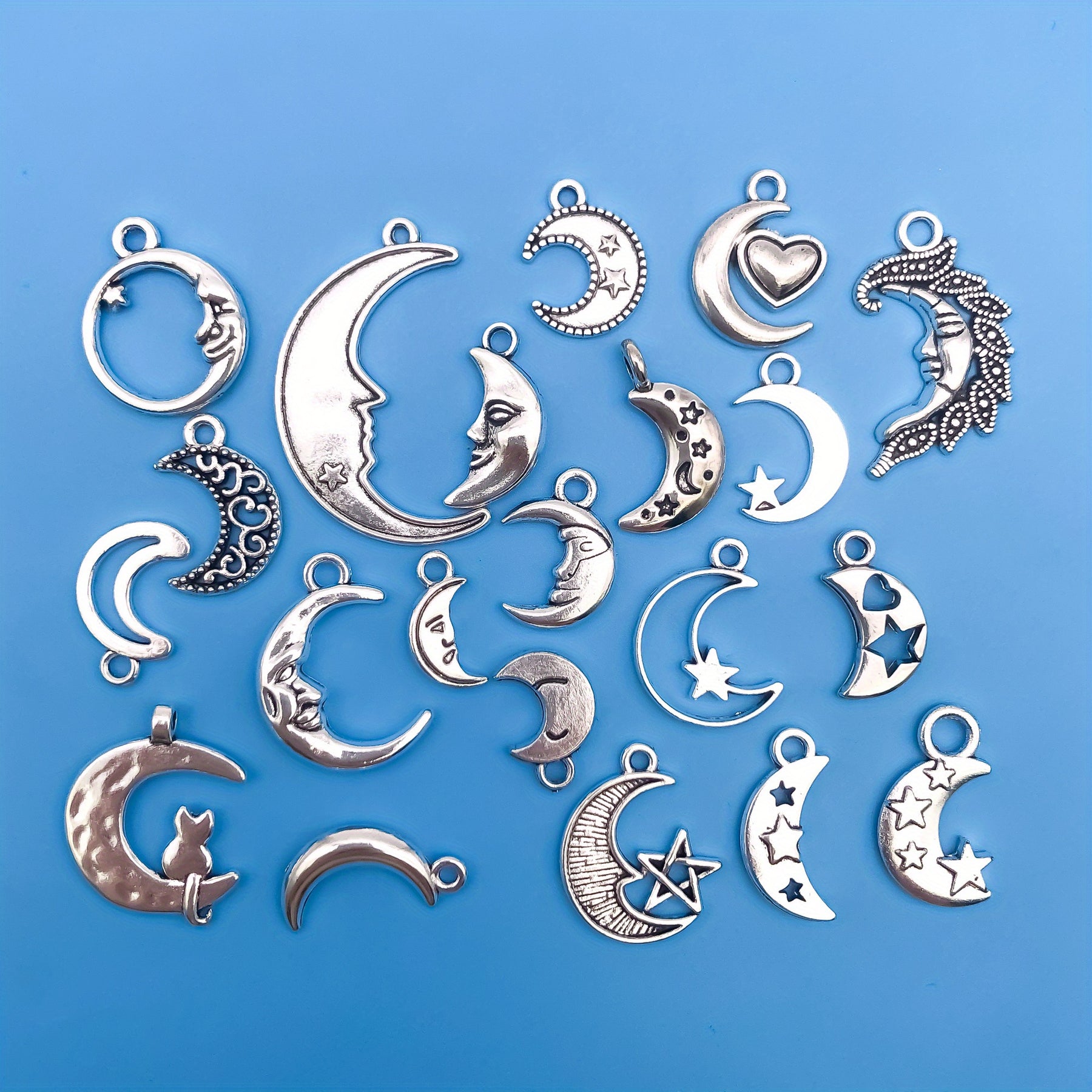 Create beautiful jewelry with this 21-piece set of zinc alloy charms featuring sun, moon, and star shapes. Perfect for necklaces, bracelets, and earrings.