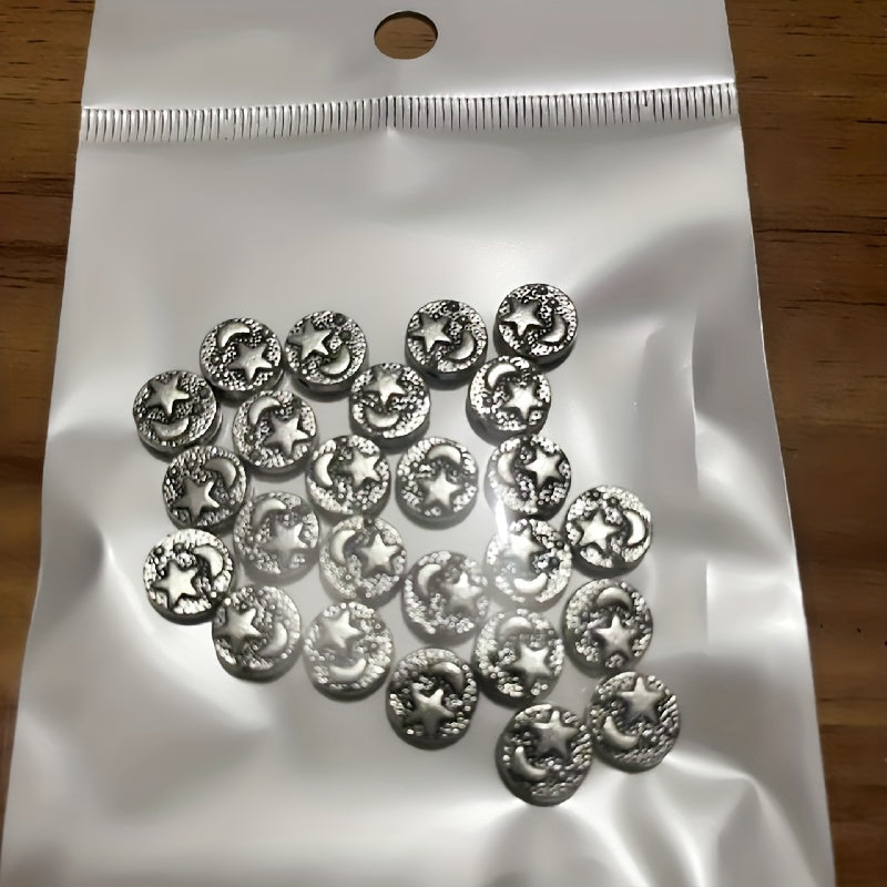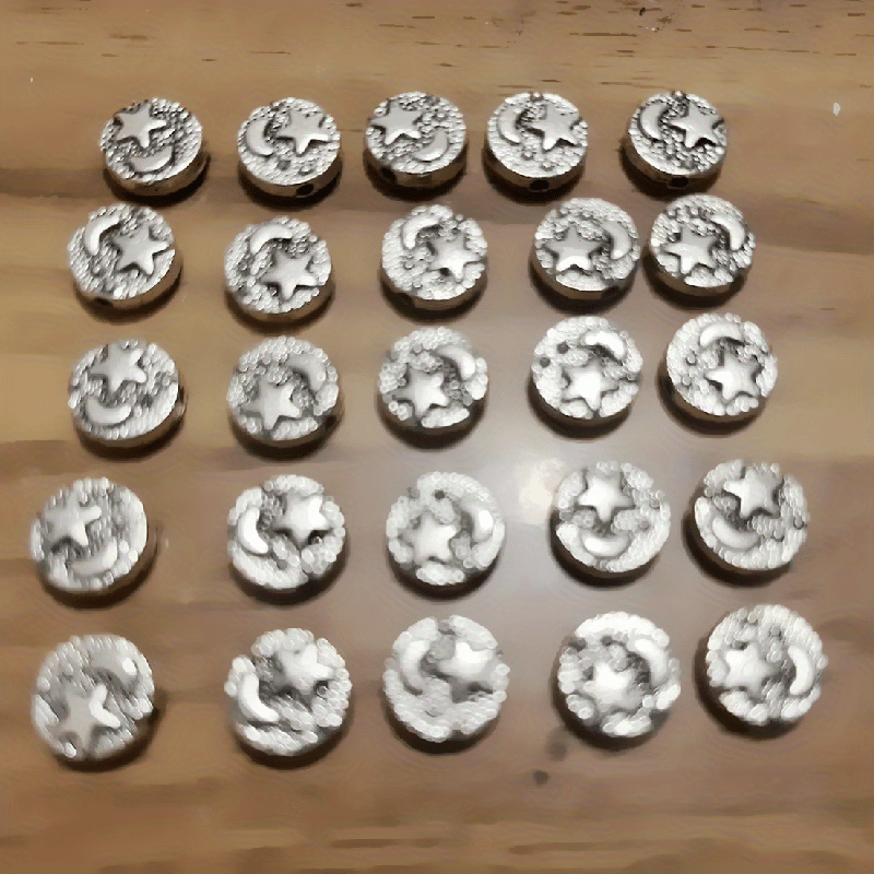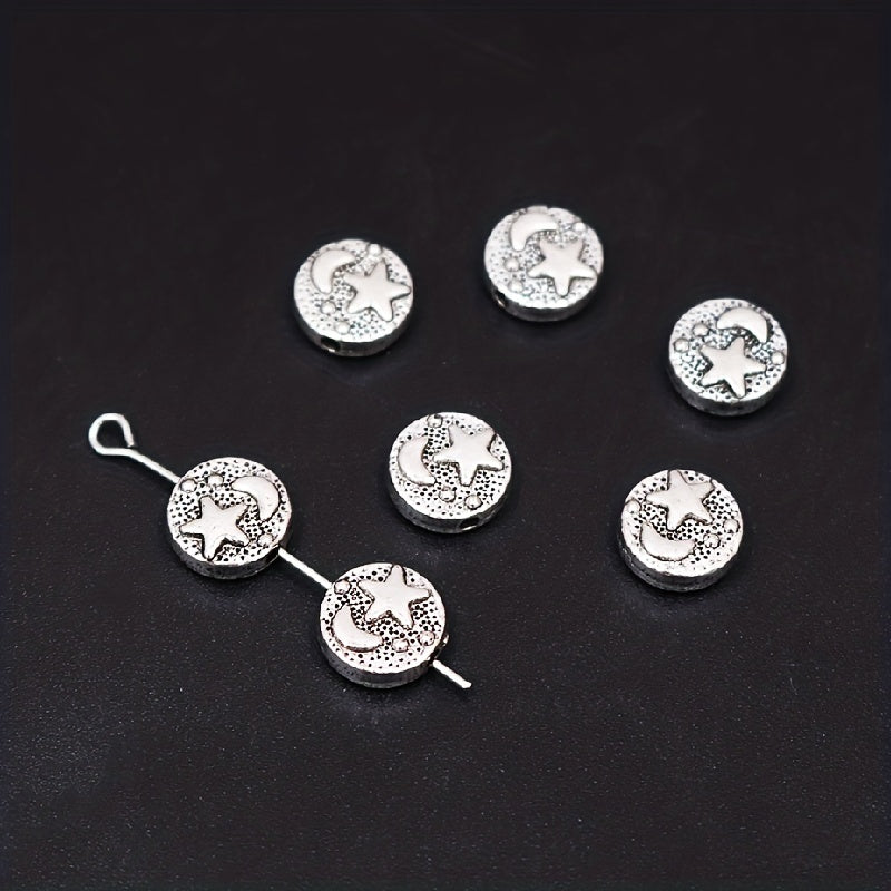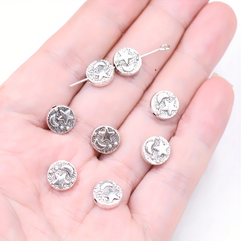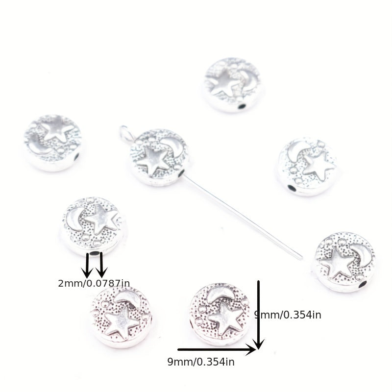 Add a touch of vintage charm to your jewelry creations with these 25pcs retro carved moon and star silver round loose beads charms pendants. Perfect for DIY necklaces, bracelets, and other arts and crafts projects.