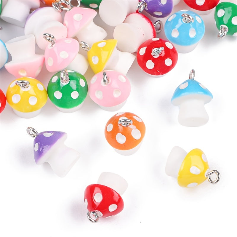 Enhance your jewelry designs with these 25 small mushroom pendants. Perfect for necklaces, bracelets, and earrings. Made of high-quality material.