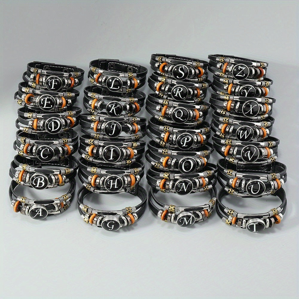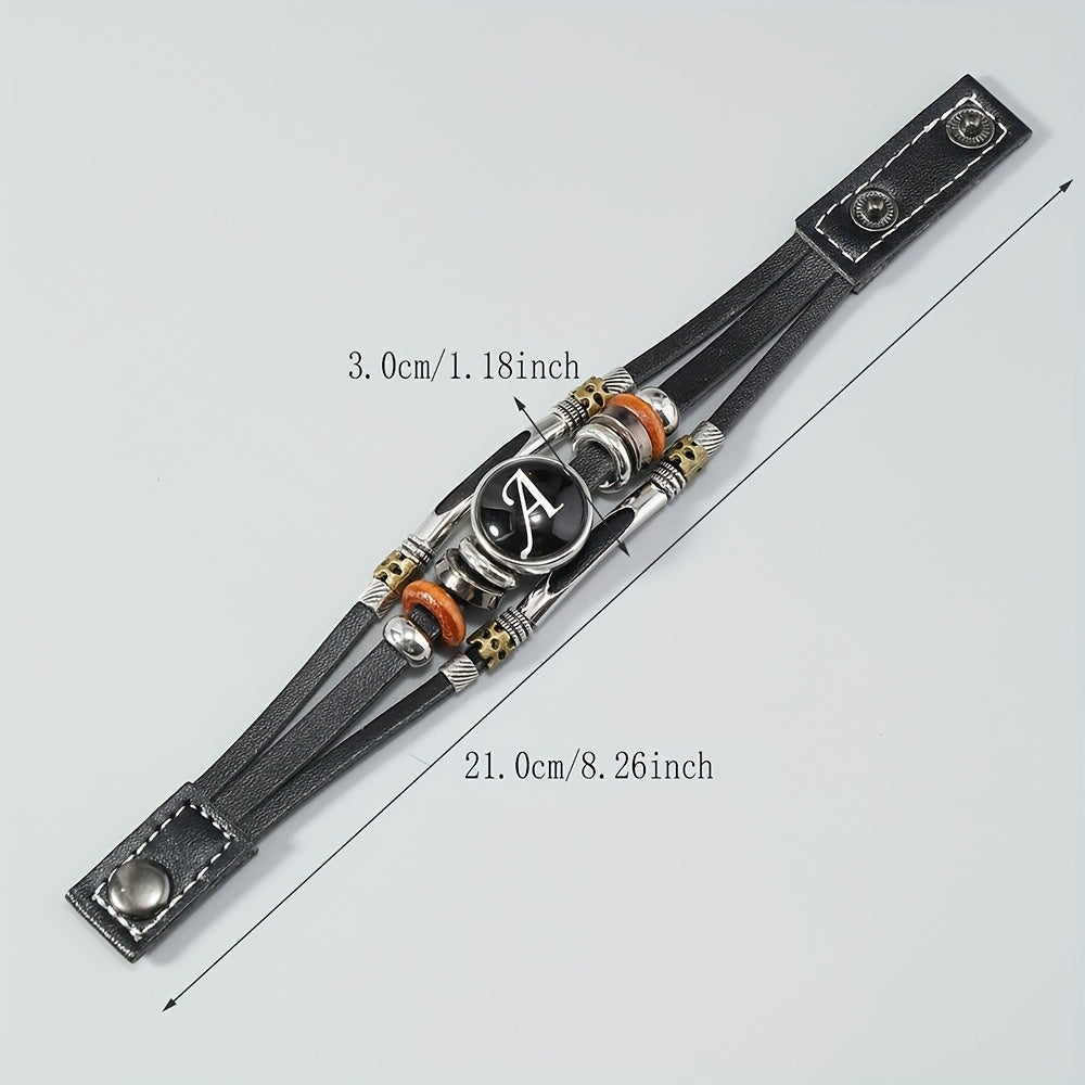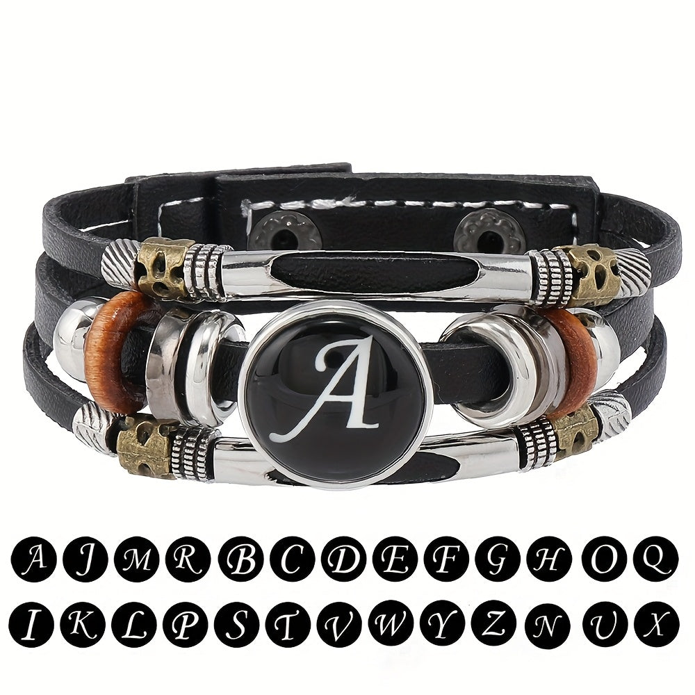 This stylish faux leather bracelet features all 26 English letters, perfect for a hip hop or punk look. The European and American design adds a unique touch.