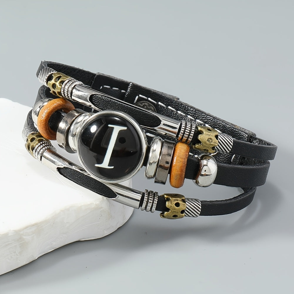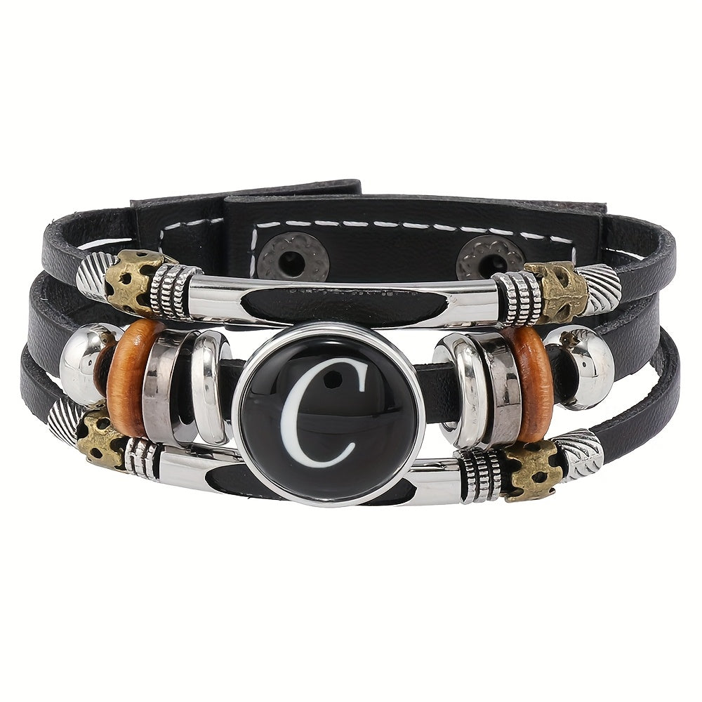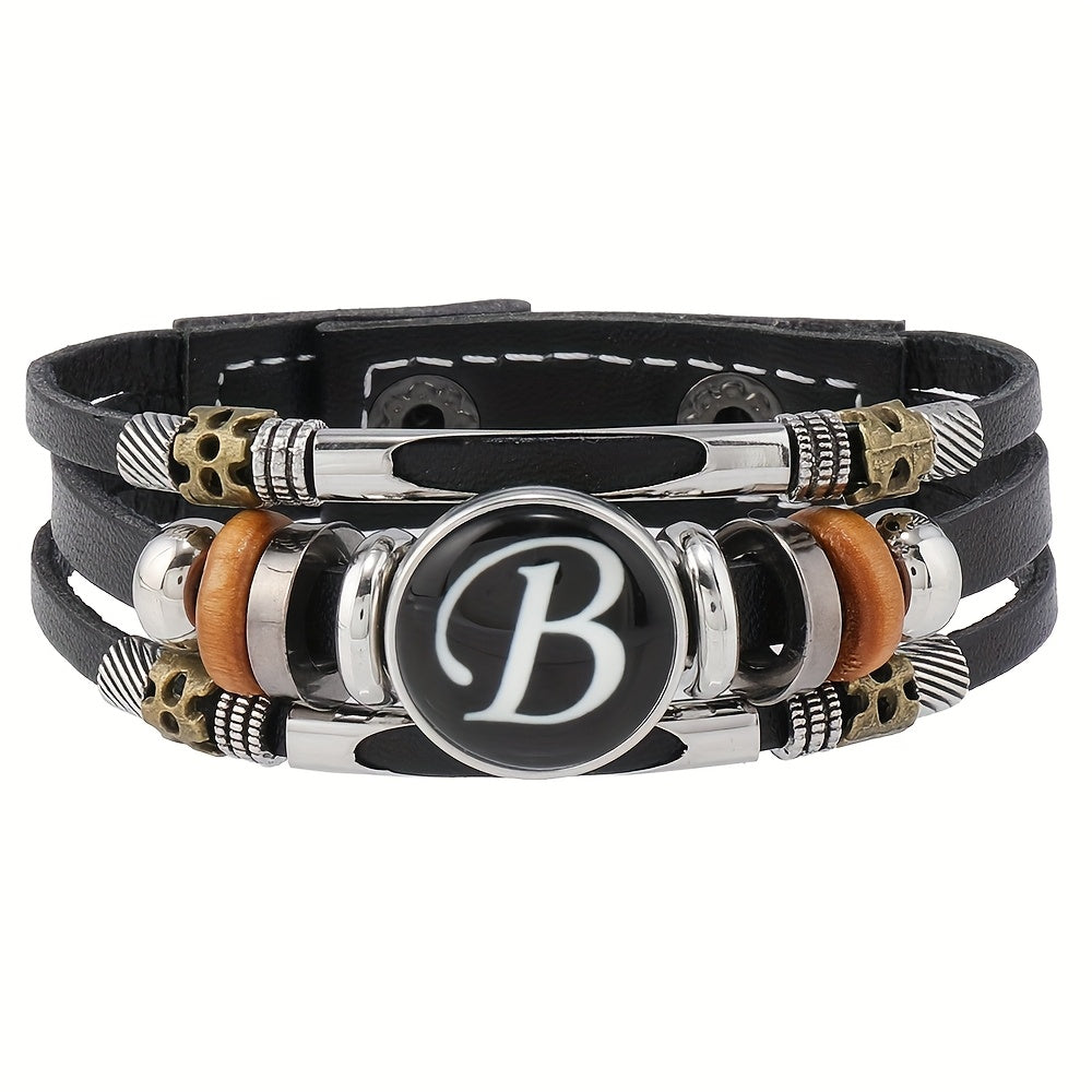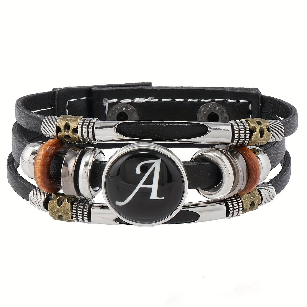 This stylish faux leather bracelet features all 26 English letters, perfect for a hip hop or punk look. The European and American design adds a unique touch.