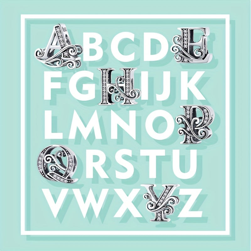 26 Letters 925 Silver DIY Beads Set for Bracelet Necklace, 1 Pack
