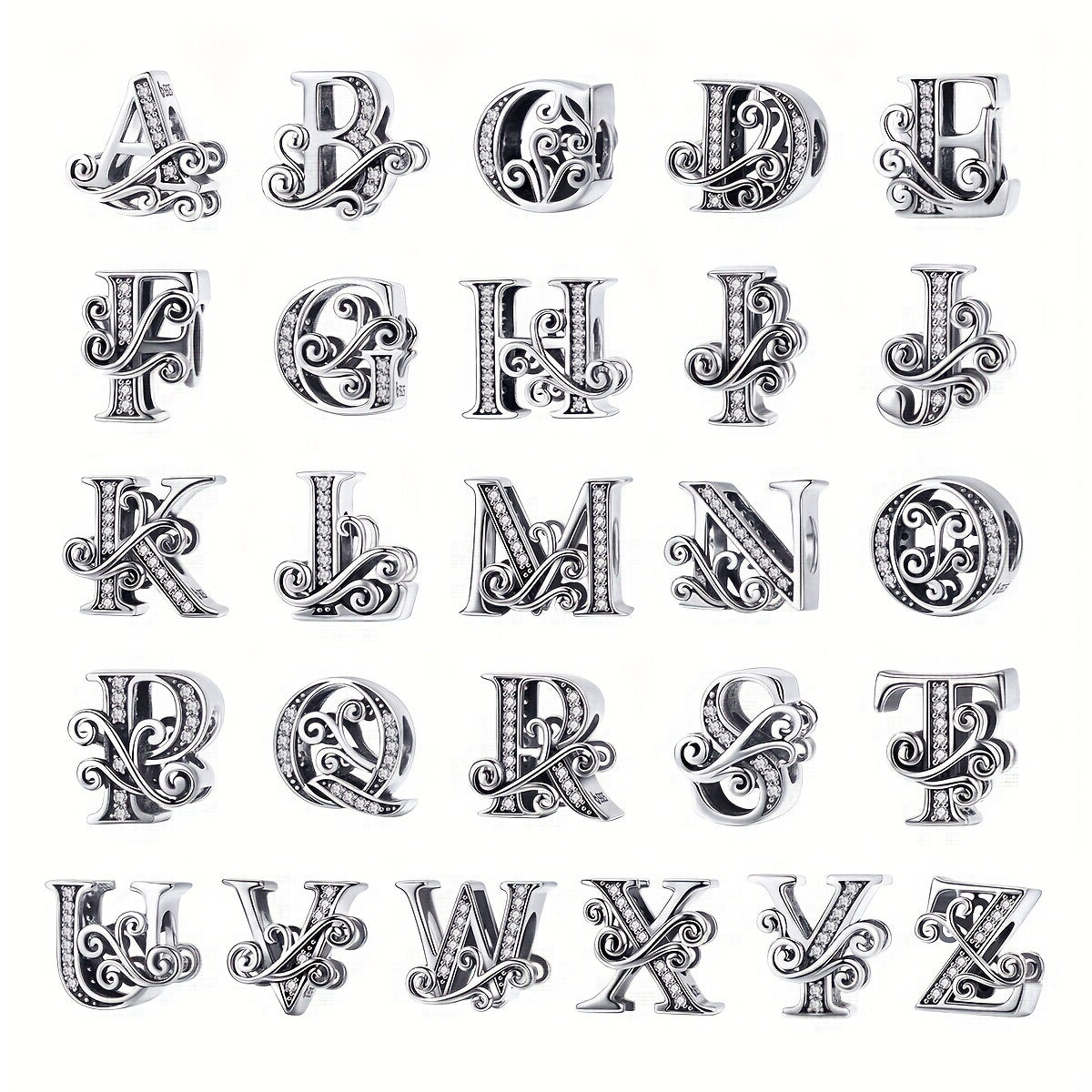 Create personalized jewelry with this 26 English letter bead set made of 925 silver. Perfect for crafting unique bracelets and necklaces.