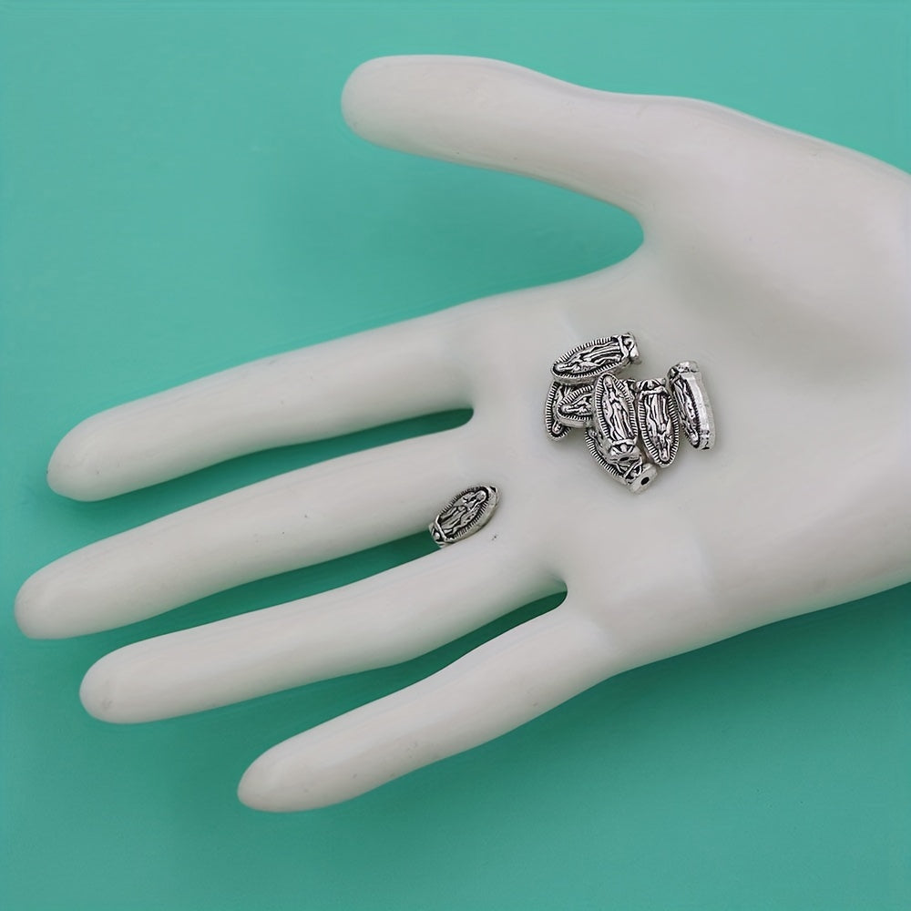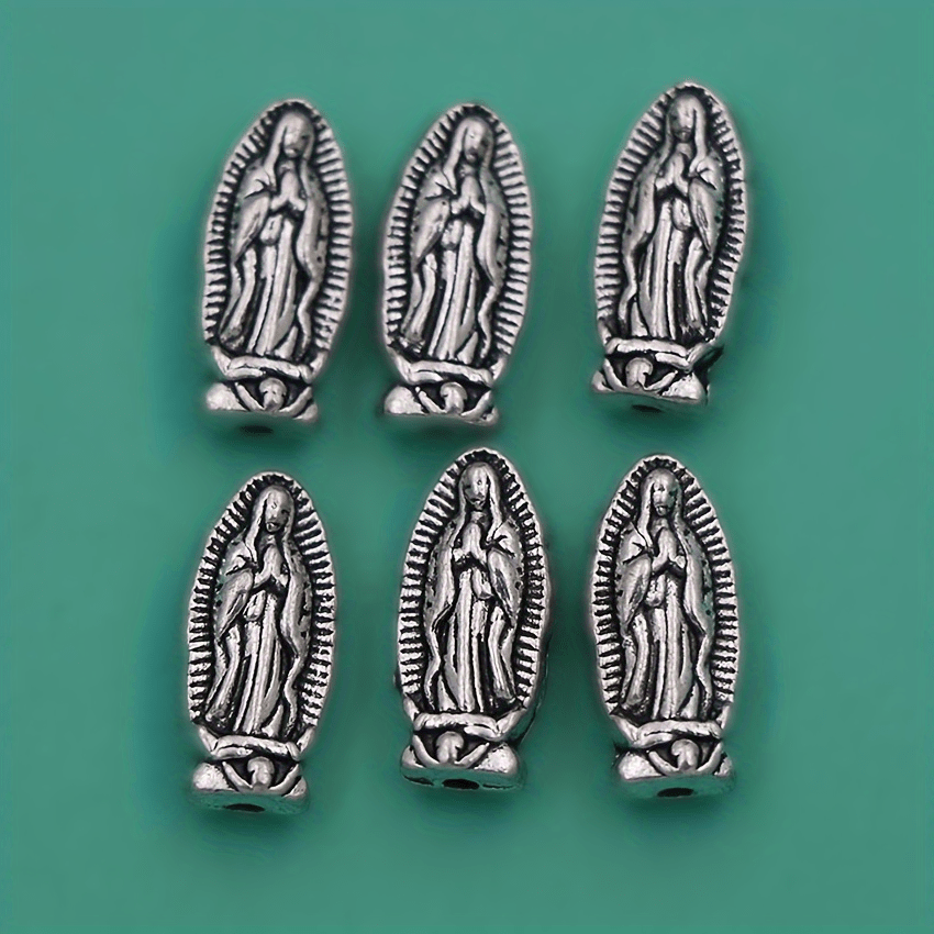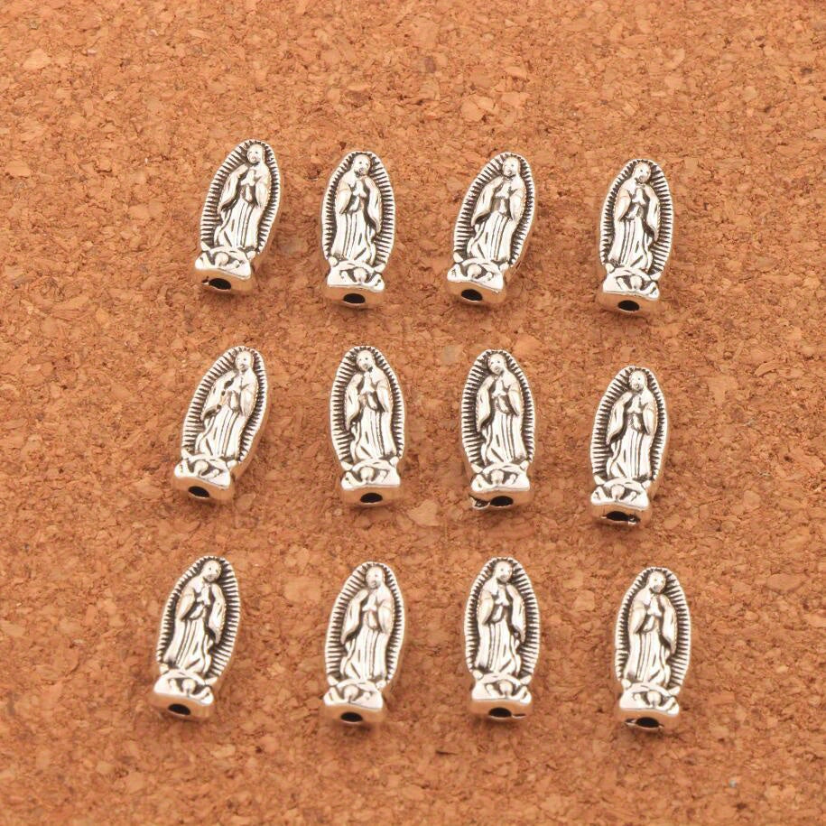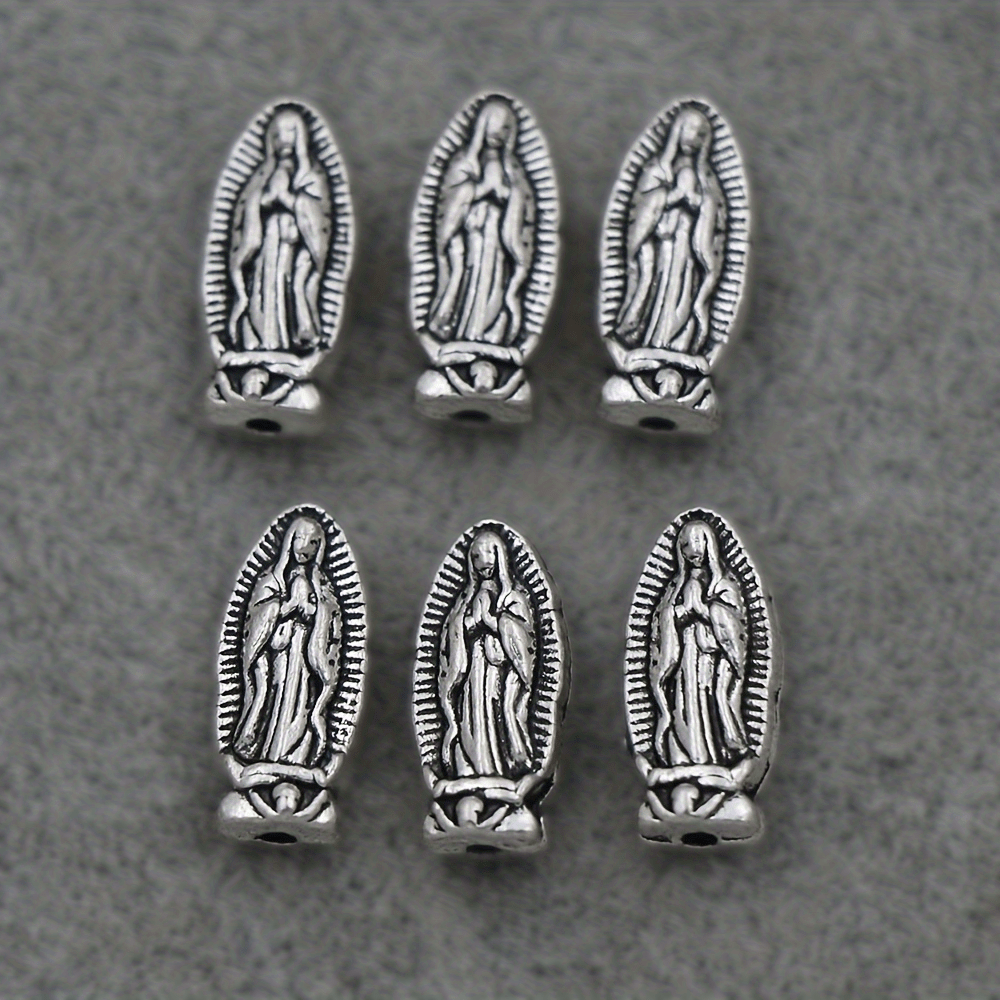 Create stunning jewelry with these antique silvery religious figure pattern loose rosary spacer beads. Perfect for DIY necklaces and bracelets, these charms add a unique touch to your jewelry designs.