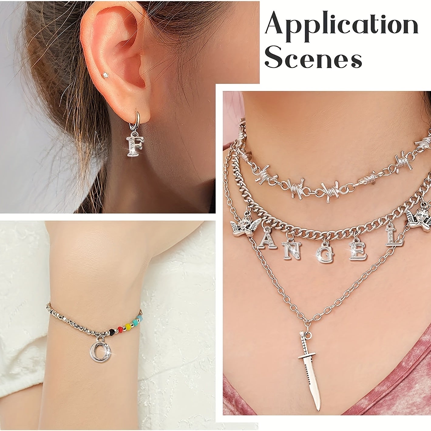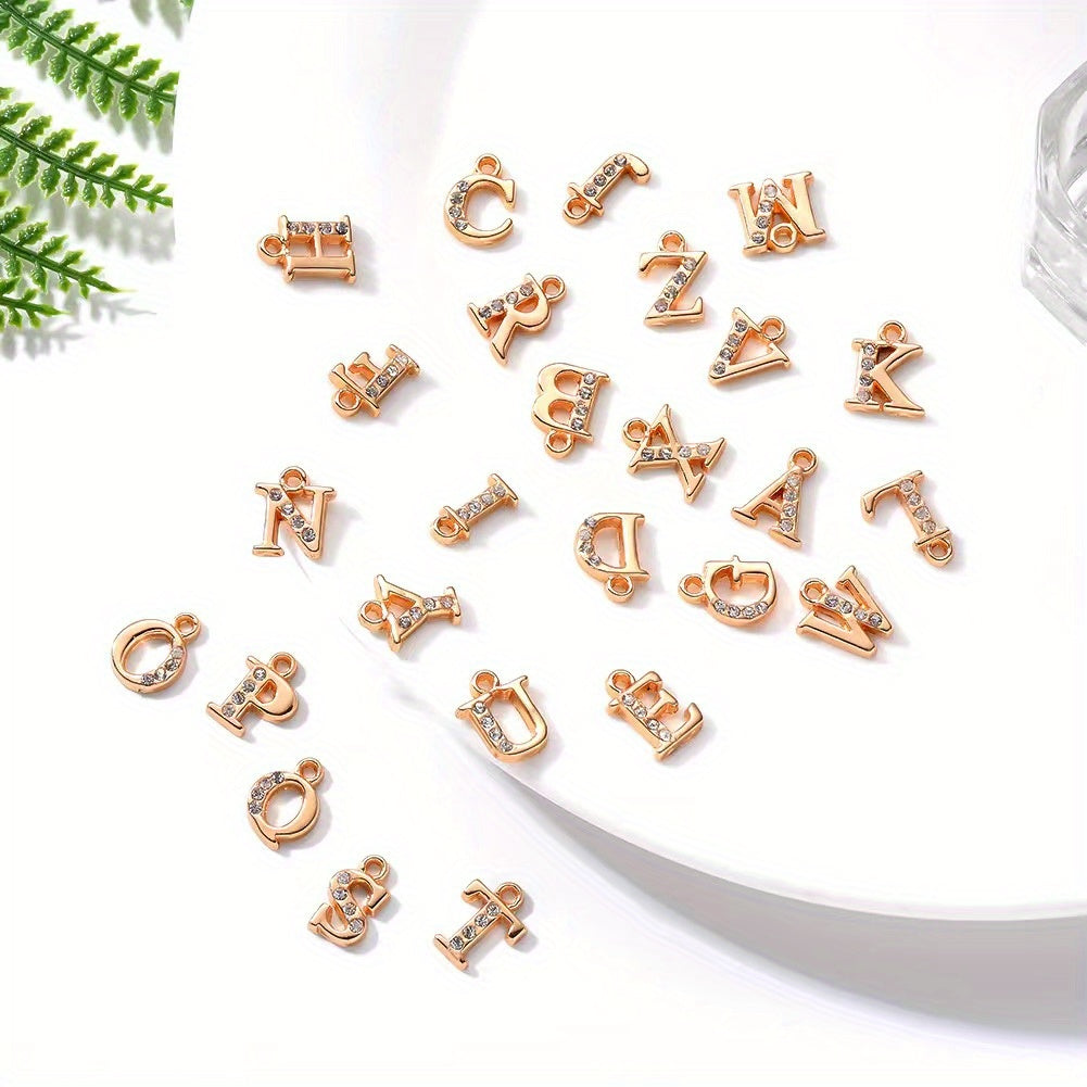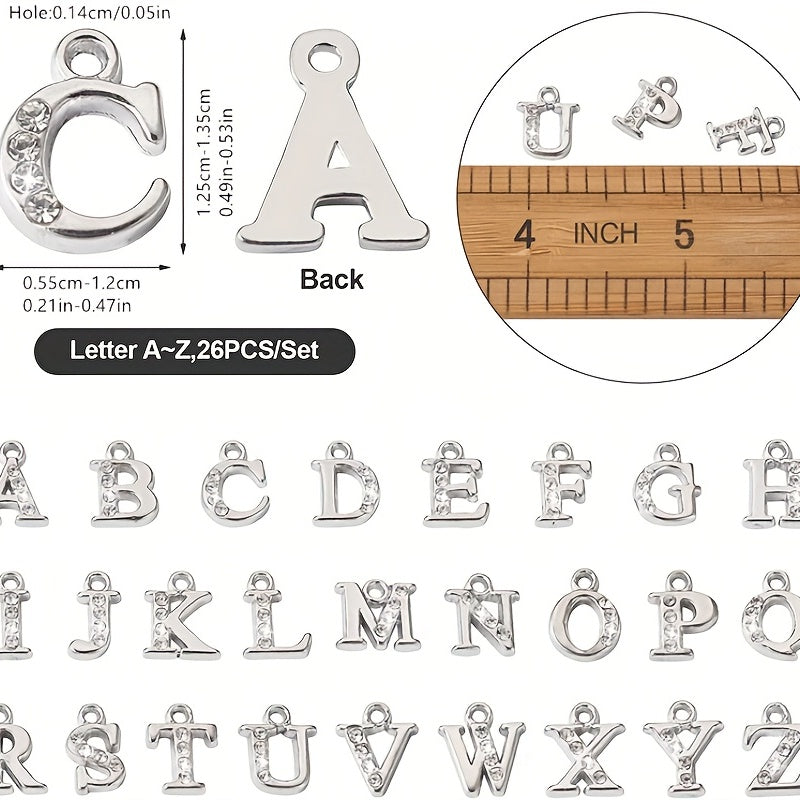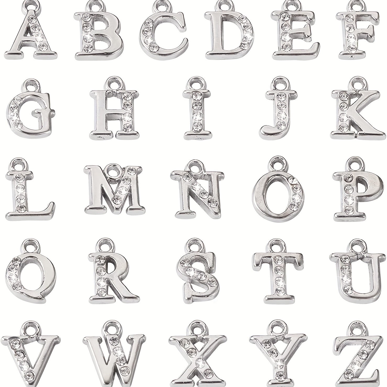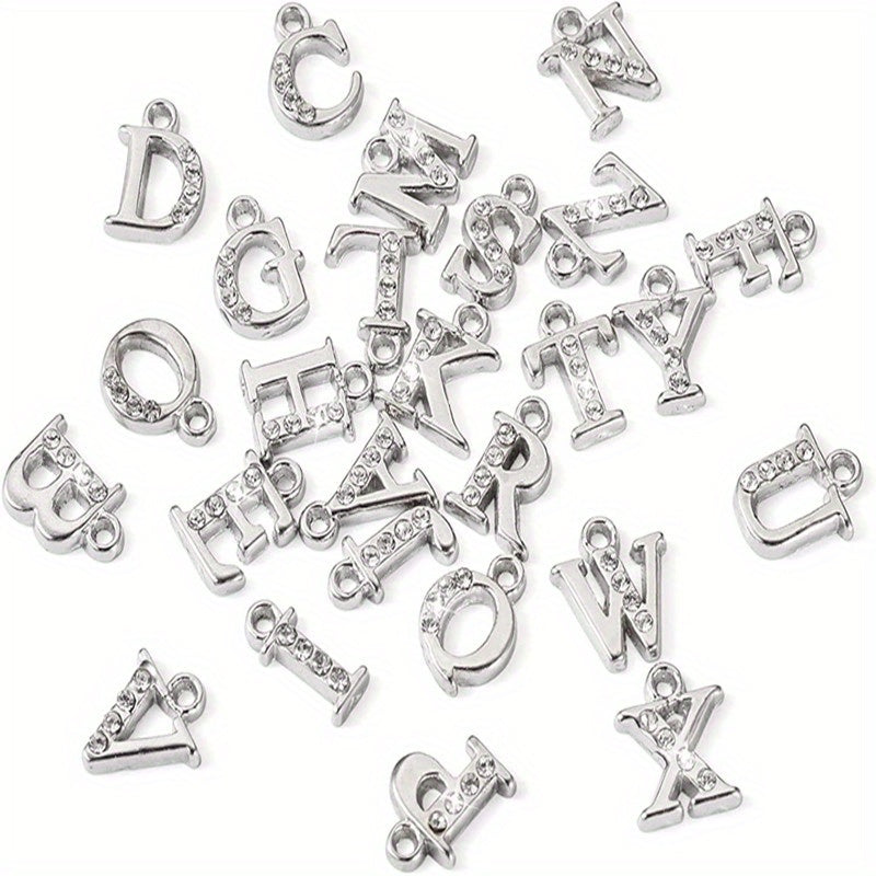 Enhance your creativity with this set of 26 silver letter pendants adorned with sparkling rhinestones. Perfect for crafting earrings, bracelets, necklaces, and more.