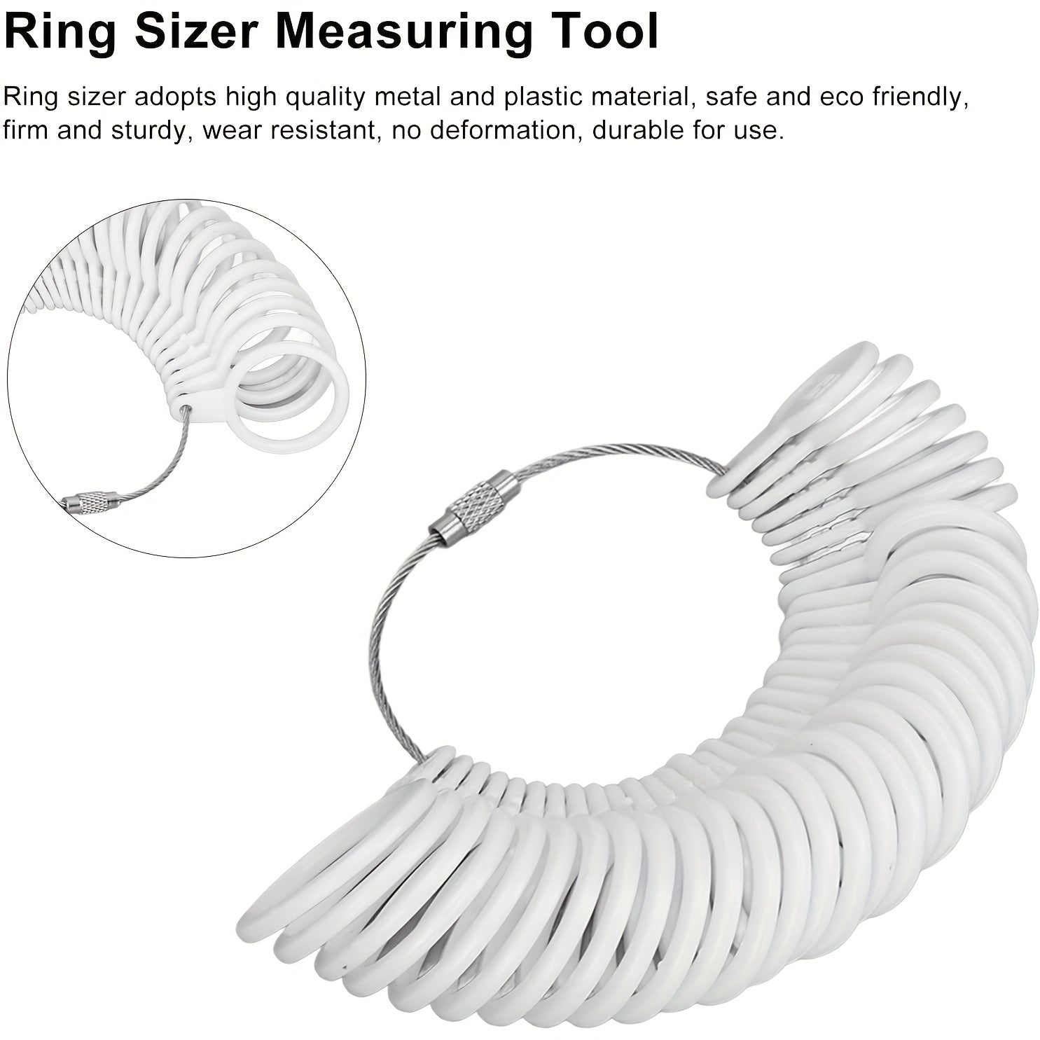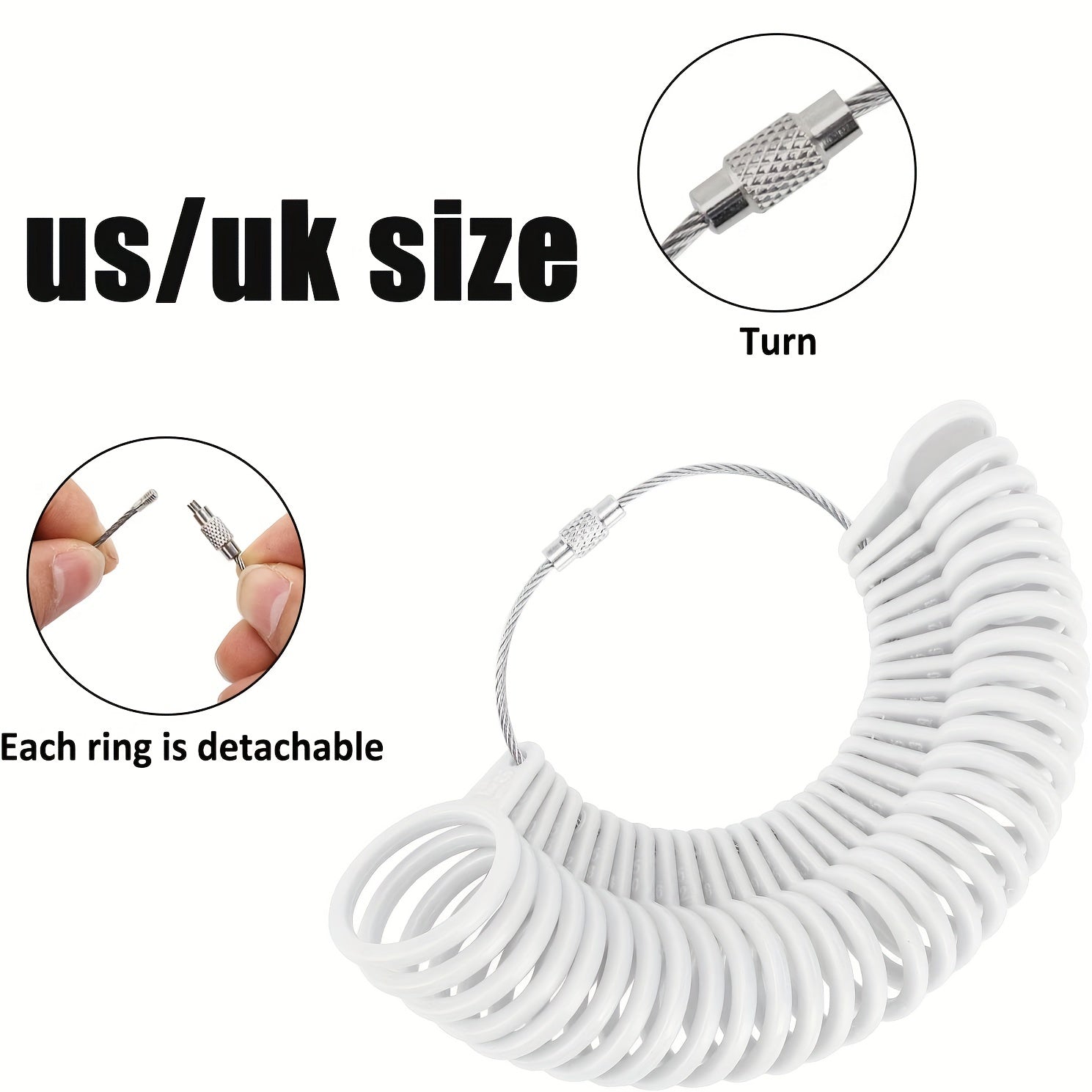Ensure a perfect fit with this set of 27 plastic ring sizers. Easy to use and accurate way to measure your ring size.