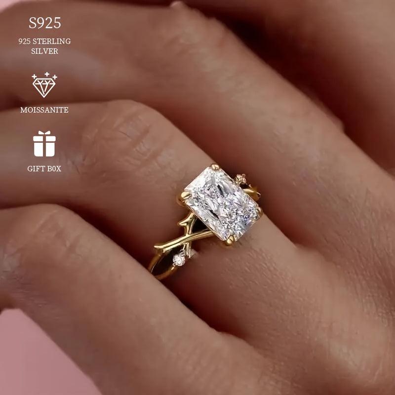 Elegant 2ct rectangular moissanite ring in a sterling silver setting. Hypoallergenic and perfect for proposals, engagements, and weddings.