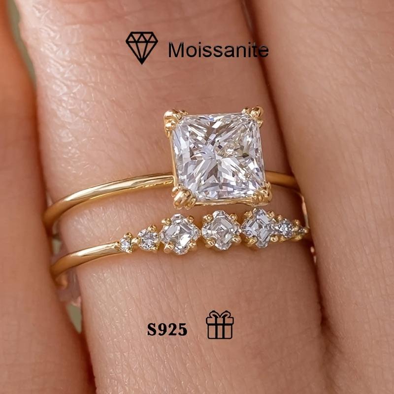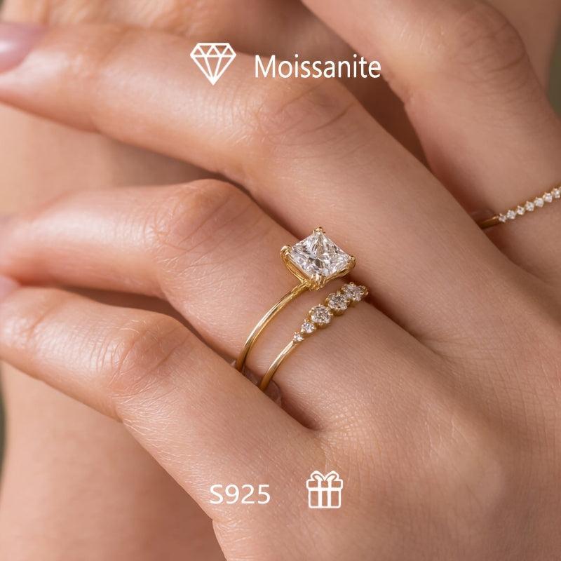 These 2 stunning rings are made of low allergy s925 silver with a 2ct princess square moissanite. Perfect for women as a vintage stackable set or as a thoughtful gift for your wife. Comes in a beautiful packaging.