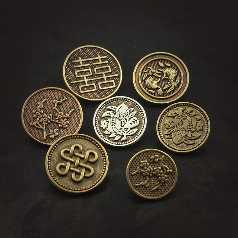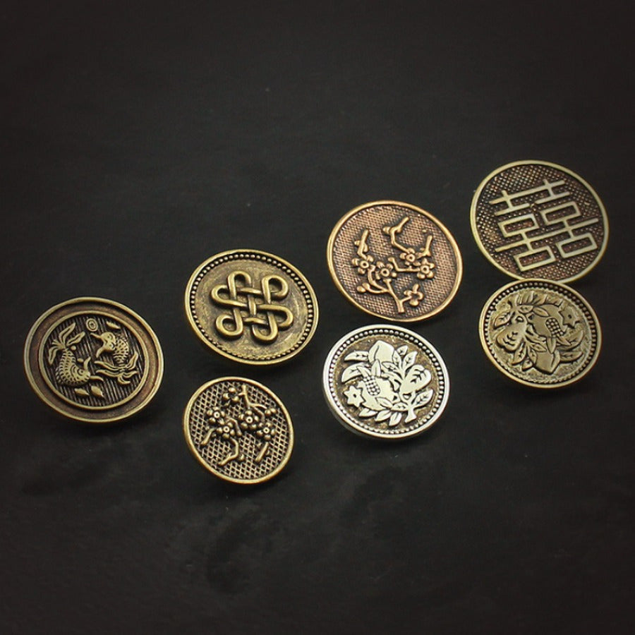 2pcs Brass Patterned Buttons Retro Clothing Ornament