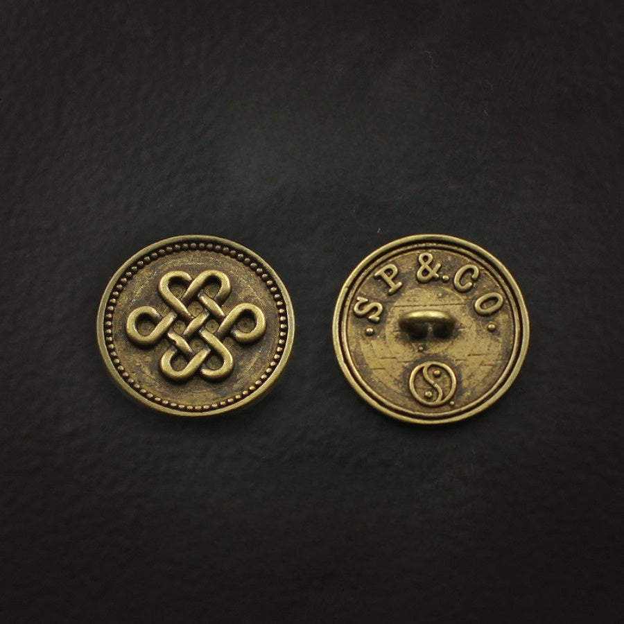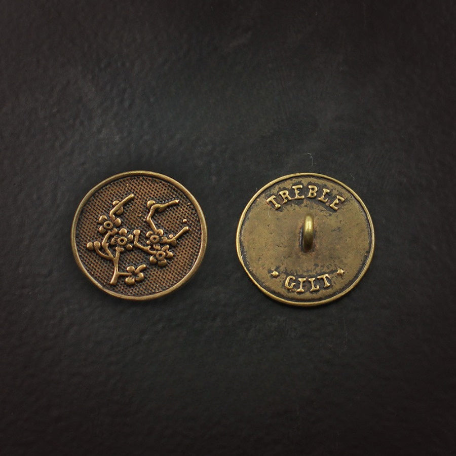 Enhance the look of your suit coat or coat with these brass patterned buttons. Perfect retro clothing ornament.
