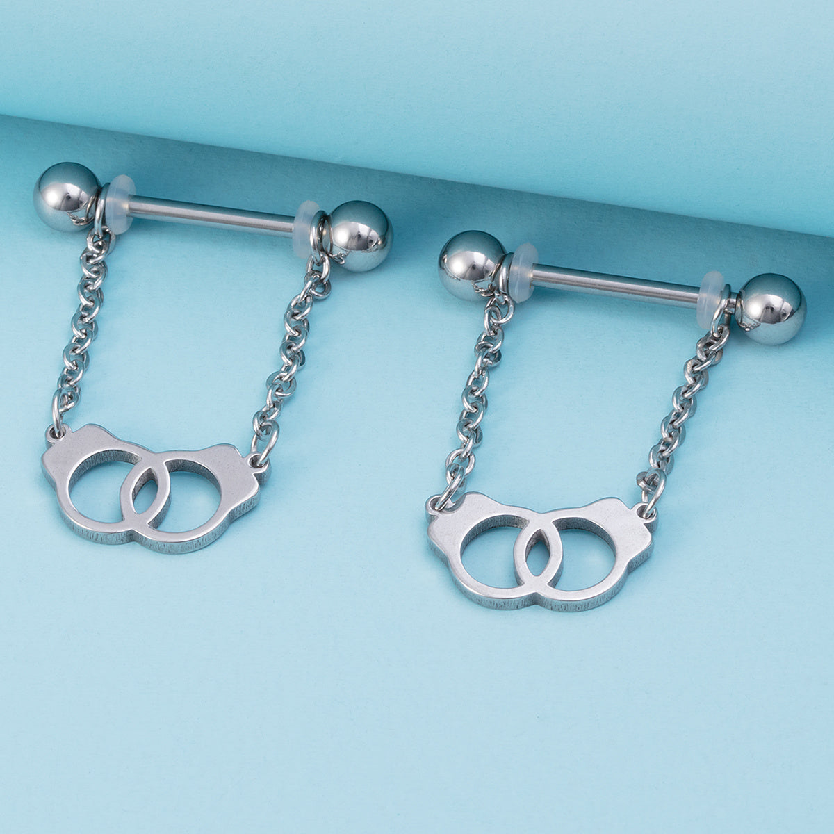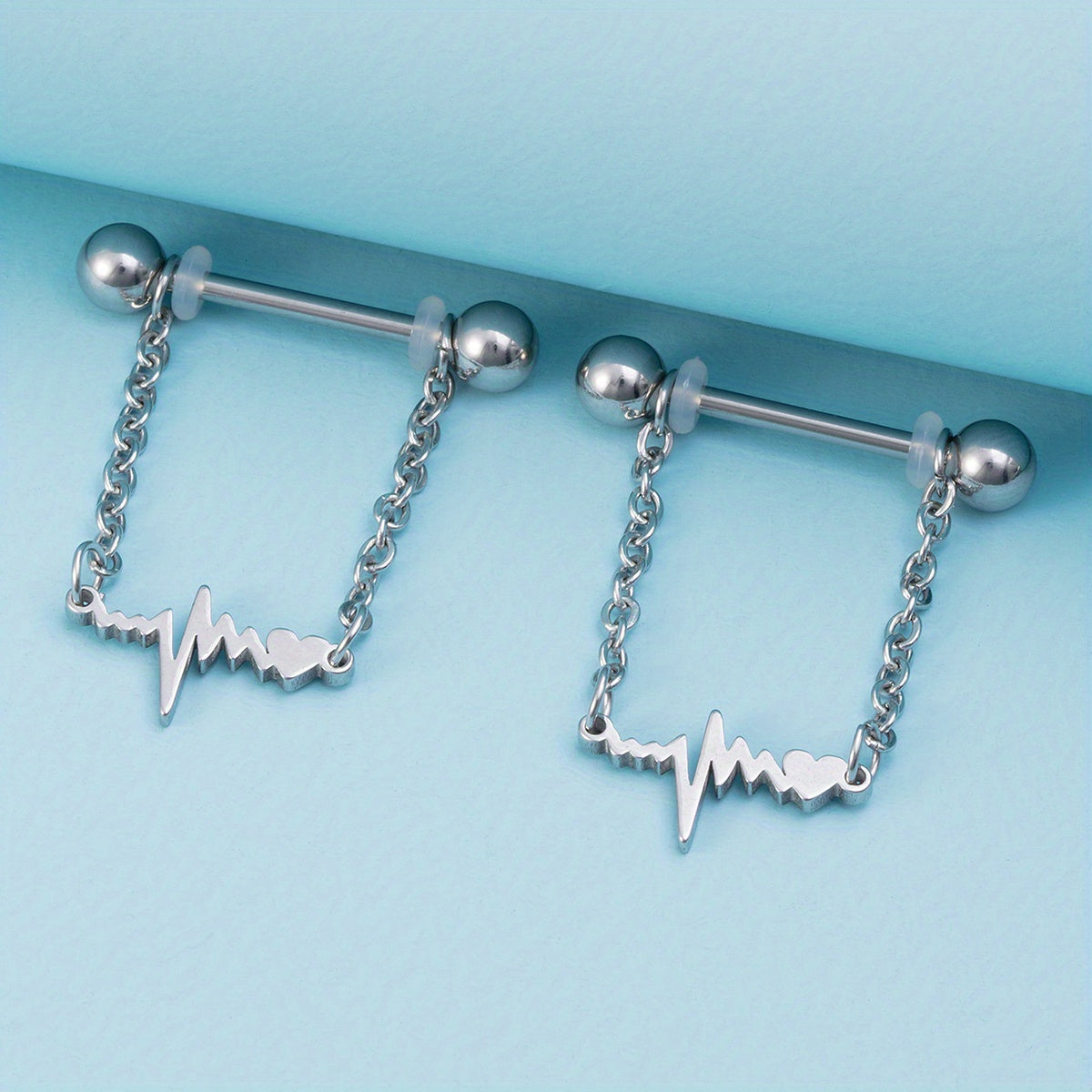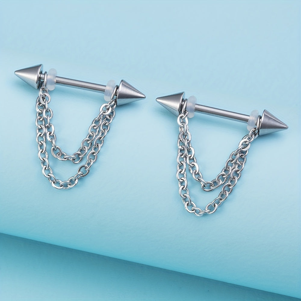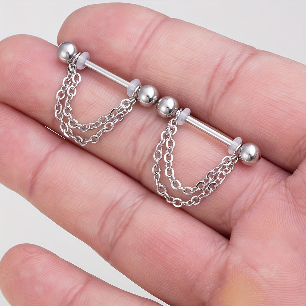 Add some edge to your look with this set of 2 chain nipple barbell rings. Made of durable material, these rings are perfect for body jewelry enthusiasts.