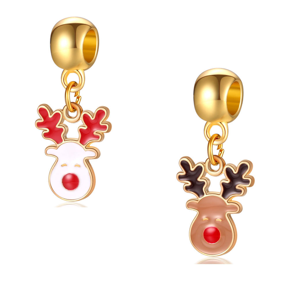 2pcs Colorful Enamel Christmas Elk Pendant for DIY Bracelet Necklace