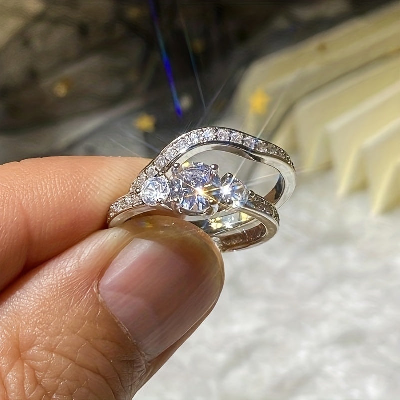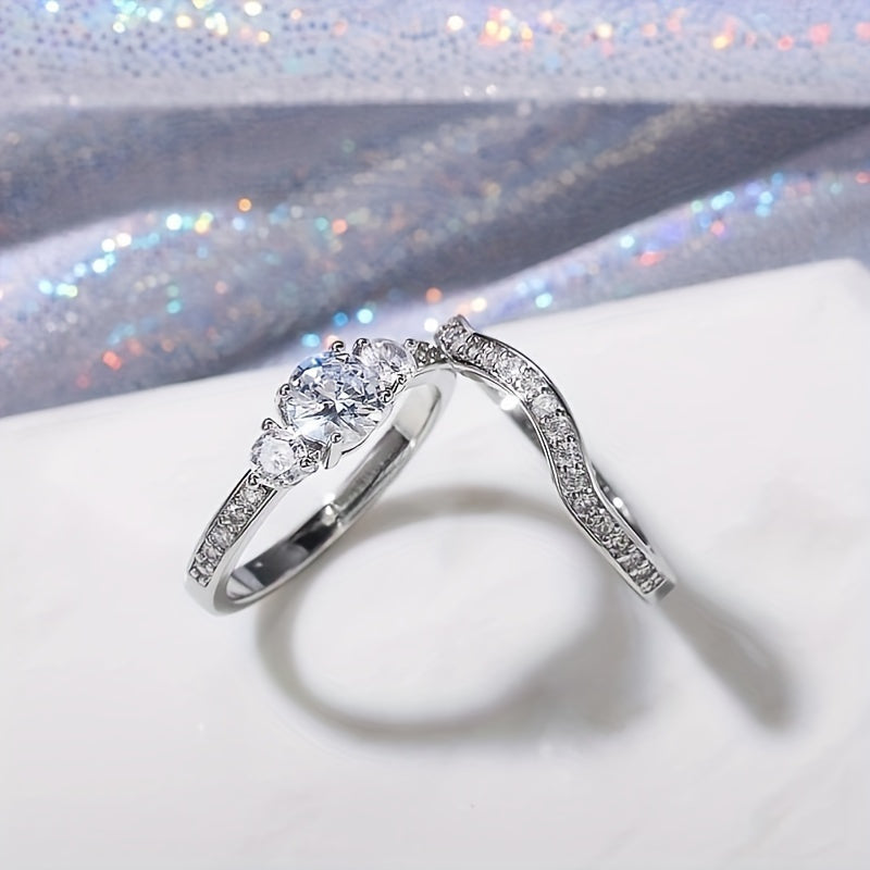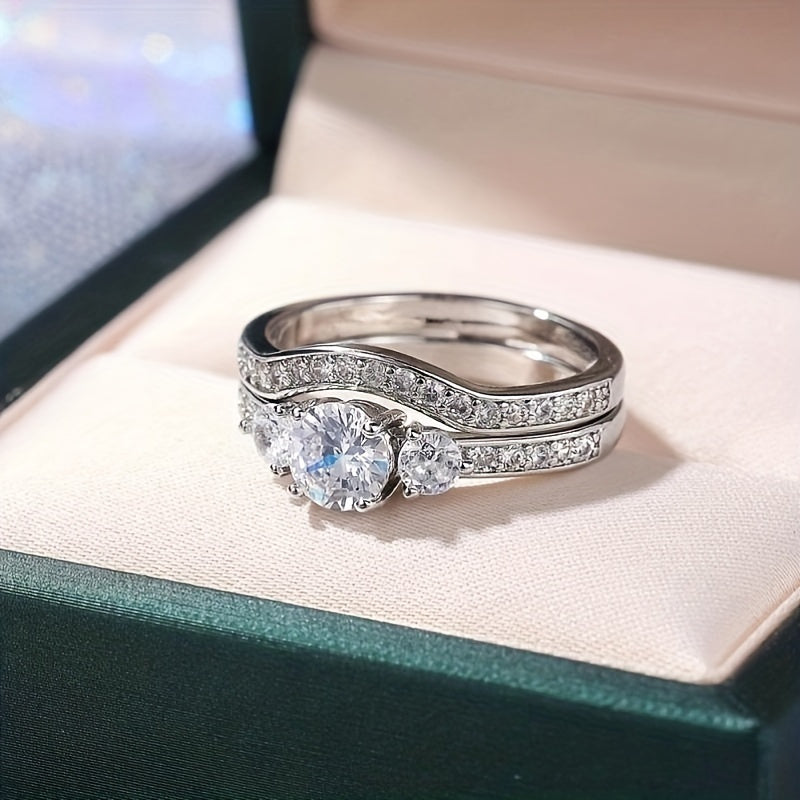 This 2-piece ring set is a perfect romantic gift for couples. Ideal for engagement, wedding, or as a token of love. It features a stylish design that symbolizes unity and commitment.