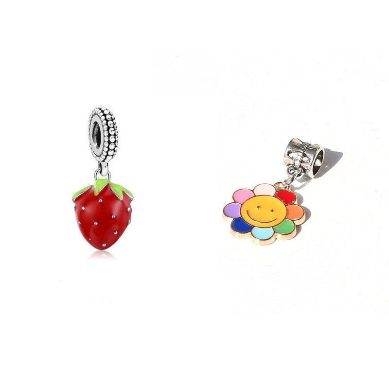 2PCS DIY Strawberries Sunflower Pendant for Bracelet Necklace Keychain Making