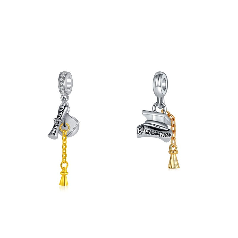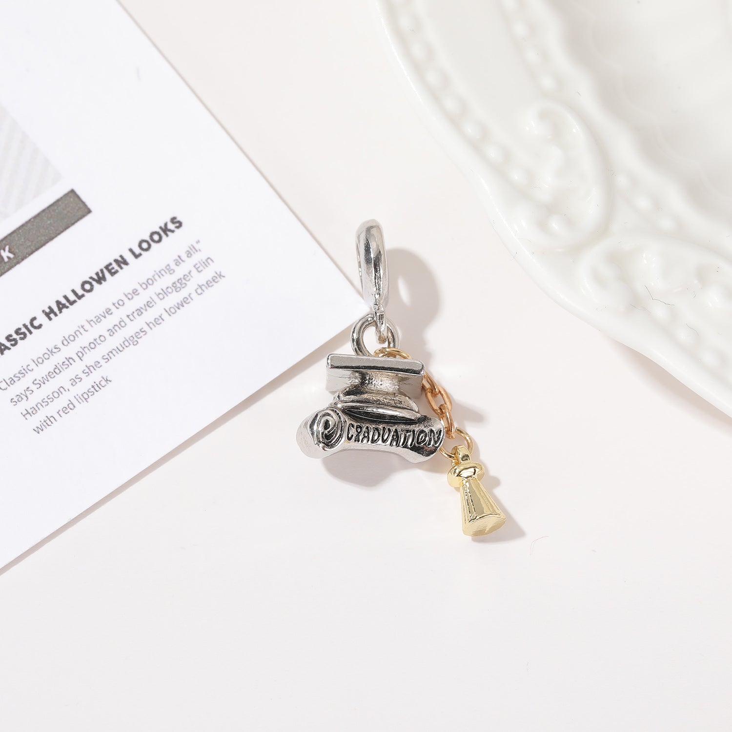 2pcs Grad Cap & Scroll Pendant Beads for Bracelet & Necklace Making
