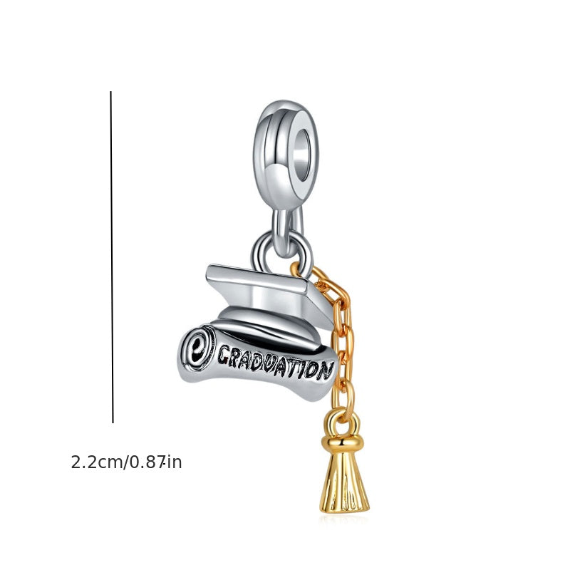 Add a touch of graduation charm to your jewelry creations with these 2pcs graduation cap and scroll pendant beads. Perfect for creating elegant bracelets or chain necklaces to celebrate milestones.