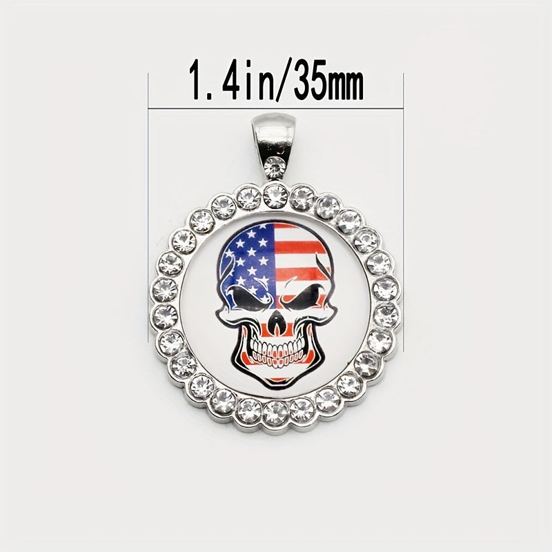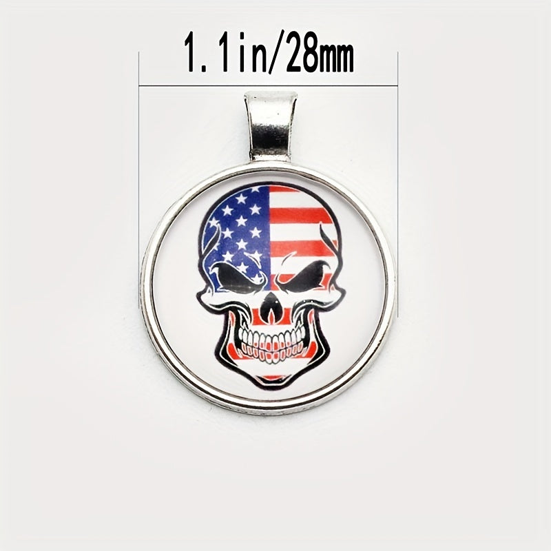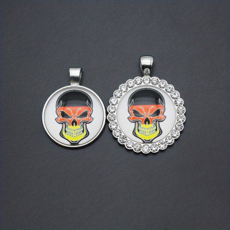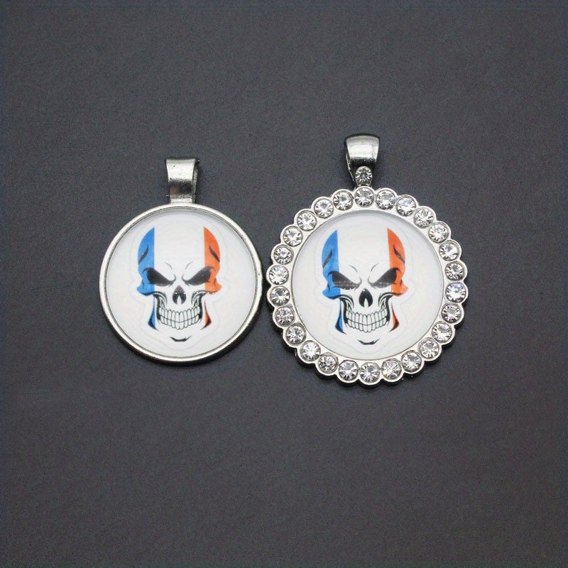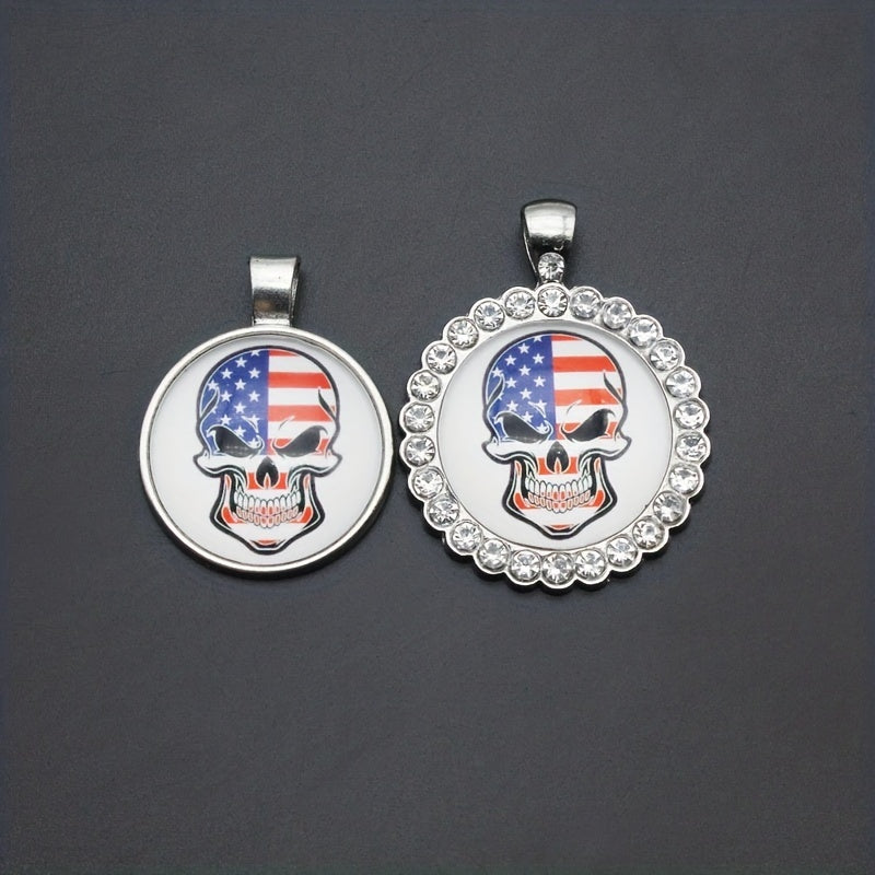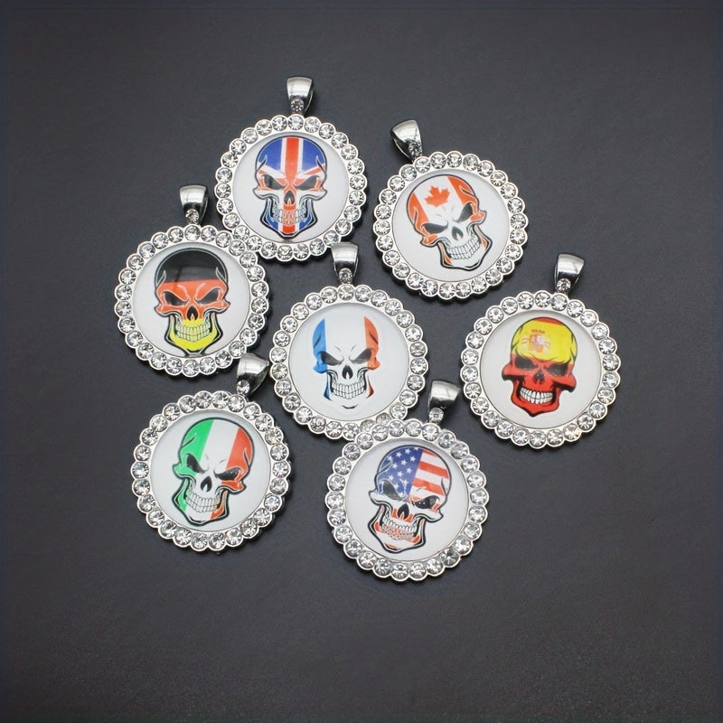 This set includes 2 assorted national flag and skull pattern round alloy pendant earrings, bracelet, and necklace DIY jewelry accessories for a unique and stylish look.