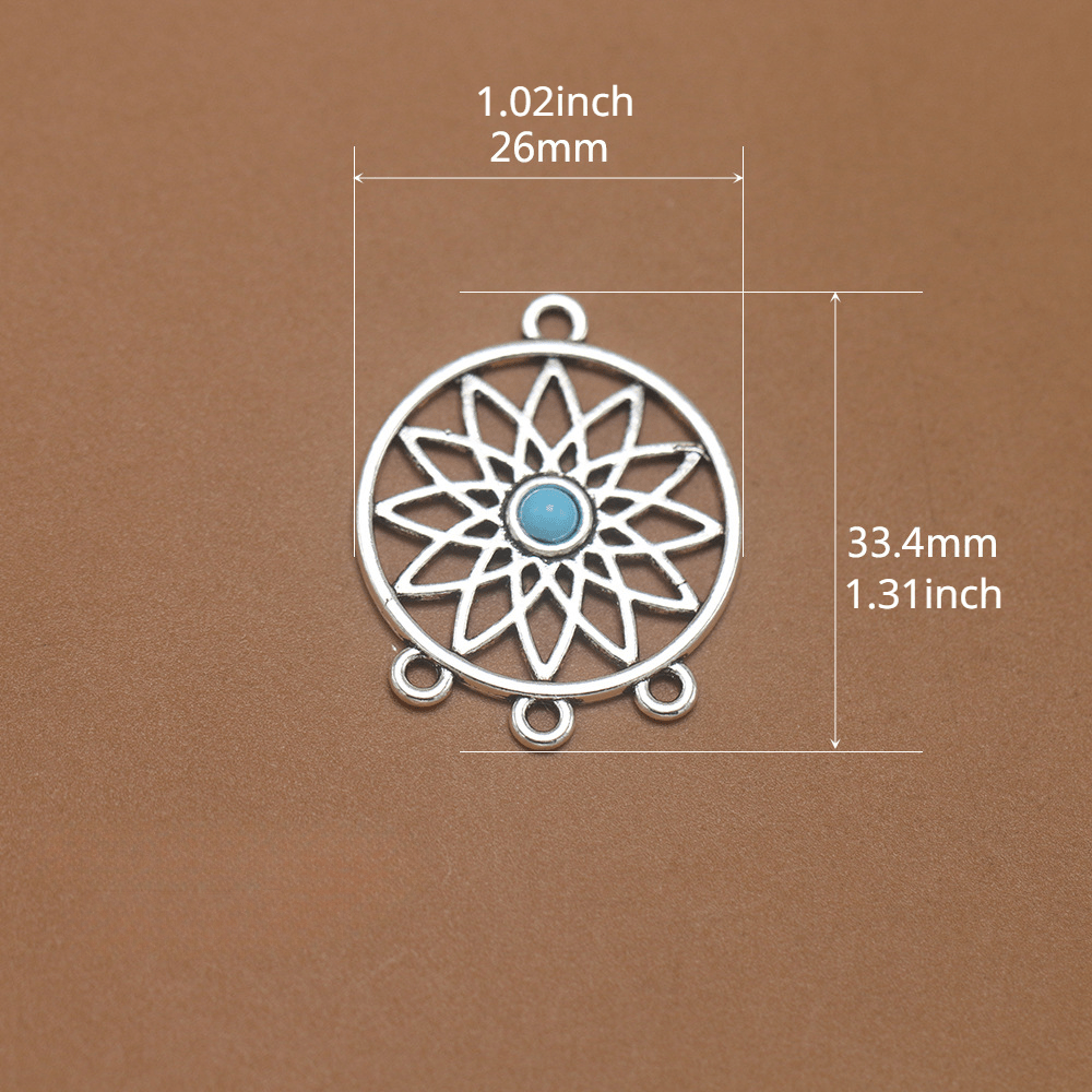 Add a touch of vintage style to your look with these 2pcs retro jewelry accessories featuring a hollow round net design with inlaid turquoise accents.