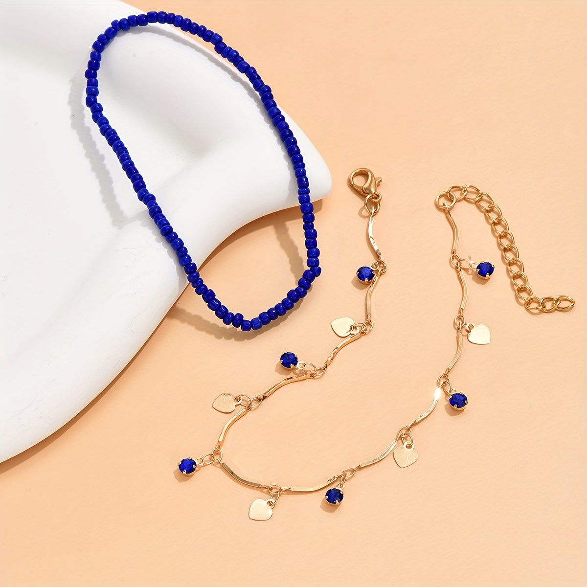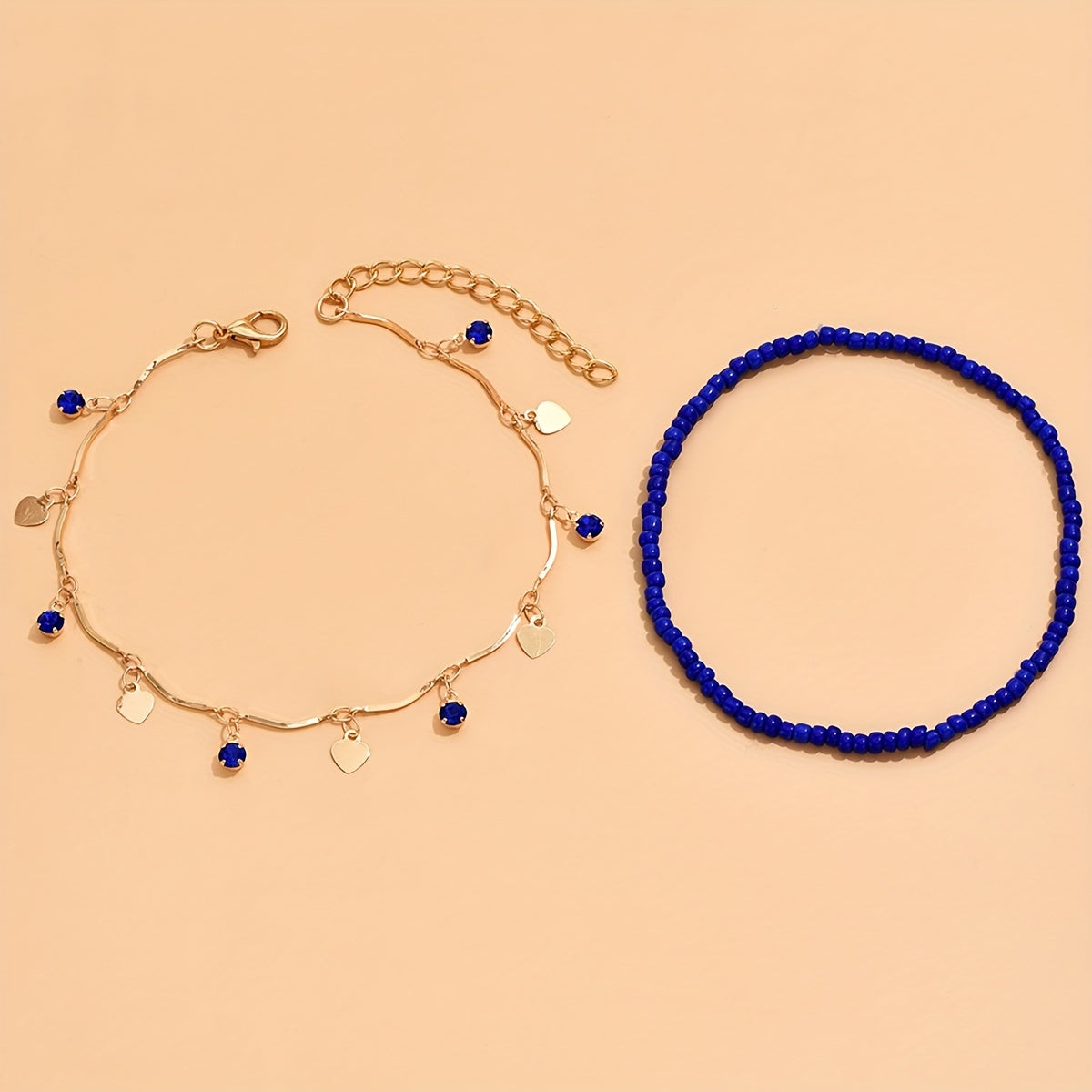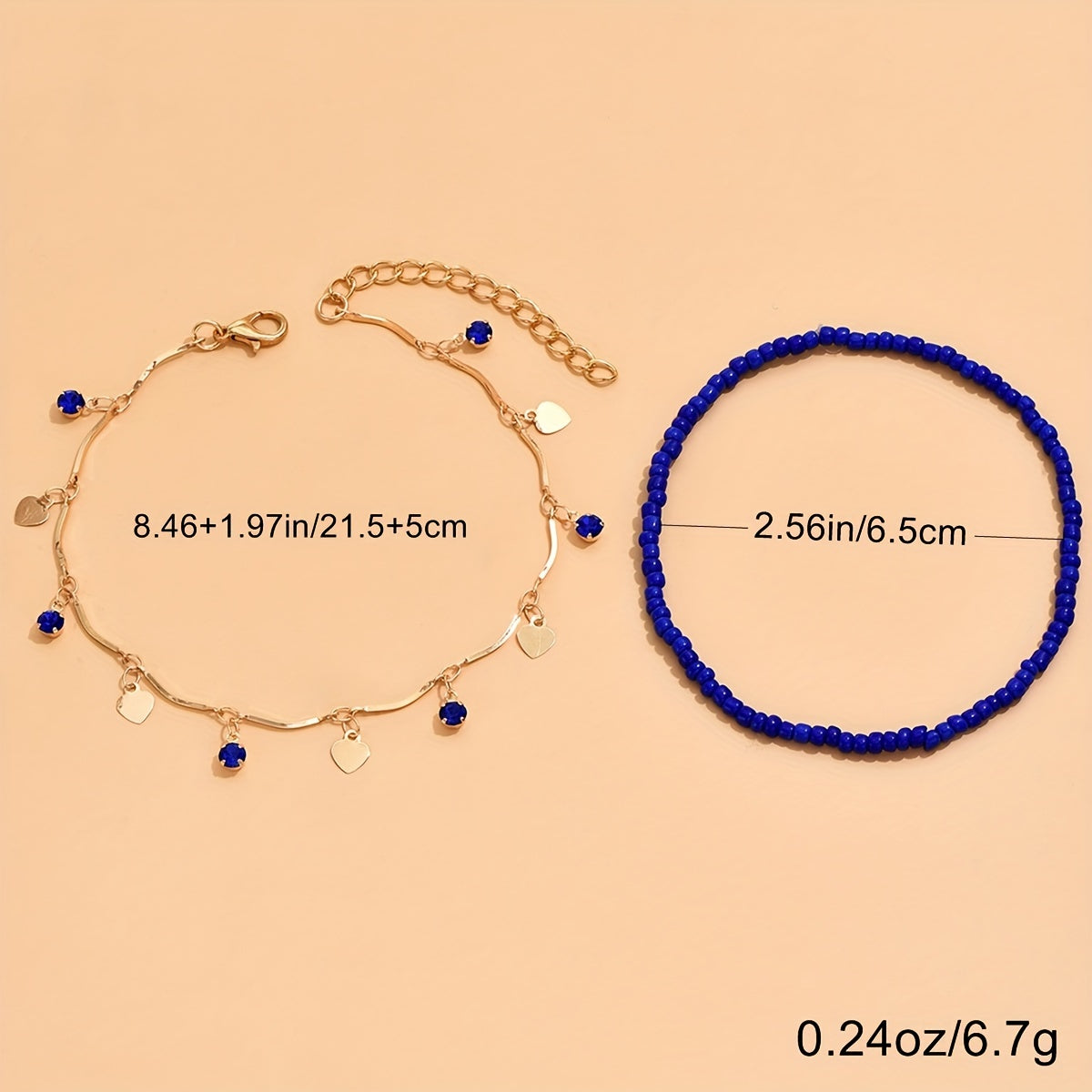 2pcs Rice Bead Heart Pendant Anklets for Women