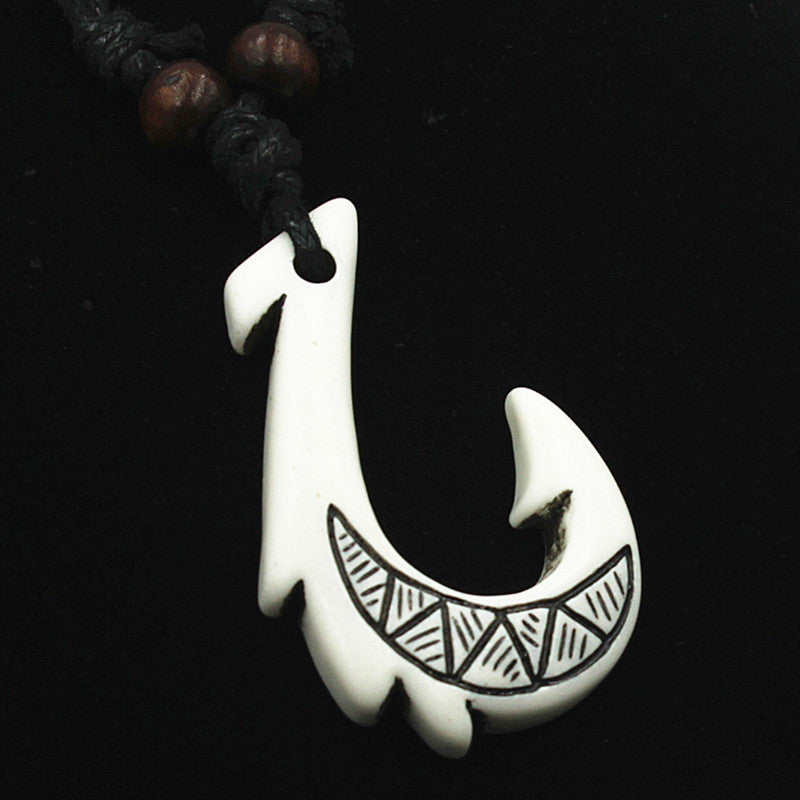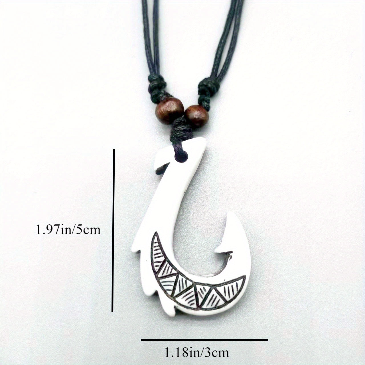 These ethnic tribal style resin necklaces feature mullet fish hook faux bone pendants, perfect for a vintage look. Each set includes 2 pieces of men's cord pendants.