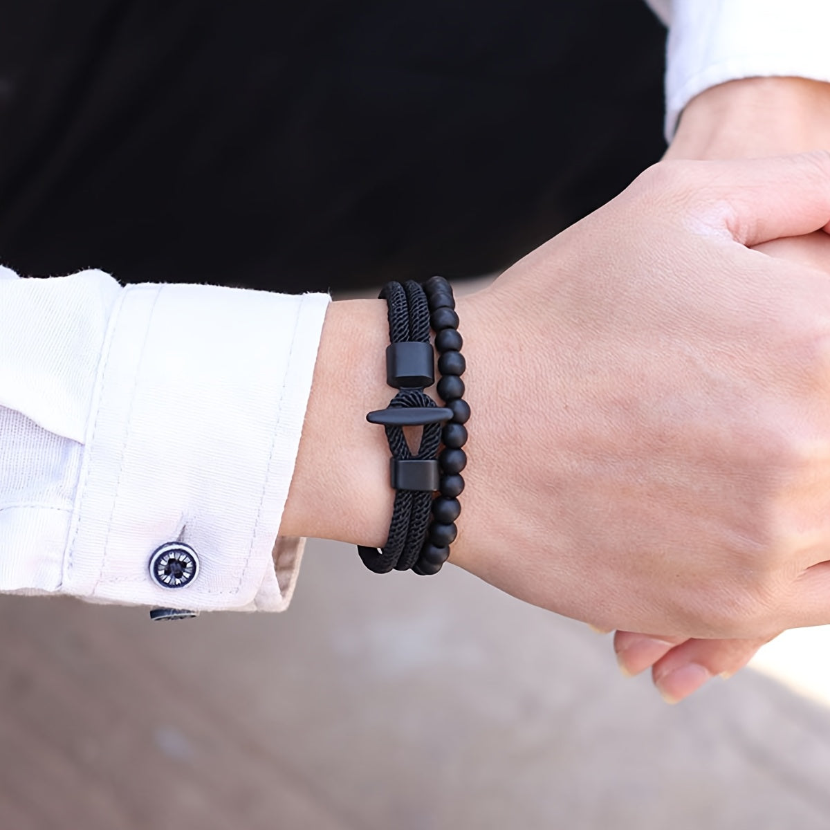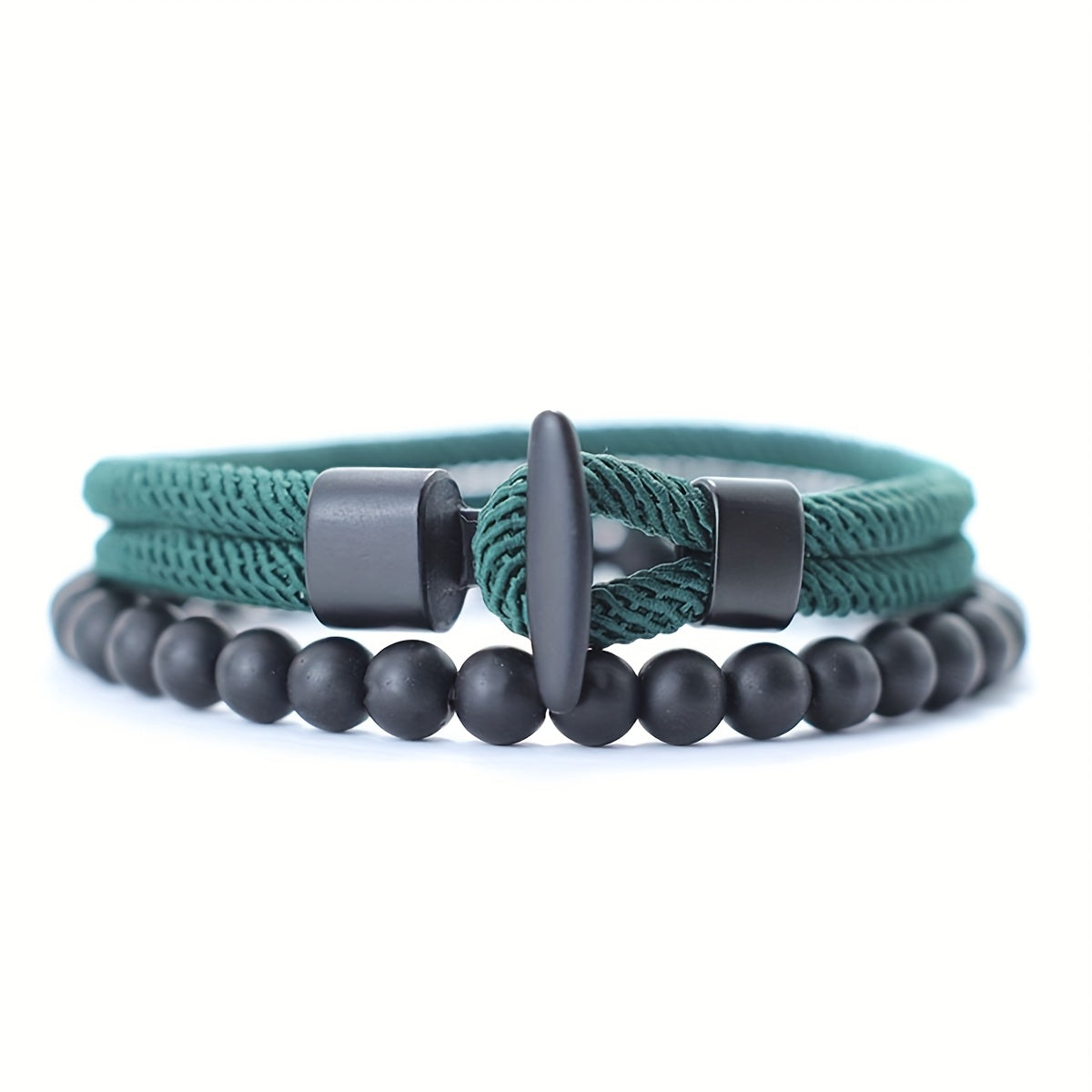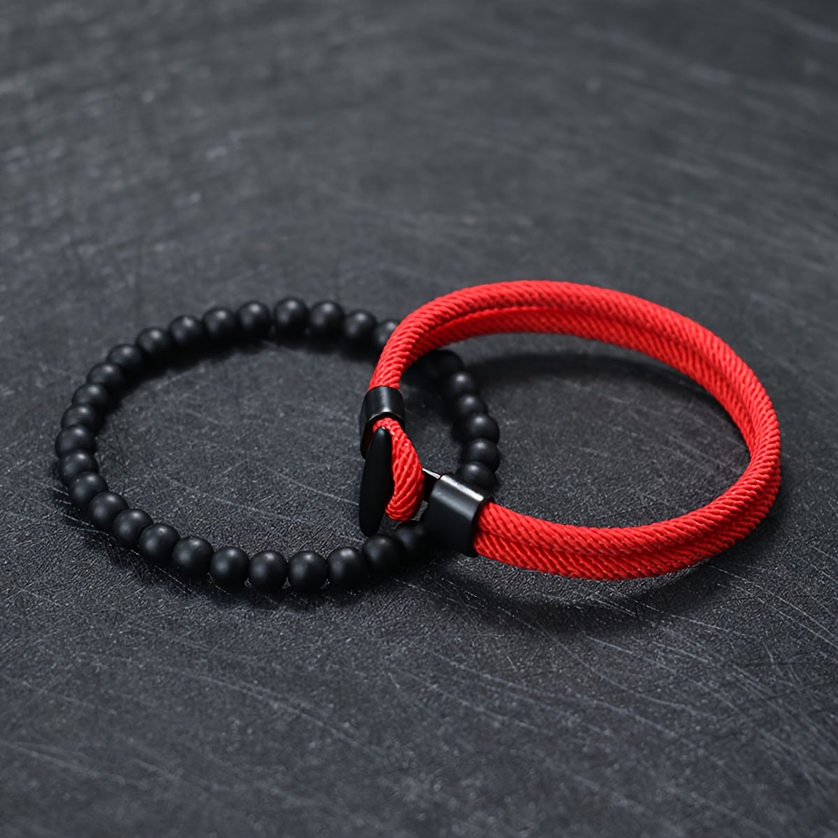 2pcs Set Flat Hook Bracelet 6mm Frosted Bead Vintage Style Red with R