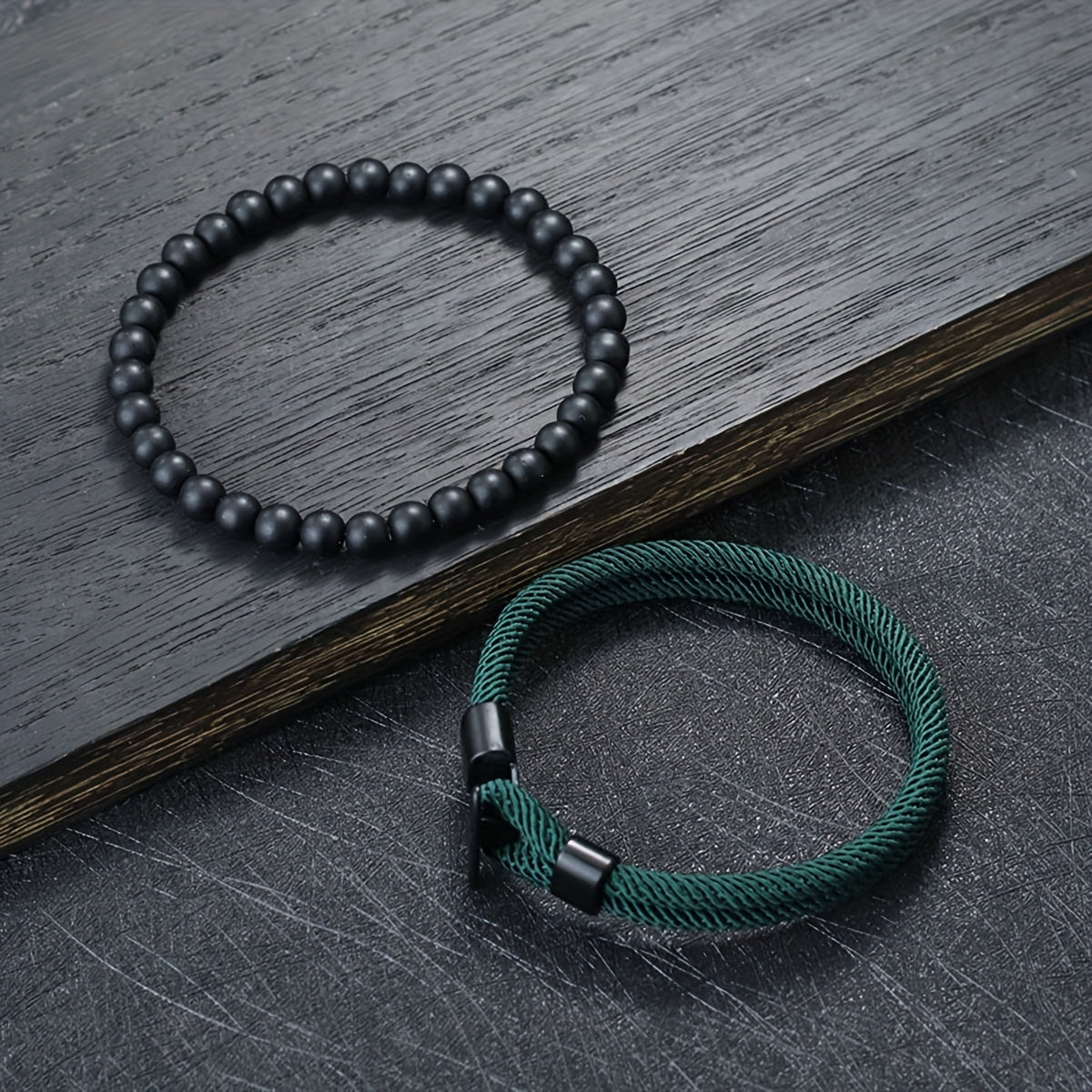 This set includes 2 bracelets featuring a flat hook design with 6mm frosted beads in a vintage style, one in red color.
