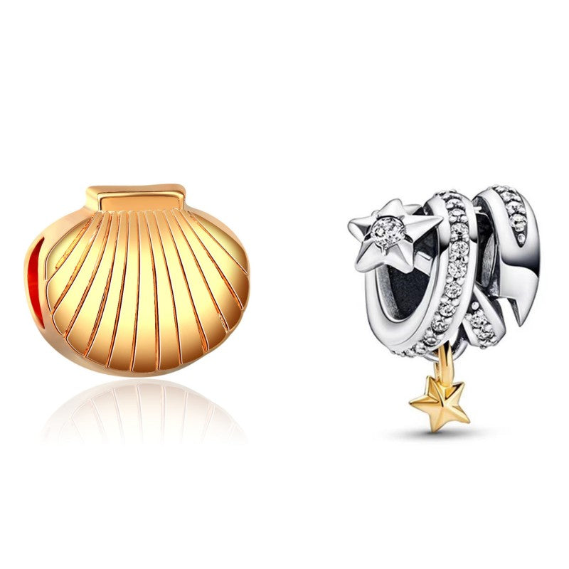 These 2 alloy beads are perfect for DIY bracelet and necklace making. They feature a shooting star and golden shell design.