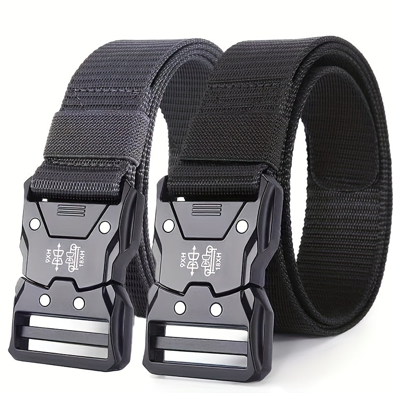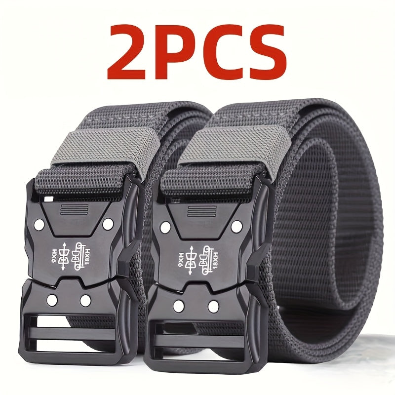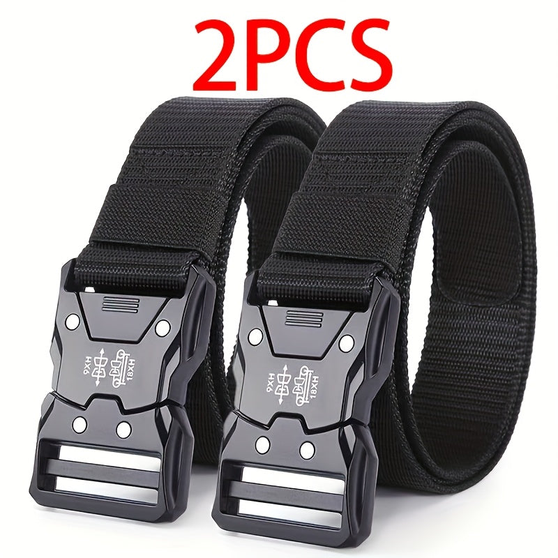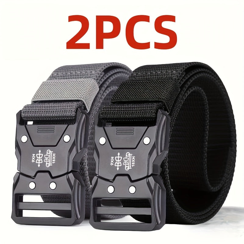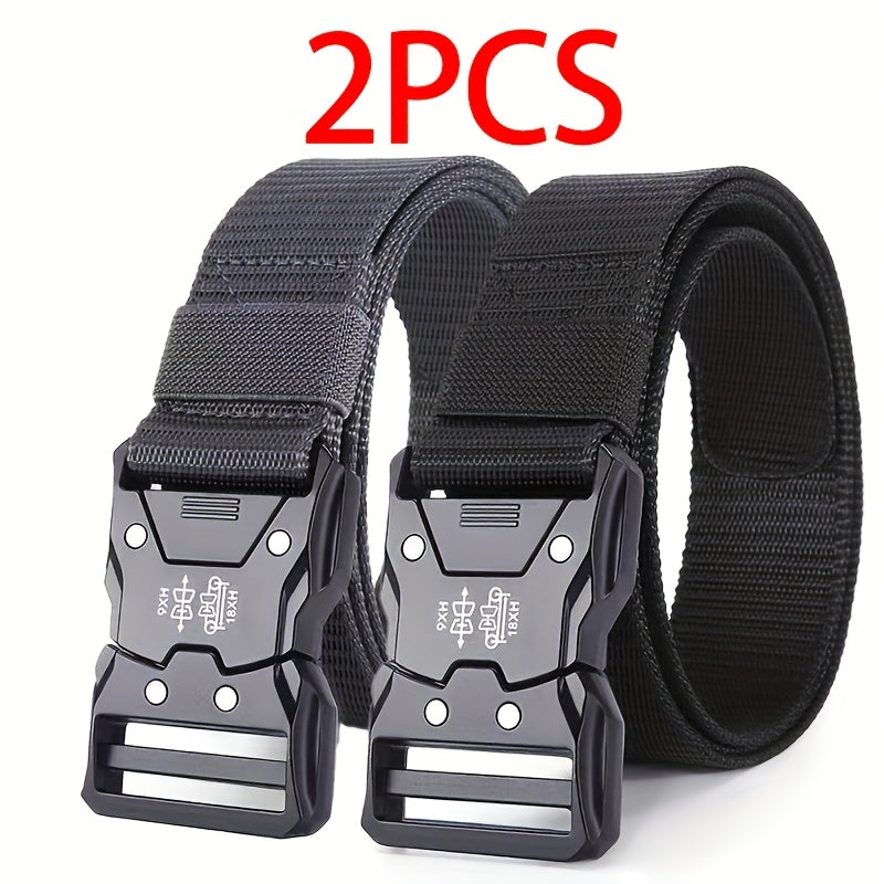 This 2-piece set of tactical belts is made of durable denim canvas material and features a one-click release flat buckle. Perfect for outdoor training and sports.