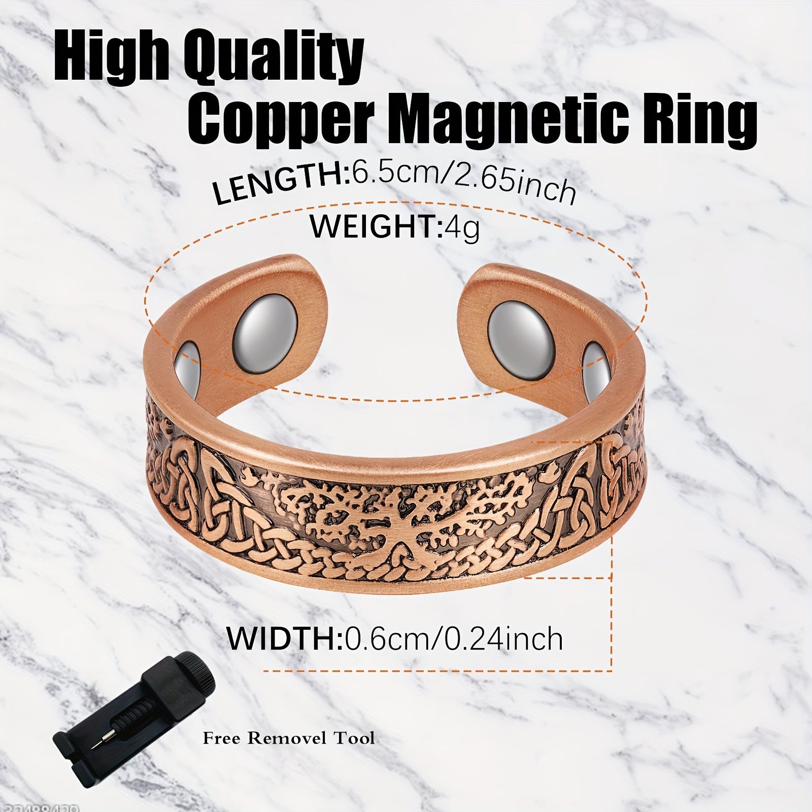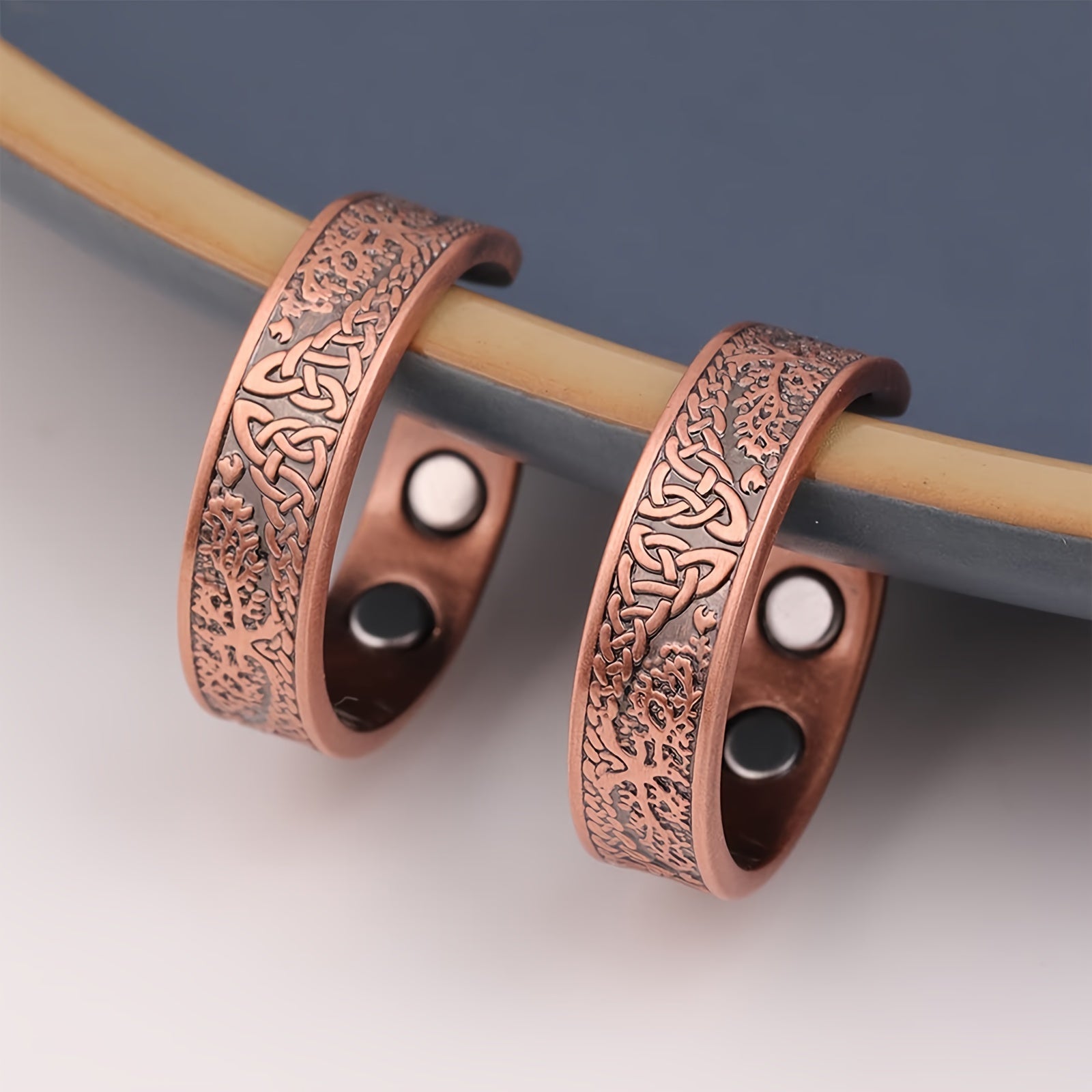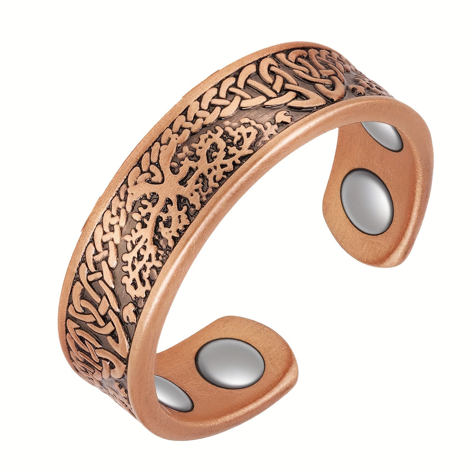 Enhance your style with these adjustable copper rings featuring the Tree of Life design and magnetic properties.