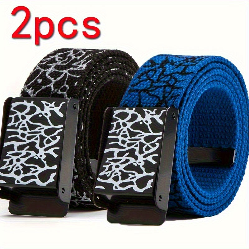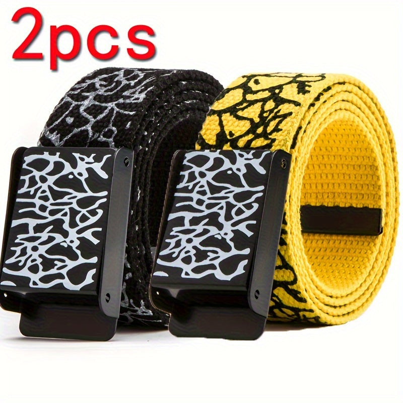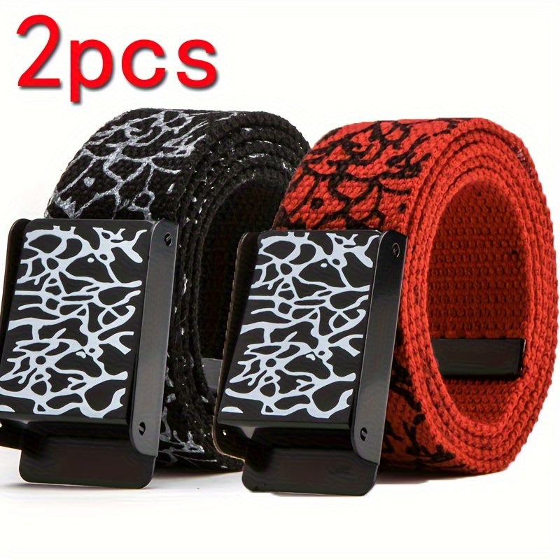 2pcs Unisex Street Belts Punk Hip Hop Canvas Panel Iron Buckle