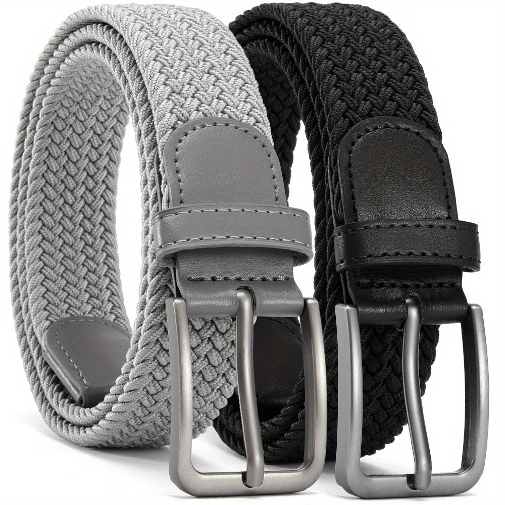 2pcs YOORAN Men's Braided Stretch Belts Elastic Woven Fabric Alloy Buckle