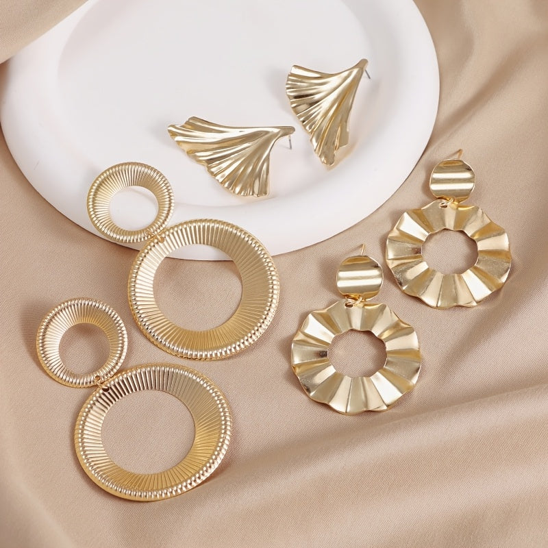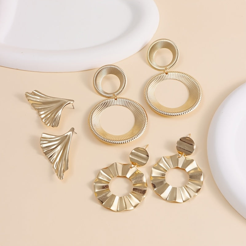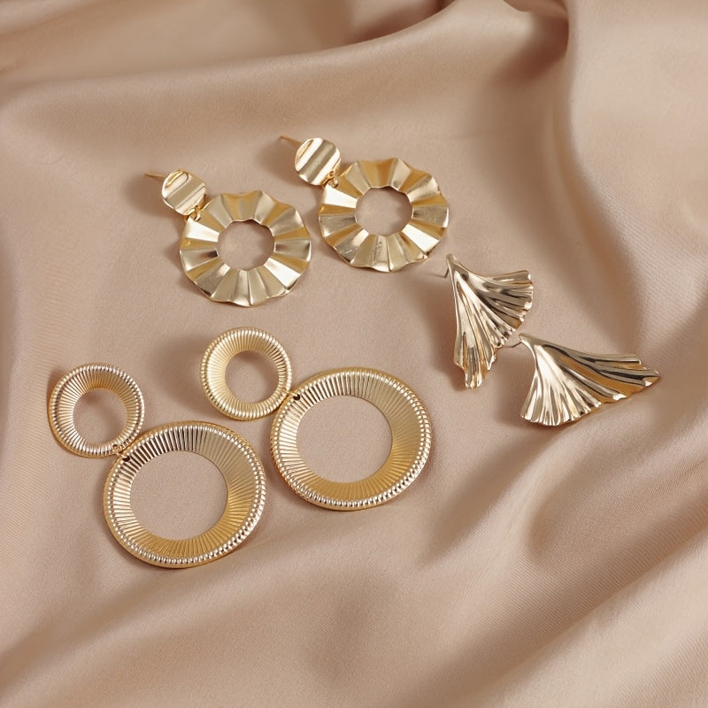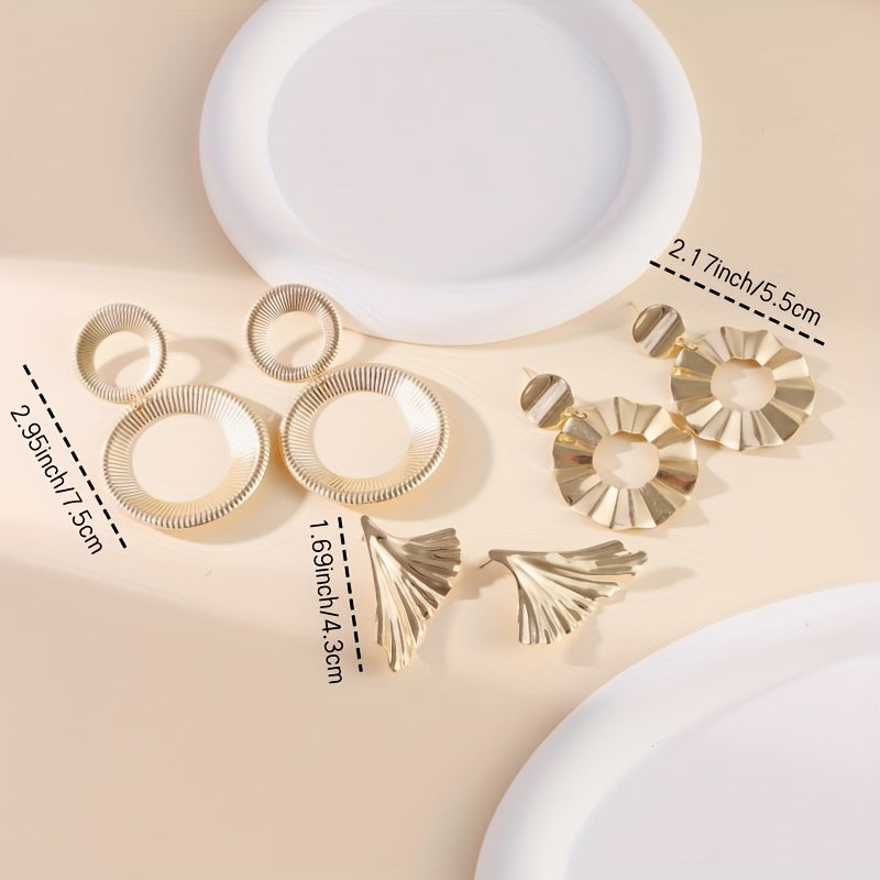 3 Pairs Mixed Style Leaf Circle Earrings Unique Vintage Studs Set