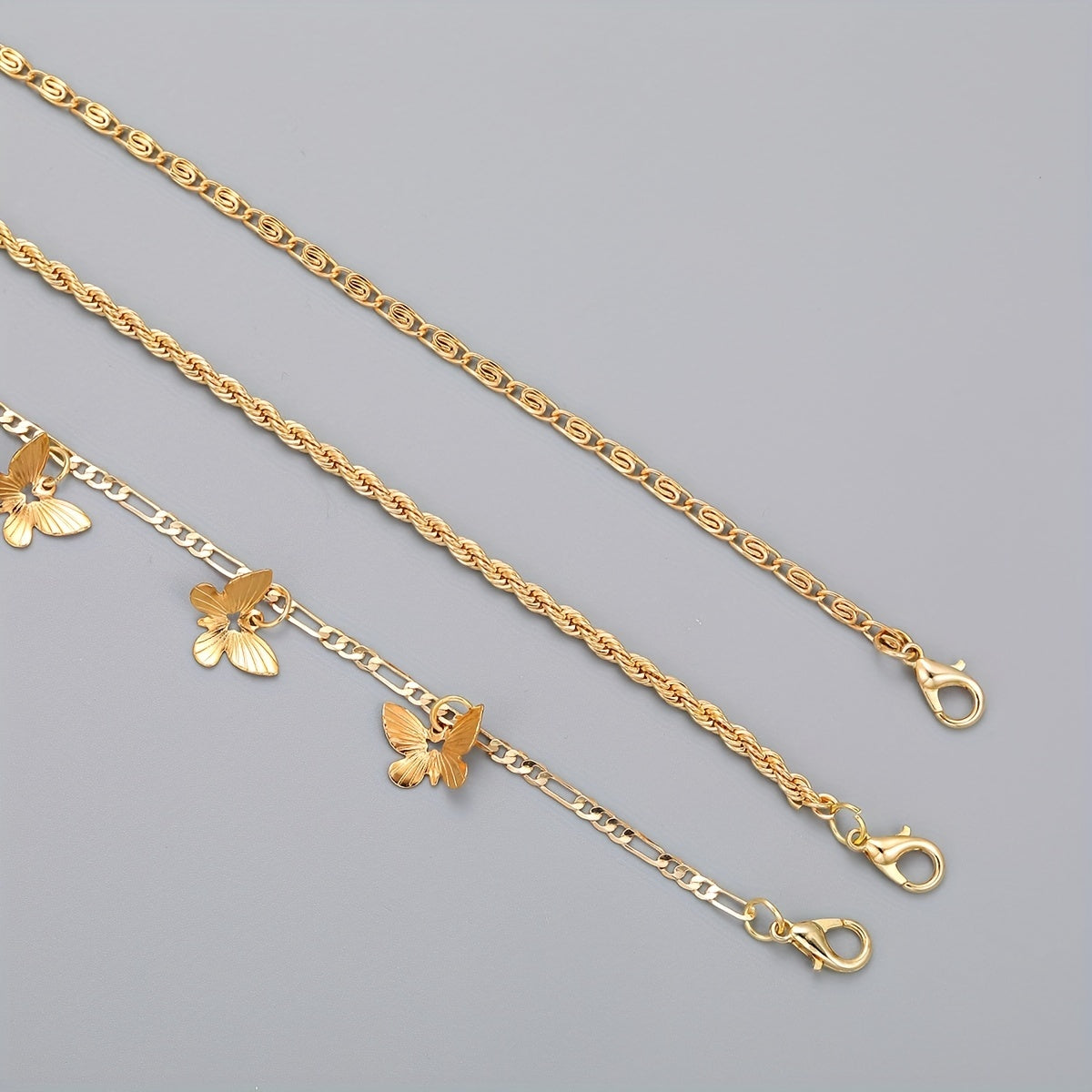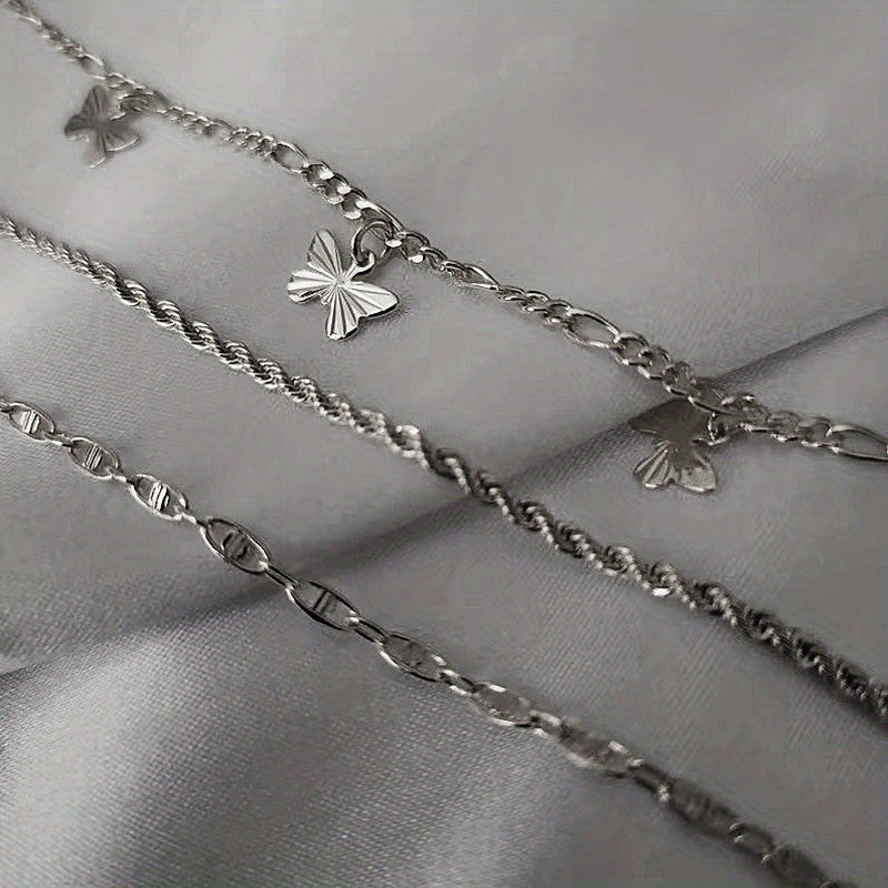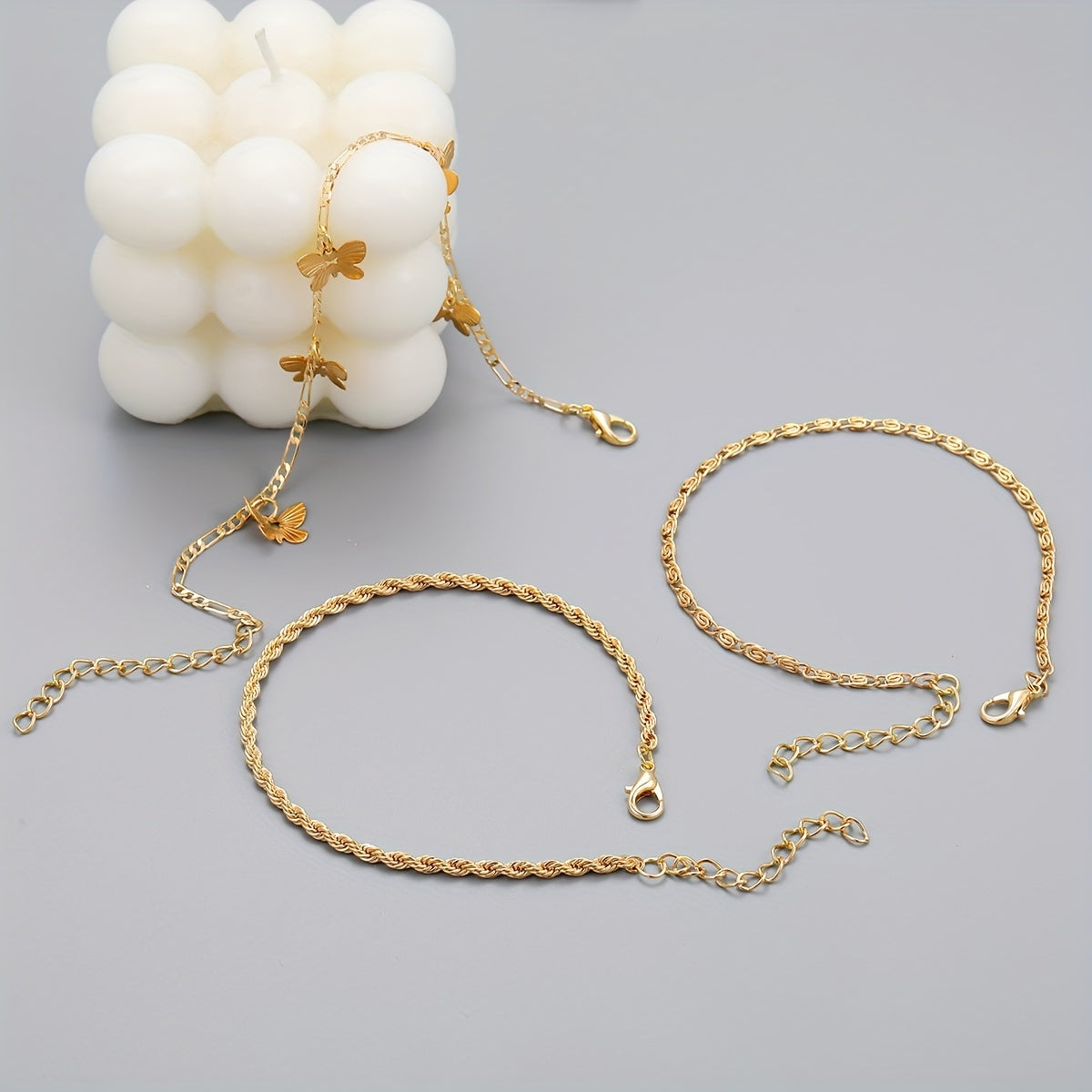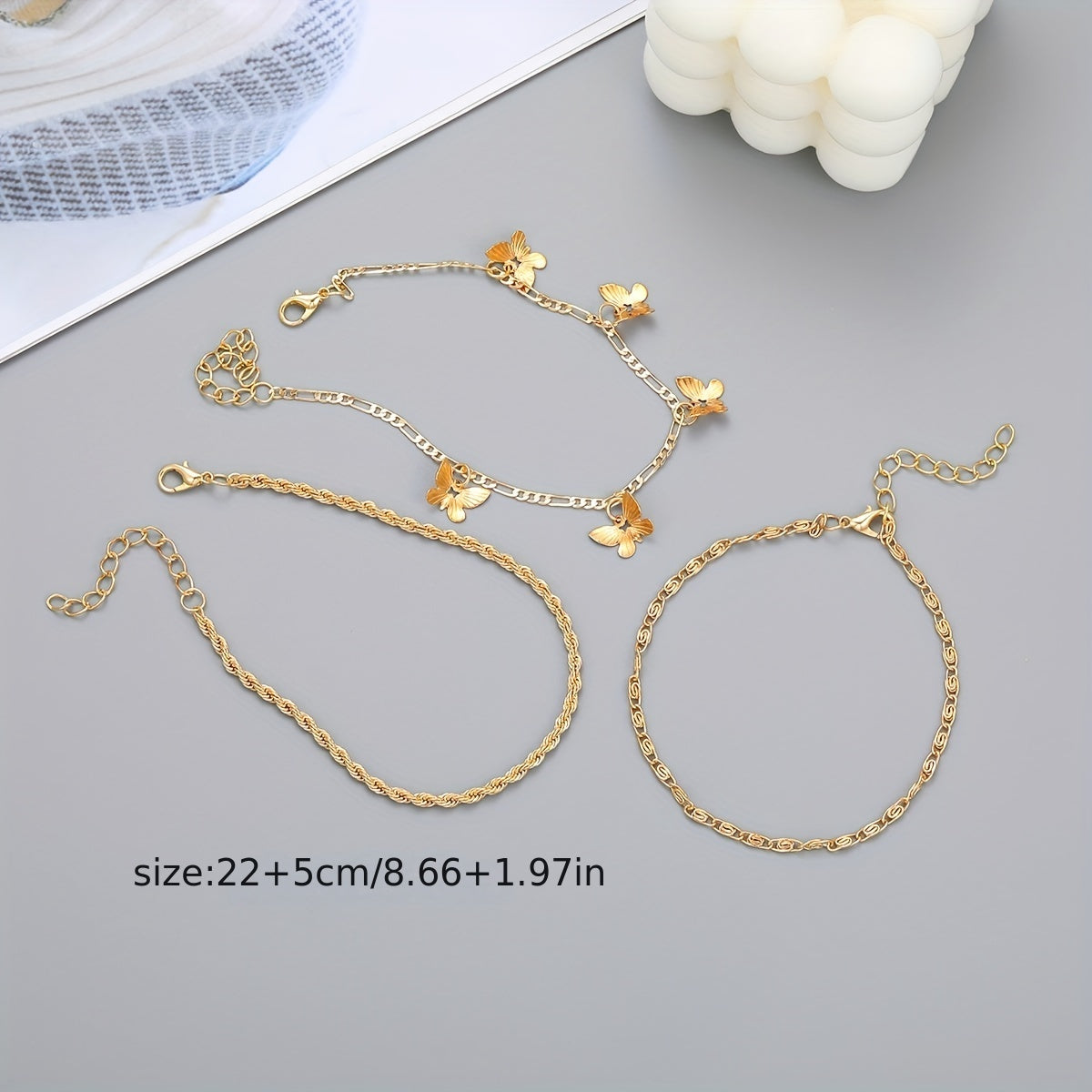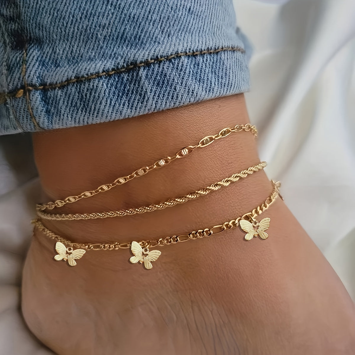 3 Pcs Butterfly Charm Layered Beach Anklet Set