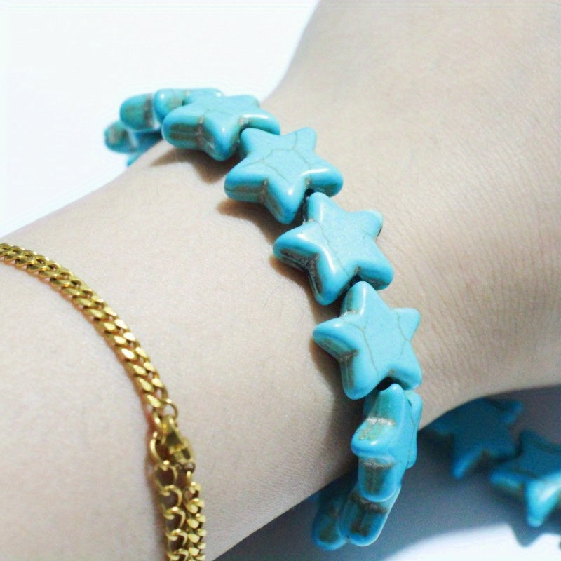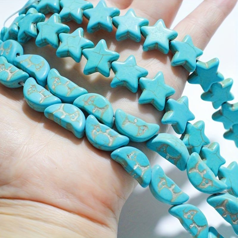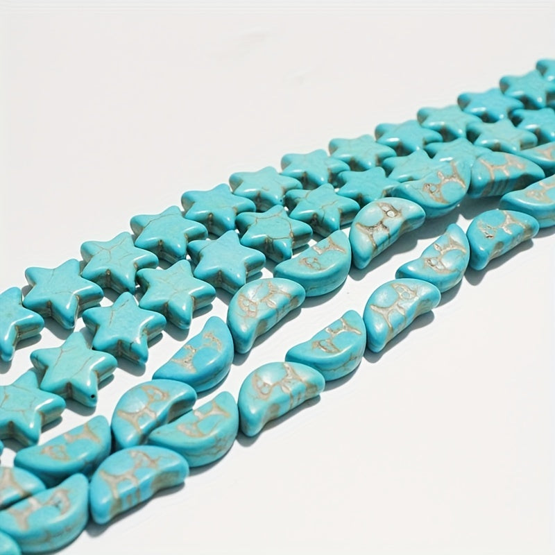 Create your own unique jewelry with this set of 30 star and 25 moon synthetic turquoise beads. Perfect for making necklaces and bracelets.