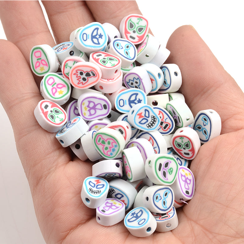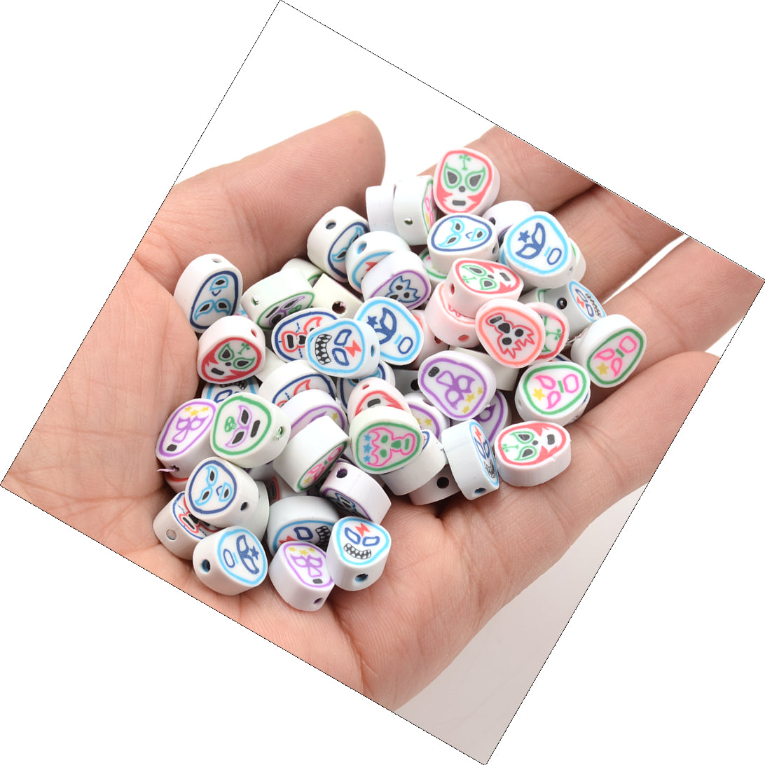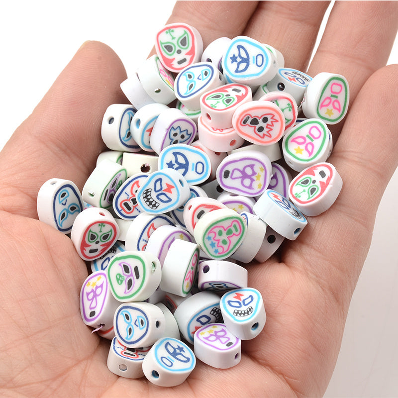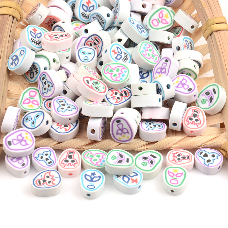 Create unique jewelry with this set of 30 polymer clay beads featuring various face patterns. Perfect for necklaces, bracelets, and other DIY projects.