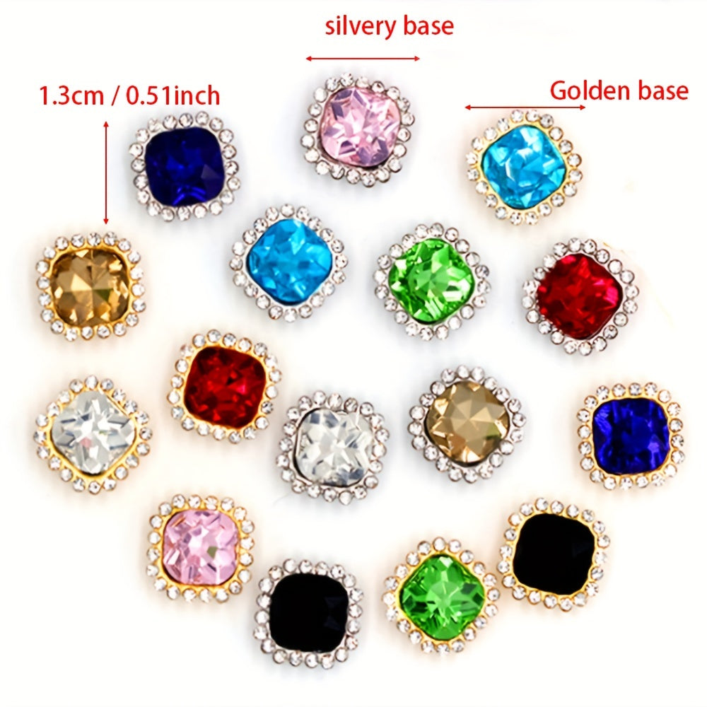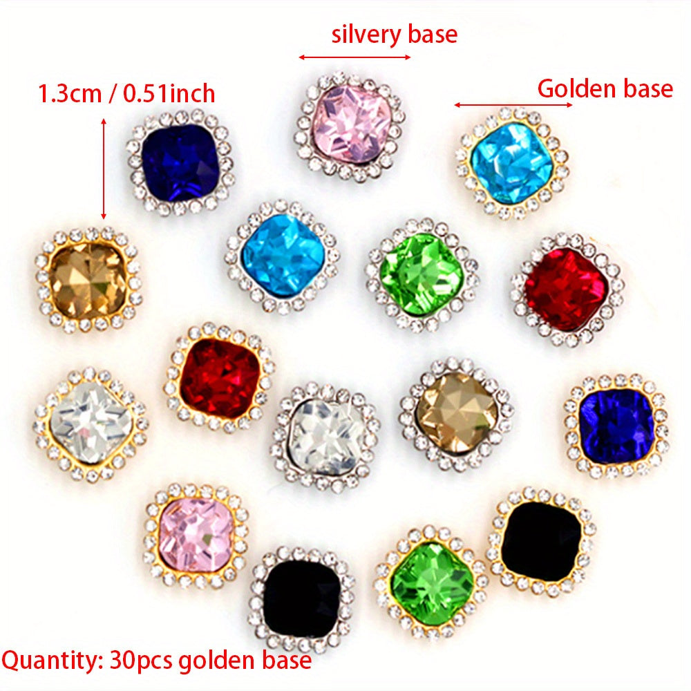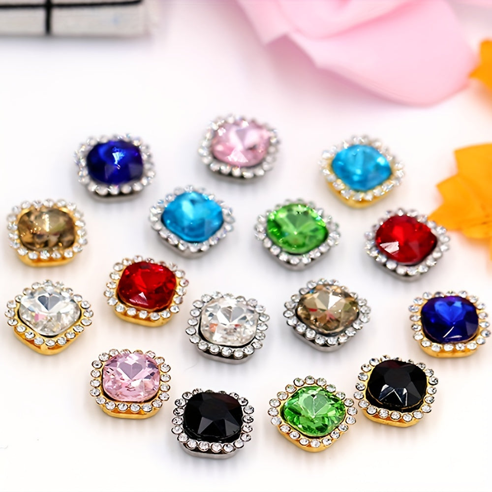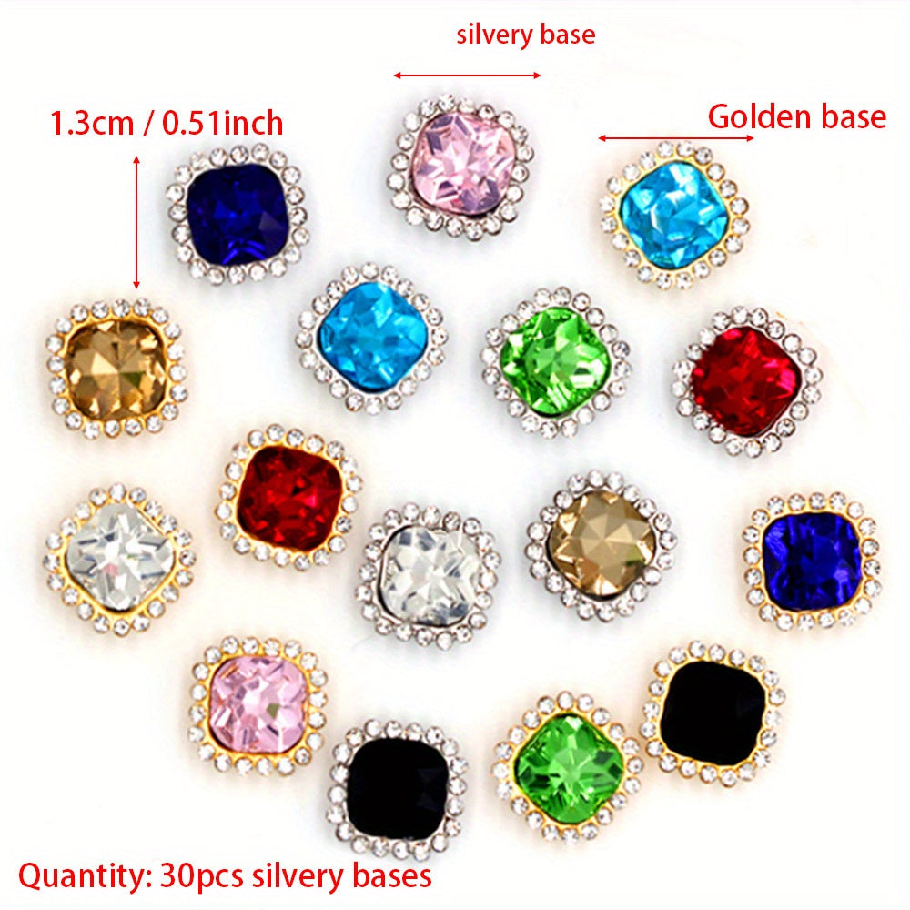 30pcs 1.0 inch Double Layer Square Rhinestone Claw Sewing Jewelry DIY Acc