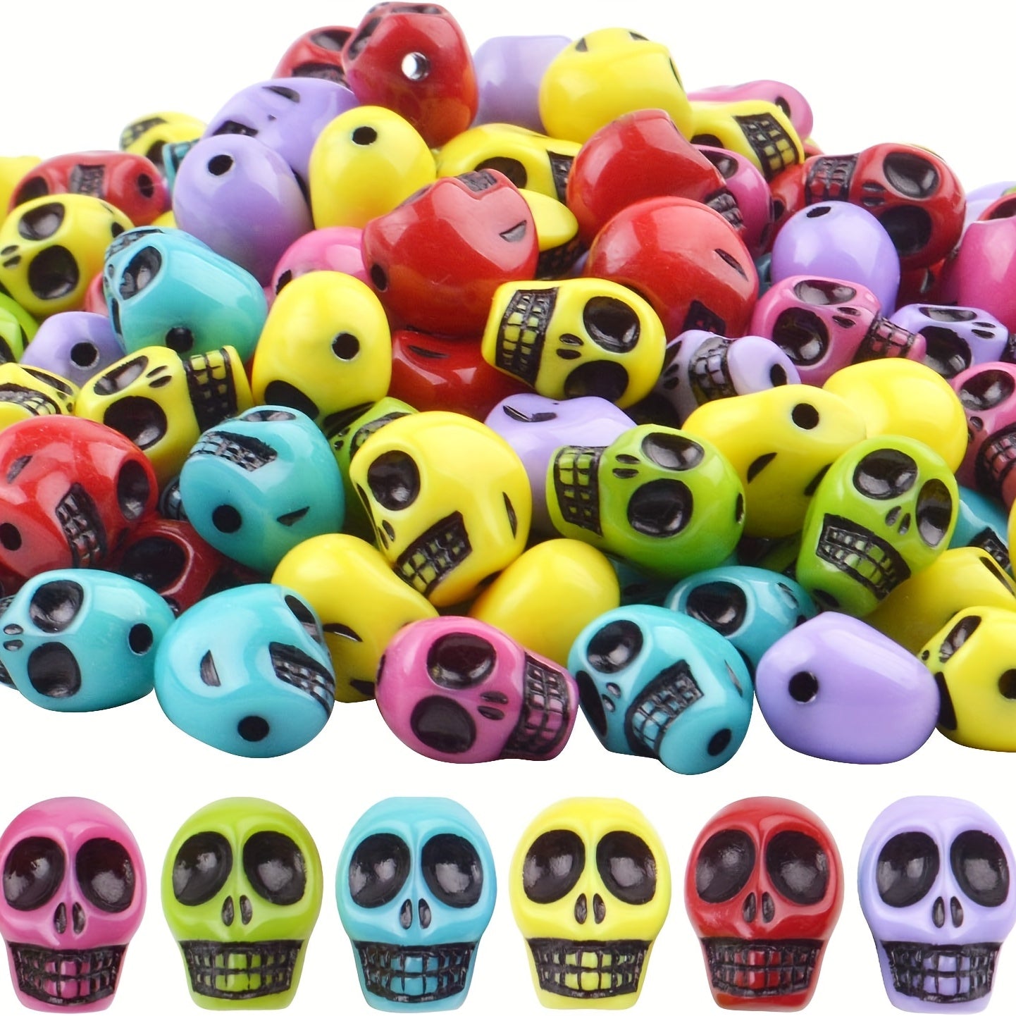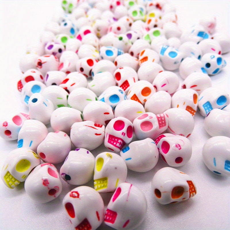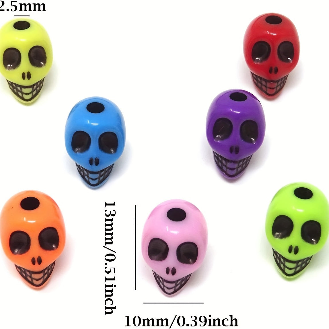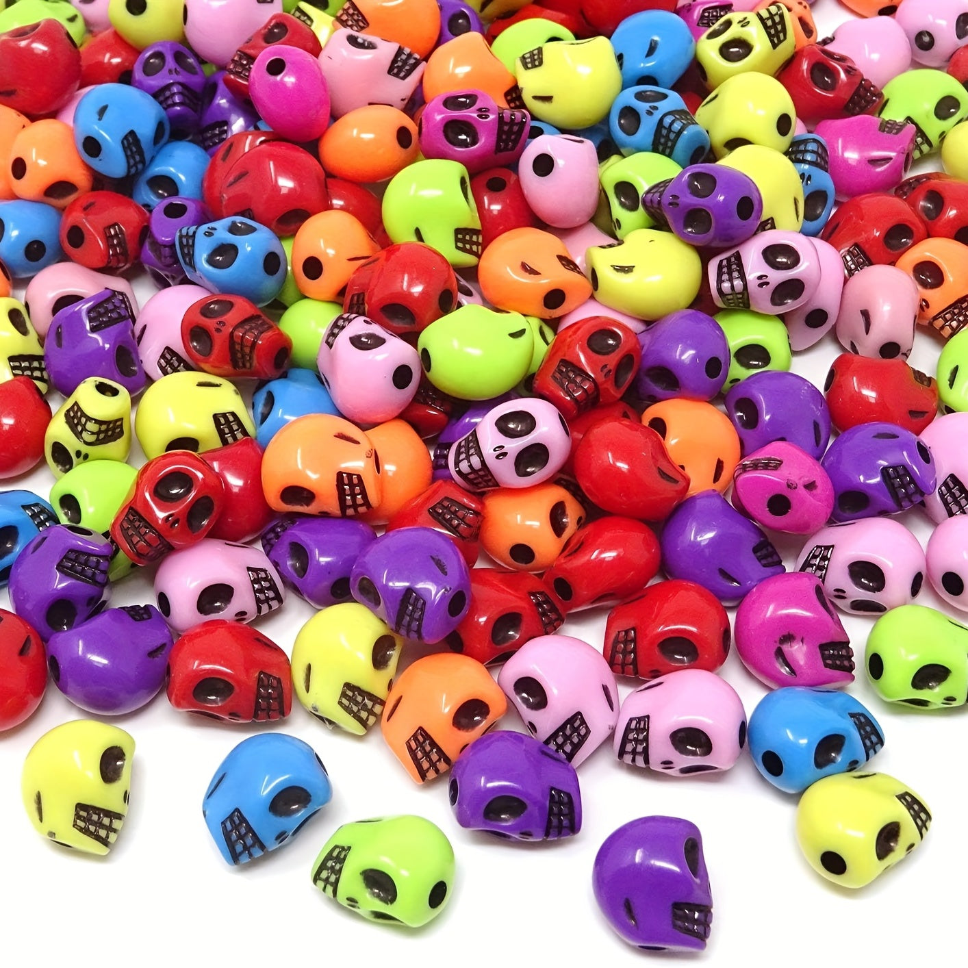 • Set of 30 acrylic skull spacer beads in vibrant colors