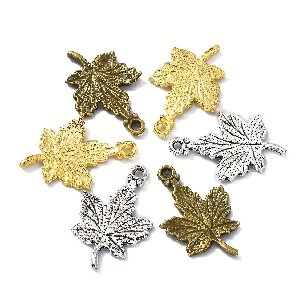 Get creative with these detailed carved metal maple leaf pendants in three different colors. Perfect for earrings, bracelets, and necklaces.