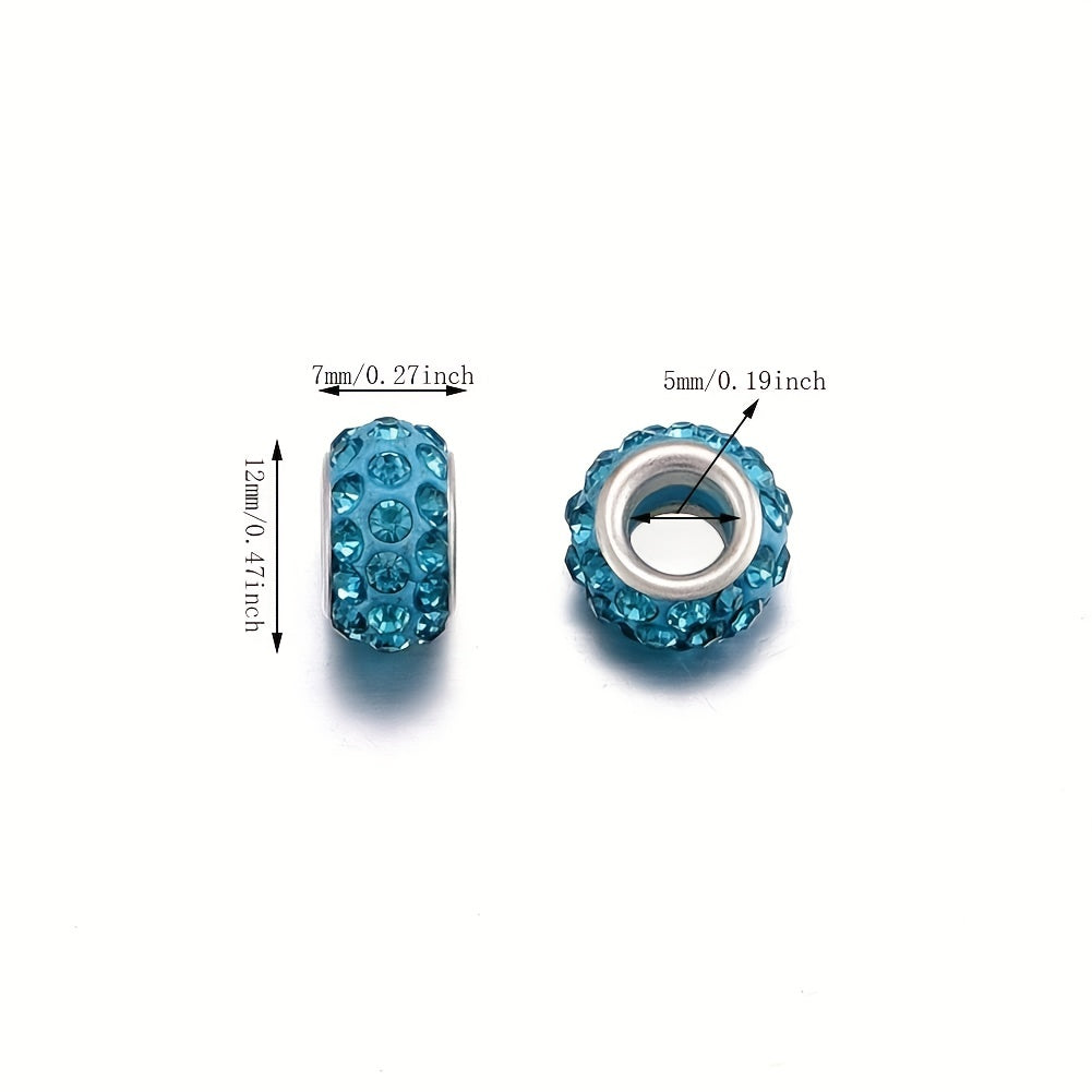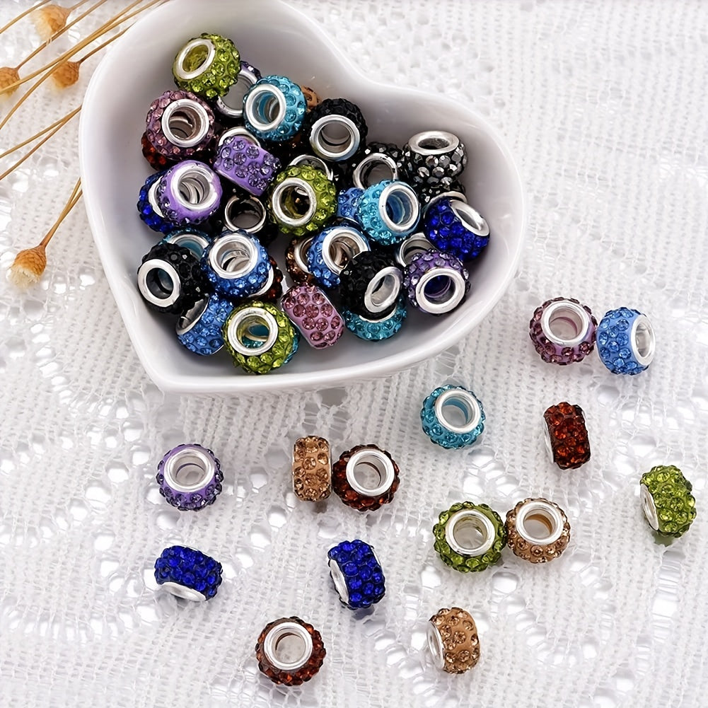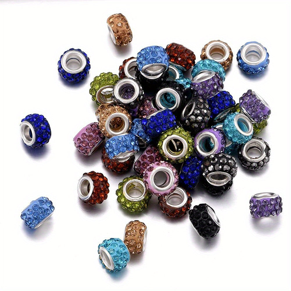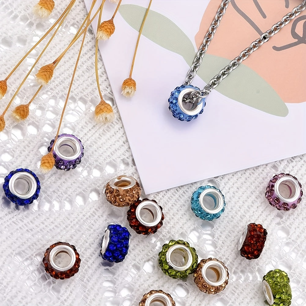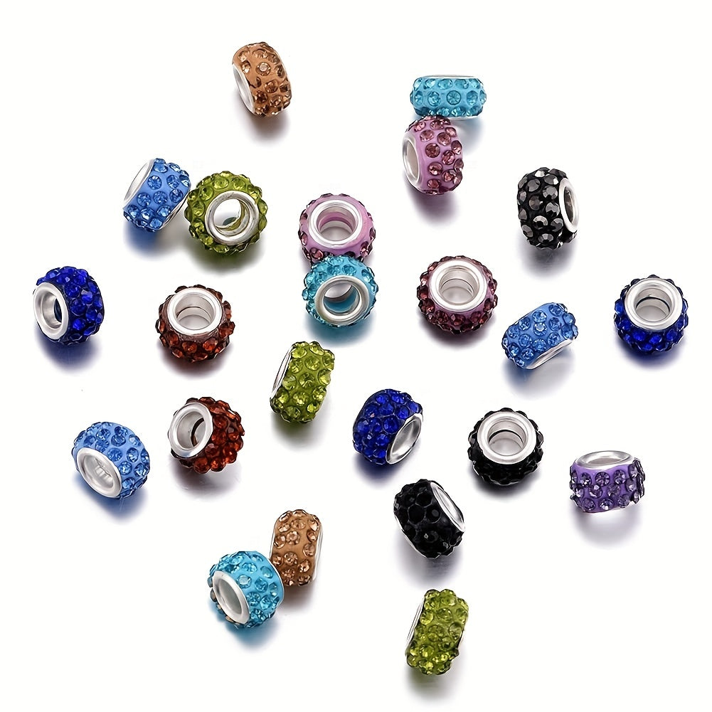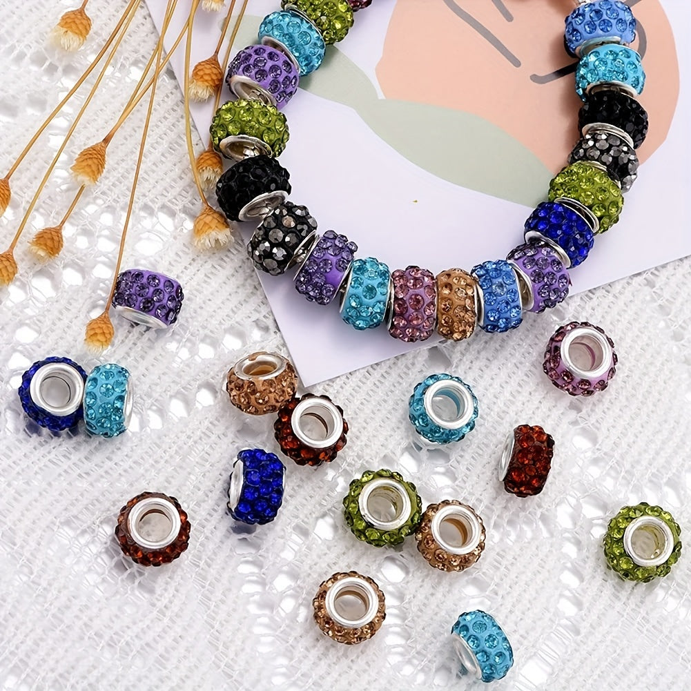 30pcs Mixed Rhinestone Decor Large Hole Beads for Jewelry Making