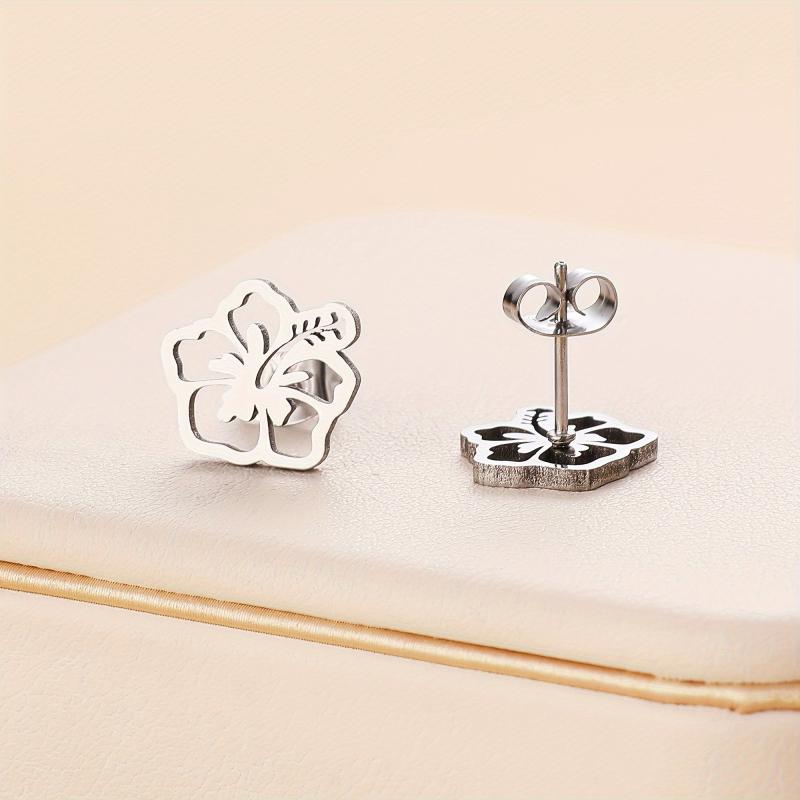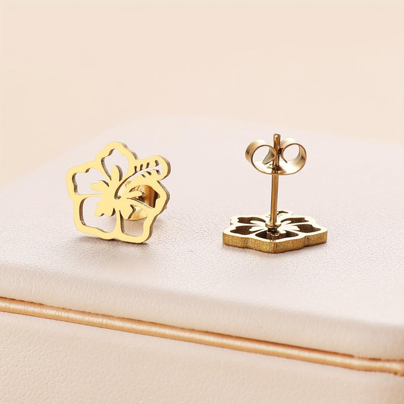 Hypoallergenic, durable, and versatile flower stud earrings crafted from high-quality 316L stainless steel. Available in silvery golden finish.