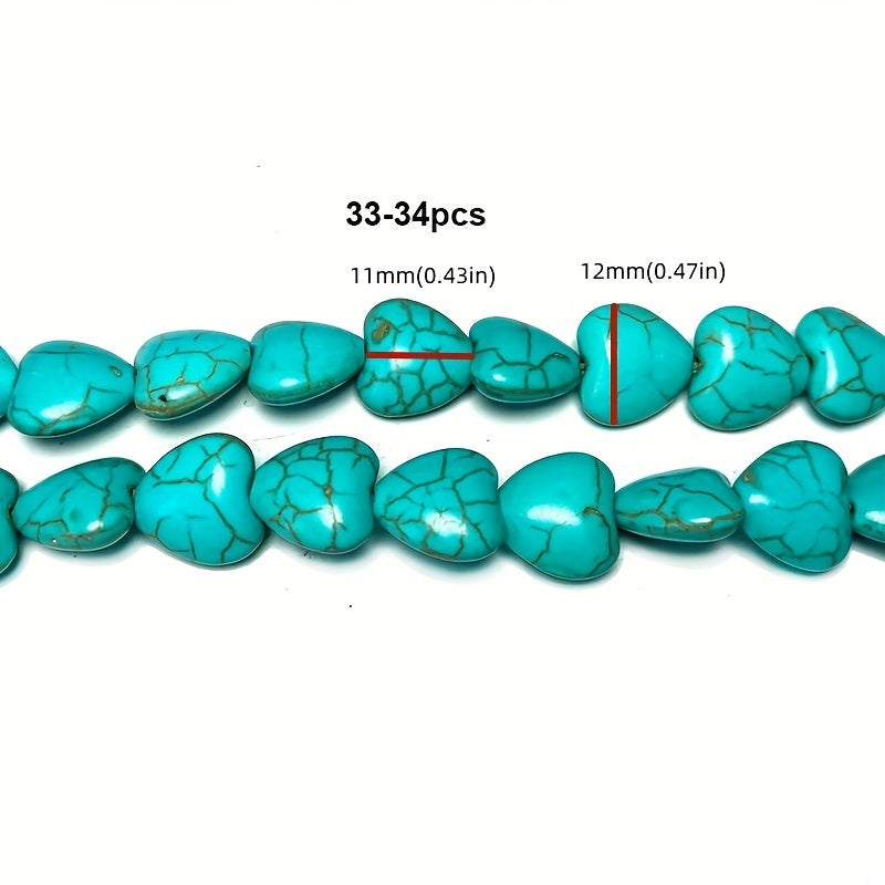 Add a touch of elegance to your handmade jewelry with these 11-12mm turquoise heart shape beads. Perfect for earrings, bracelets, necklaces, and other accessories.