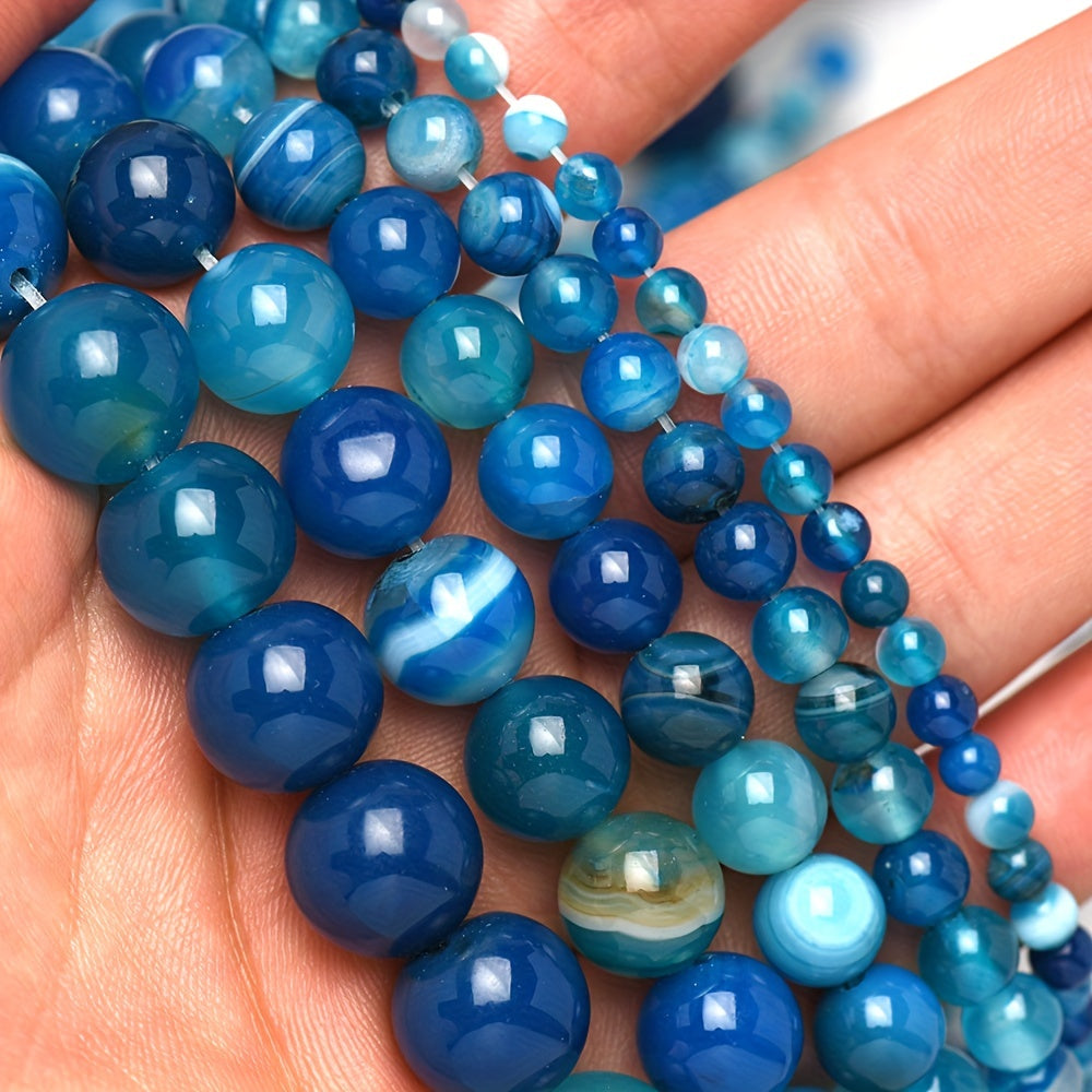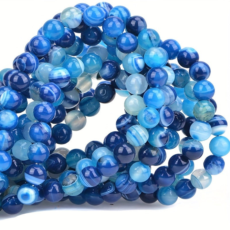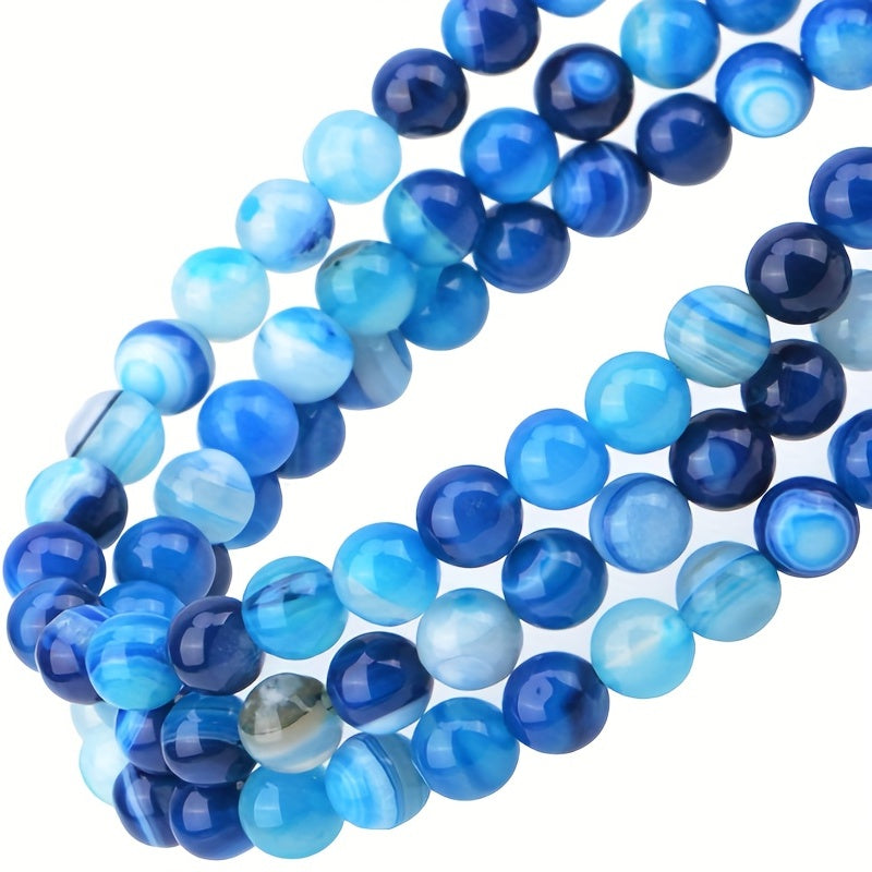 These lake striped agate beads are perfect for creating your own unique jewelry pieces. Each bead is 6-10mm in size and made of natural stone. Use them to make stunning necklaces, bracelets, and earrings.