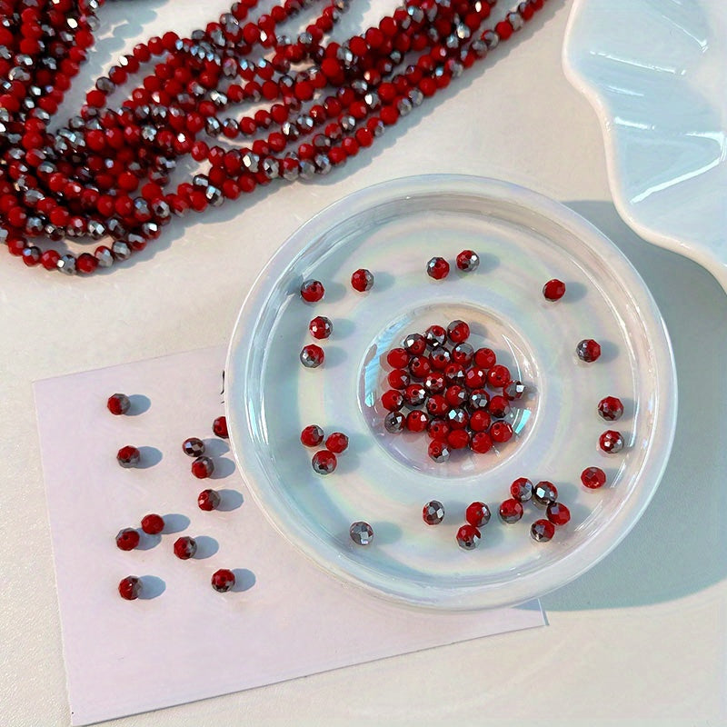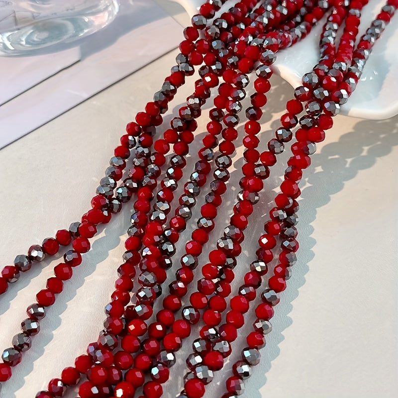 Enhance your jewelry creations with these half silver and red faux crystal beads. Perfect for making bracelets, necklaces, and other accessories.